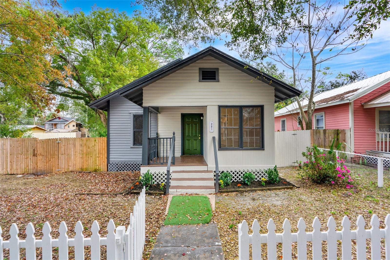 PARE O CARRO! Bangalô pronto para morar situado a poucos minutos do centro de Sanford e que foi completamente renovado. A casa possui um TELHADO DE METAL 2022 e um NOVO CONDENSADOR AC 2025, oferecendo tranquilidade nos próximos anos. Uma convidativa planta baixa de conceito aberto oferece muito espaço para entretenimento e vida cotidiana. O novo piso laminado flui por toda a casa, complementado por luminárias atualizadas que adicionam um toque moderno e sofisticado a cada espaço. A cozinha funcional oferece amplo balcão e balcão para café da manhã com acabamento personalizado - perfeito para sentar em bancos e refeições para viagem. A casa inclui dois quartos espaçosos, incluindo uma suíte principal com banheiro privativo - além de um versátil escritório ou biblioteca. Um segundo banheiro completo atende convenientemente o quarto adicional, aumentando o conforto e a funcionalidade. Saia para um quintal espaçoso com caminho de tijolos e pátio de concreto, ideal para entretenimento ao ar livre ou desfrutar das noites mais frias da Flórida. Idealmente situado a poucos passos das lojas e restaurantes de classe mundial do centro de Sanford, com fácil acesso à I-4 e às principais rodovias. Não perca esta – agende sua exibição hoje mesmo!