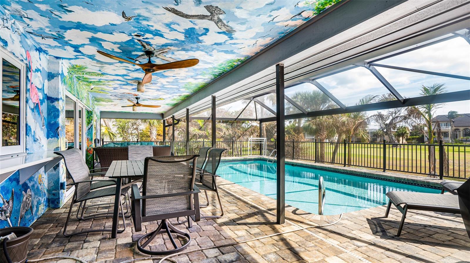 Bem-vindo ao Beachview Estates no Sanibel Island Country Club! Esta comunidade de campos de golfe oferece golfe, tênis, uma loja especializada e restaurante a poucos minutos de uma PRAIA PRIVADA e escriturada do lado do Golfo, HOA é opcional. Esta casa imaculada com PISCINA tem 4 quartos, 2 banheiros e garagem para 2 carros. O conceito OPEN na sala e cozinha é um fantástico ponto de encontro para família e amigos. O quarto principal possui banheiro privativo com pias duplas e é um lugar maravilhoso para relaxar e rejuvenescer. As 3 suítes consideráveis são ótimas para amigos e familiares. A grande varanda que apresenta uma bela piscina e um mural personalizado desenhado por um conhecido artista local é um local perfeito para reuniões e entretenimento. A exposição sul proporciona muita luz natural e a casa elevada tem vista para o 14º fairway do Sanibel Golf Clubs. A paisagem tropical recém-instalada (2024), caixa de correio de peixe-boi personalizada, persianas de plantação, pavimentação na entrada de automóveis e o TELHADO DE METAL dão à casa um belo apelo de meio-fio e uma vibração tropical. Numerosas atualizações foram feitas, incluindo janelas Impact, persianas motorizadas controladas remotamente, balcões MARBLE, piso impermeável Pergo Smartcore Ultra Premium (2024) em toda a casa. As luminárias, tomadas, interruptores e placas foram atualizadas em (2023). A bomba de calor-18seer, o manipulador de ar com todos os novos dutos e o registro com controles wifi para gerenciá-lo em qualquer lugar foram substituídos em (2024). Todos os novos equipamentos da piscina foram instalados em (2024), incluindo bomba de calor, bomba de piscina, conversão de água salgada e controles wi-fi para controlá-la remotamente. Em (2024) foi instalada uma nova tela e uma super calha de 7". Todo o interior da casa foi repintado em (2024). As penteadeiras e armários também foram atualizados em (2024), assim como os eletrodomésticos em AÇO INOX, sistema de filtragem de água e um novo formato de placa para gerador Um sistema completo de câmeras foi adicionado em (2024) para segurança. Beachview é um dos poucos acessos à praia na ilha. Agende um passeio antes que seja tarde e aproveite a vida na ilha. !