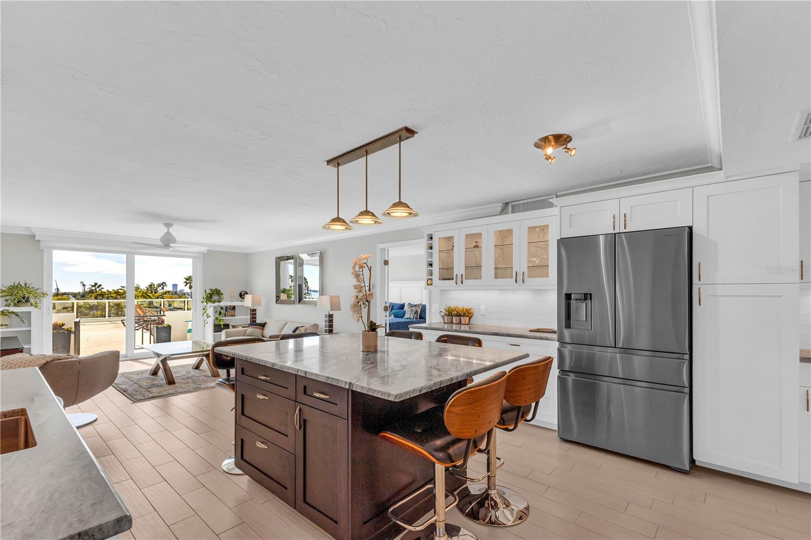 Aninhado no coração do centro de Sarasota, este condomínio lindamente renovado de dois quartos e dois banheiros, além de uma cova, oferece a mistura perfeita de luxo e conveniência. Localizado no 101 Condominium, esta residência possui os tetos mais altos do complexo e apresenta um terraço privado de grandes dimensões, ideal para desfrutar do pôr do sol de tirar o fôlego e impressionantes vistas da baía sobre o Island Park. A área da piscina e o pátio estão sendo atualizados com tinta nova e mobiliados com móveis novos nas próximas semanas. O Den, completo com uma roupa/armário fechado, oferece flexibilidade como um potencial terceiro quarto, escritório em casa ou espaço de mídia. Entre para encontrar acabamentos de qualidade por toda parte, incluindo persianas e armários de cozinha personalizados com uma espaçosa ilha central, perfeita para entretenimento. Ambos os banheiros foram elegantemente atualizados com acabamentos sofisticados, aumentando o ambiente. Posicionado no mesmo andar que a piscina aquecida, o centro de fitness e a sala da comunidade, esta unidade oferece conveniência incomparável, com fácil acesso a comodidades de primeira linha. Há espaço reservado no estacionamento da comunidade. Desfrute de eventos sociais realizados pela comunidade no convés da piscina e no saguão. Os moradores do 101 desfrutam de acesso direto à Palm Avenue do primeiro andar, colocando o vibrante centro de Sarasota à sua porta. Refeições requintadas, compras de classe mundial e entretenimento cultural estão a apenas momentos de distância. Além de seu apelo, o edifício passou recentemente uma impressionante reforma de US $ 6.000.000, aumentando ainda mais sua estética e valor modernos. A maioria dos móveis está disponível para compra sob uma lista de venda separada, tornando esta uma oportunidade sem esforço de entrar e começar a desfrutar do estilo de vida de Sarasota. Não perca a chance de possuir esta residência excepcional no centro da cidade - faça o seu show particular hoje!