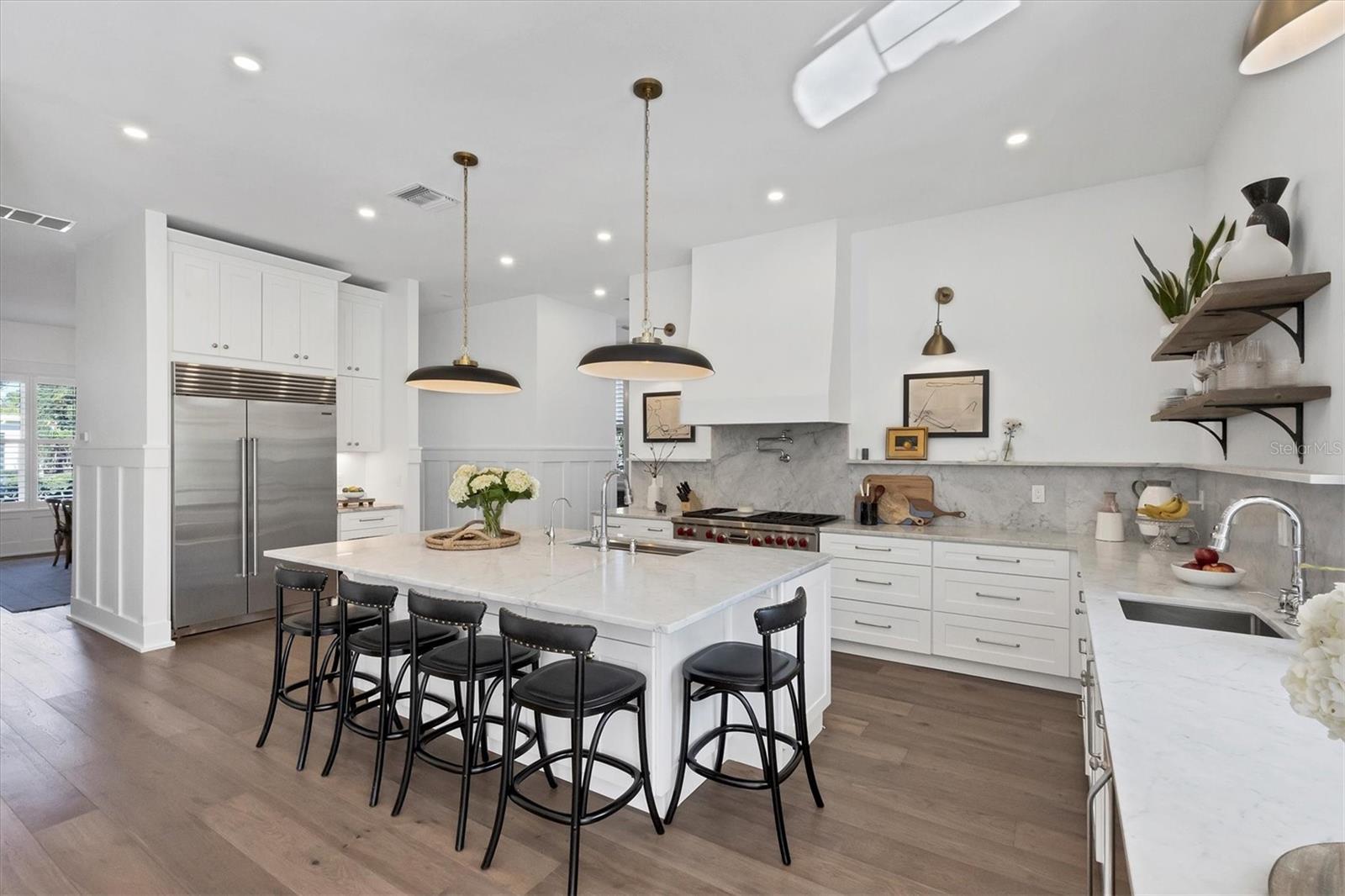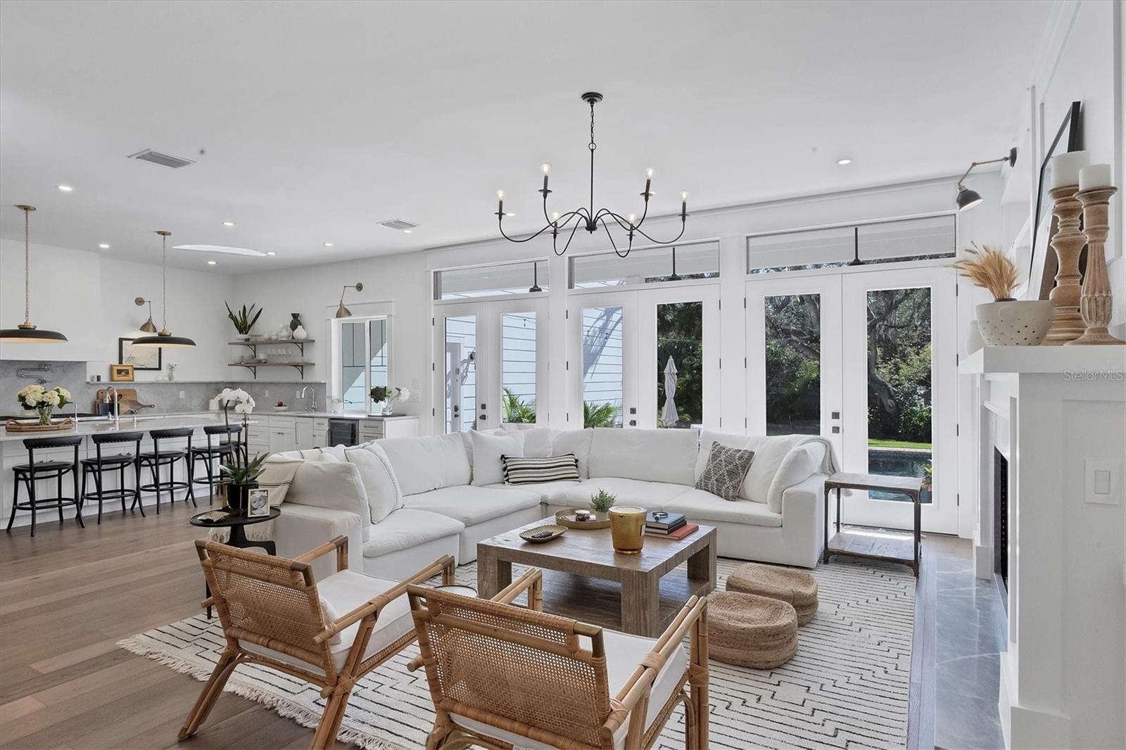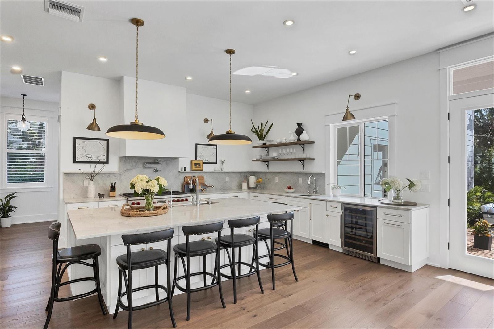 Bem-vindo a esta deslumbrante casa construída em 2021 em um dos bairros históricos mais emblemáticos e pitorescos de Sarasota, Cherokee Park. Oferecendo uma vida luxuosa com design cuidadoso, esta espaçosa residência de mais de 6.000 pés quadrados apresenta uma desejável suíte principal no primeiro andar com um banheiro decadente com banheira de imersão, chuveiro de mármore enorme e acesso à varanda coberta para seu café da manhã. A cozinha gourmet está equipada com eletrodomésticos Wolf e Subzero, bancadas de mármore, despensa, ilha grande para preparação de alimentos ou refeições casuais e vistas deslumbrantes da piscina e do quintal exuberante. A sala familiar tem localização central para entretenimento ideal e possui lareira a gás, detalhes em mármore e embutidos personalizados. O sofisticado salão oferece armários personalizados e é ideal para home office ou sala de estar. No andar de cima, você encontrará quatro quartos adicionais, cada um com amplo espaço e closet, complementados por três banheiros completos. Uma sala bônus de grandes dimensões com bar molhado e um loft aberto oferecem espaços adicionais no segundo andar. Caminhe até o terceiro andar para um sótão acabado, perfeito para armazenamento adicional ou ainda mais espaço de convivência. A lavanderia do primeiro andar possui um mudroom personalizado com cubículos para sapatos e uma mesa embutida, convenientemente localizada fora da garagem para quatro carros. A suíte privativa dos sogros inclui cozinha compacta, lavanderia separada e acesso por elevador para maior conforto e independência. Esta casa possui um lindo piso de carvalho, adicionando calor e elegância a todos os cômodos. A atenção impecável aos detalhes é evidente em todos os cantos e os quartos estão repletos de luz natural abundante. Desfrute de noites tranquilas na varanda dos fundos com vista para a piscina aquecida e o quintal cercado com grama recém-instalada e livre de manutenção. Construída com estrutura reforçada com aço e revestimento de cimento Hardie durável, esta casa oferece integridade estrutural superior, durabilidade duradoura e tranquilidade de baixa manutenção. Esta casa permaneceu seca e sem danos após os furacões. Perfeita para viver multigeracionais ou receber hóspedes, esta casa combina elegância moderna com praticidade. Faça com que seja seu - o vendedor está disposto a personalizar esta casa para atender às suas necessidades. O agente co-listado é o proprietário.