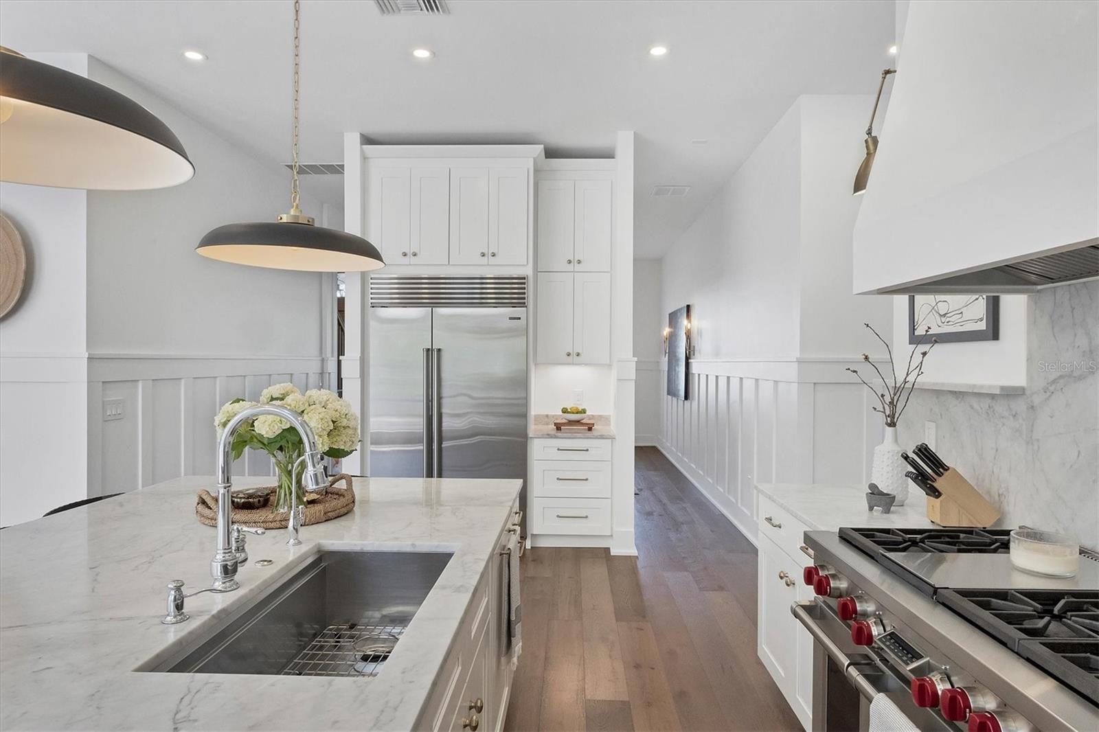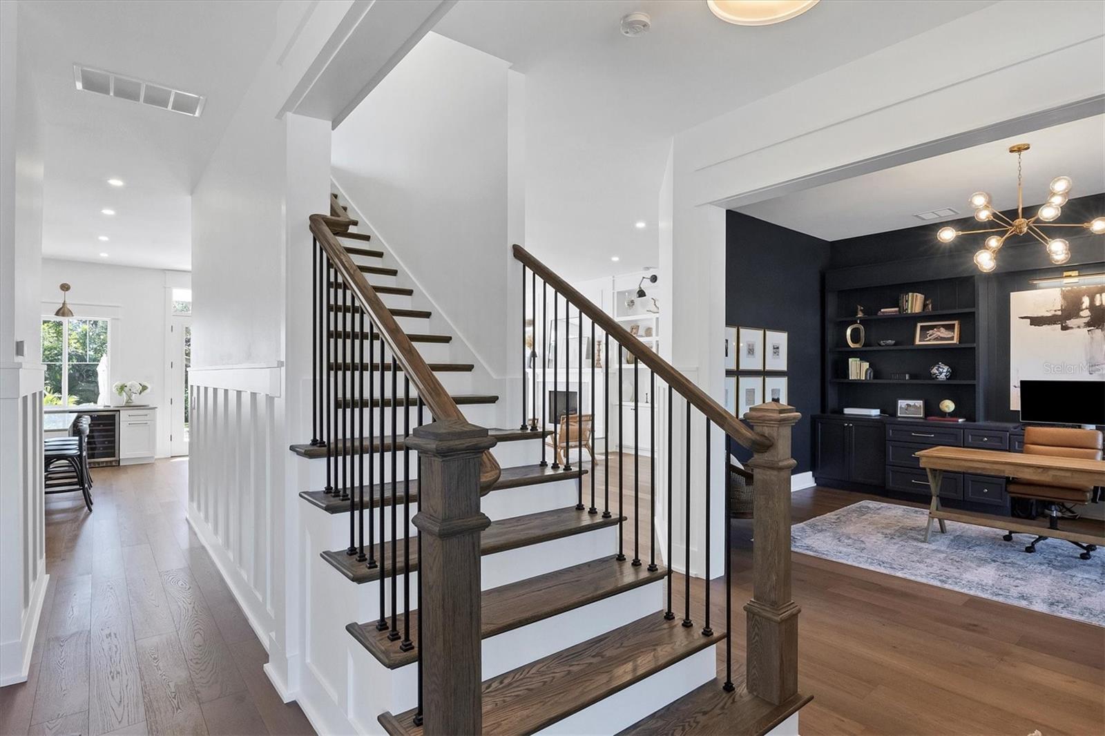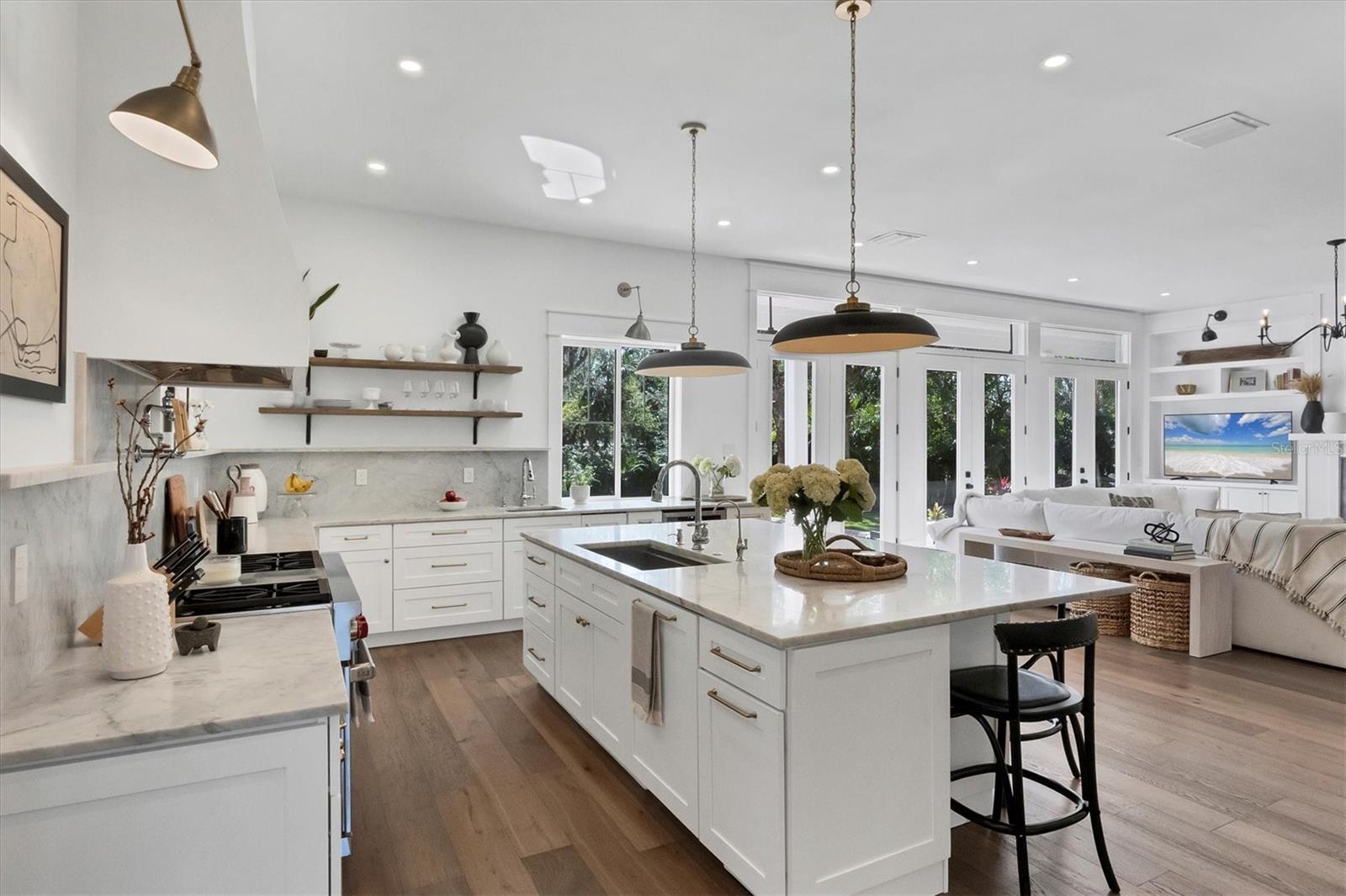 Bem-vindo a esta deslumbrante casa construída em 2021 em um dos bairros históricos mais emblemáticos e pitorescos de Sarasota, Cherokee Park. Oferecendo uma vida luxuosa com design cuidadoso, esta espaçosa residência de mais de 6.000 pés quadrados apresenta uma desejável suíte principal no primeiro andar com um banheiro decadente com banheira de imersão, chuveiro de mármore enorme e acesso à varanda coberta para seu café da manhã. A cozinha gourmet está equipada com eletrodomésticos Wolf e Subzero, bancadas de mármore, despensa, ilha grande para preparação de alimentos ou refeições casuais e vistas deslumbrantes da piscina e do quintal exuberante. A sala familiar tem localização central para entretenimento ideal e possui lareira a gás, detalhes em mármore e embutidos personalizados. O sofisticado salão oferece armários personalizados e é ideal para home office ou sala de estar. No andar de cima, você encontrará quatro quartos adicionais, cada um com amplo espaço e closet, complementados por três banheiros completos. Uma sala bônus de grandes dimensões com bar molhado e um loft aberto oferecem espaços adicionais no segundo andar. Caminhe até o terceiro andar para um sótão acabado, perfeito para armazenamento adicional ou ainda mais espaço de convivência. A lavanderia do primeiro andar possui um mudroom personalizado com cubículos para sapatos e uma mesa embutida, convenientemente localizada fora da garagem para quatro carros. A suíte privativa dos sogros inclui cozinha compacta, lavanderia separada e acesso por elevador para maior conforto e independência. Esta casa possui um lindo piso de carvalho, adicionando calor e elegância a todos os cômodos. A atenção impecável aos detalhes é evidente em todos os cantos e os quartos estão repletos de luz natural abundante. Desfrute de noites tranquilas na varanda dos fundos com vista para a piscina aquecida e o quintal cercado com grama recém-instalada e livre de manutenção. Construída com estrutura reforçada com aço e revestimento de cimento Hardie durável, esta casa oferece integridade estrutural superior, durabilidade duradoura e tranquilidade de baixa manutenção. Esta casa permaneceu seca e sem danos após os furacões. Perfeita para viver multigeracionais ou receber hóspedes, esta casa combina elegância moderna com praticidade. Faça com que seja seu - o vendedor está disposto a personalizar esta casa para atender às suas necessidades. O agente co-listado é o proprietário.