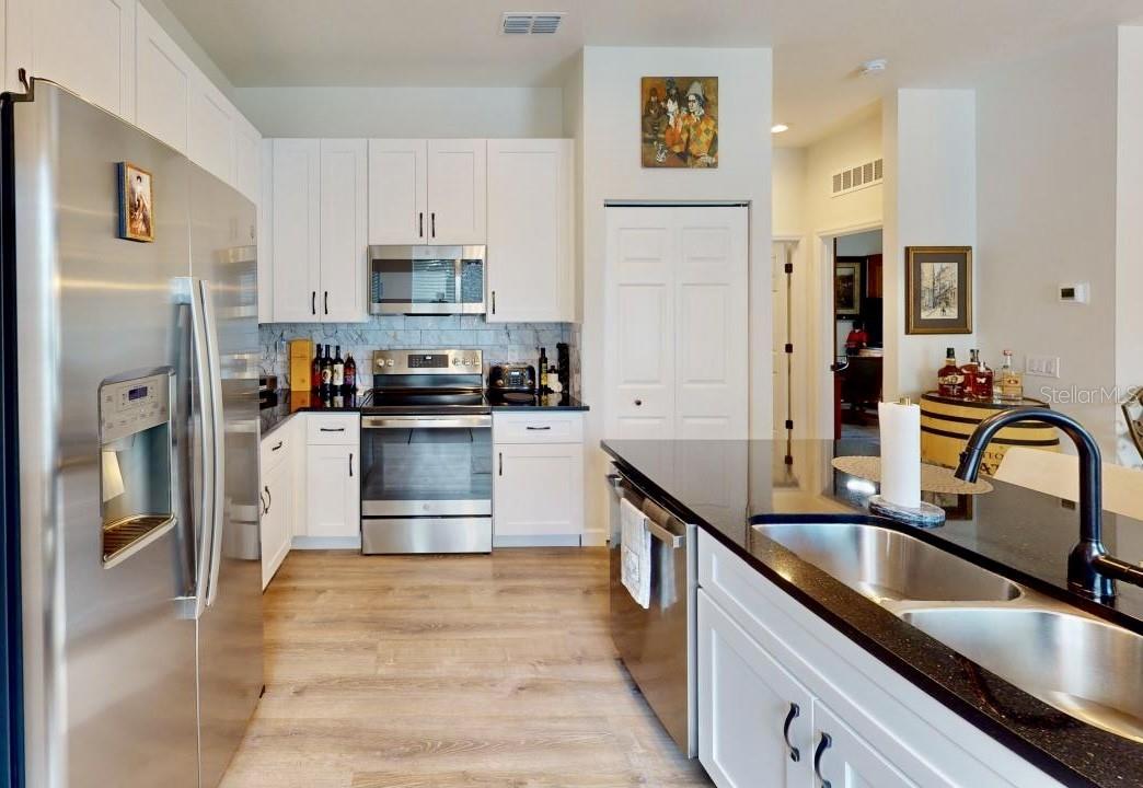 Esta encantadora residência de Sarasota, construída há 3 anos, no condomínio fechado de Hammock Place, oferece espaço de vida meticulosamente projetado em um único andar. A casa possui três quartos, incluindo uma espaçosa suíte primária e dois banheiros bem equipados. A cozinha atualizada é um destaque, mostrando armários nítidos e brancos (de fechamento suave), aparelhos de aço inoxidável de perfil GE, bancadas em granito, um impressionante backsplash de mármore e assento de bar na ilha. A área de jantar exala elegância com um lustre de cristal criando um ambiente único. Pisos de vinil de luxo correm por toda parte, complementando a sensação leve e arejada dos quartos. Grandes janelas na área de estar e quartos permitem ampla luz natural e oferecem vistas da vegetação circundante. Os banheiros apresentam luminárias contemporâneas e azulejos inspirados em mármore. Esta casa combina perfeitamente uma planta baixa para conforto e estilo, com detalhes atenciosos, como ventiladores de teto e iluminação embutida, aprimorando seu apelo. Além disso, outros recursos que esta excepcional oferece ofertas de casa são tetos altos (9'5 "), paredes de concreto isoladas da ICF, janelas e portas de vidro de impacto classificadas por furacões, garagem de 2 carros com espaço de armazenamento de gabinetes e uma geladeira extra. Comunidade restrita de 40 casas, fechado e ações, convenientemente localizado perto de Bobby Jones Golf Course, Sarasota Lawn Bowling Club, Nathan Benderson Park, University Parkway para jantar local, compras, UTC Mall, Instalações de Saúde, Aeroporto SRQ, Downtown Sarasota, Lakewood Ranch Ranch Street, Rua Ranch Nossas lindas praias de areia branca do Golfo (Lido 8mi & Siesta Key 11mi), Ringling Museum e muitas outras atrações nas proximidades.