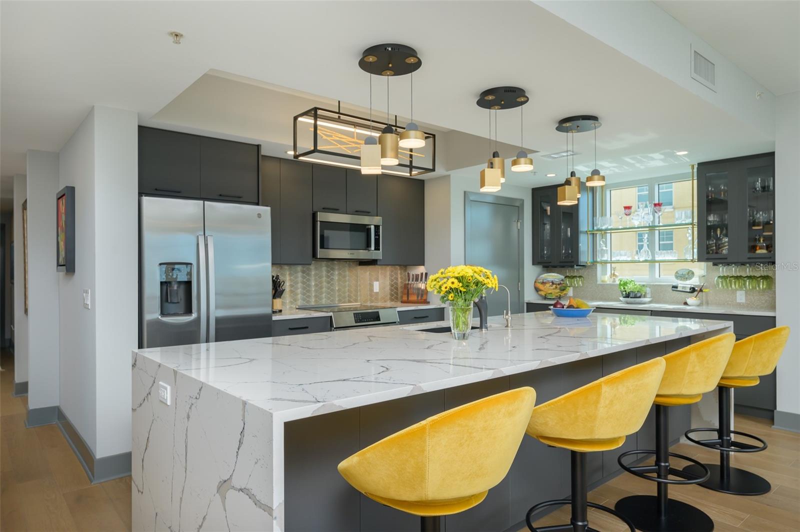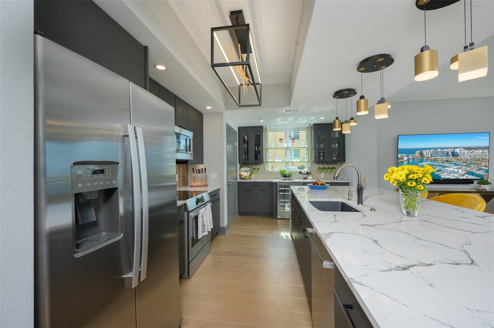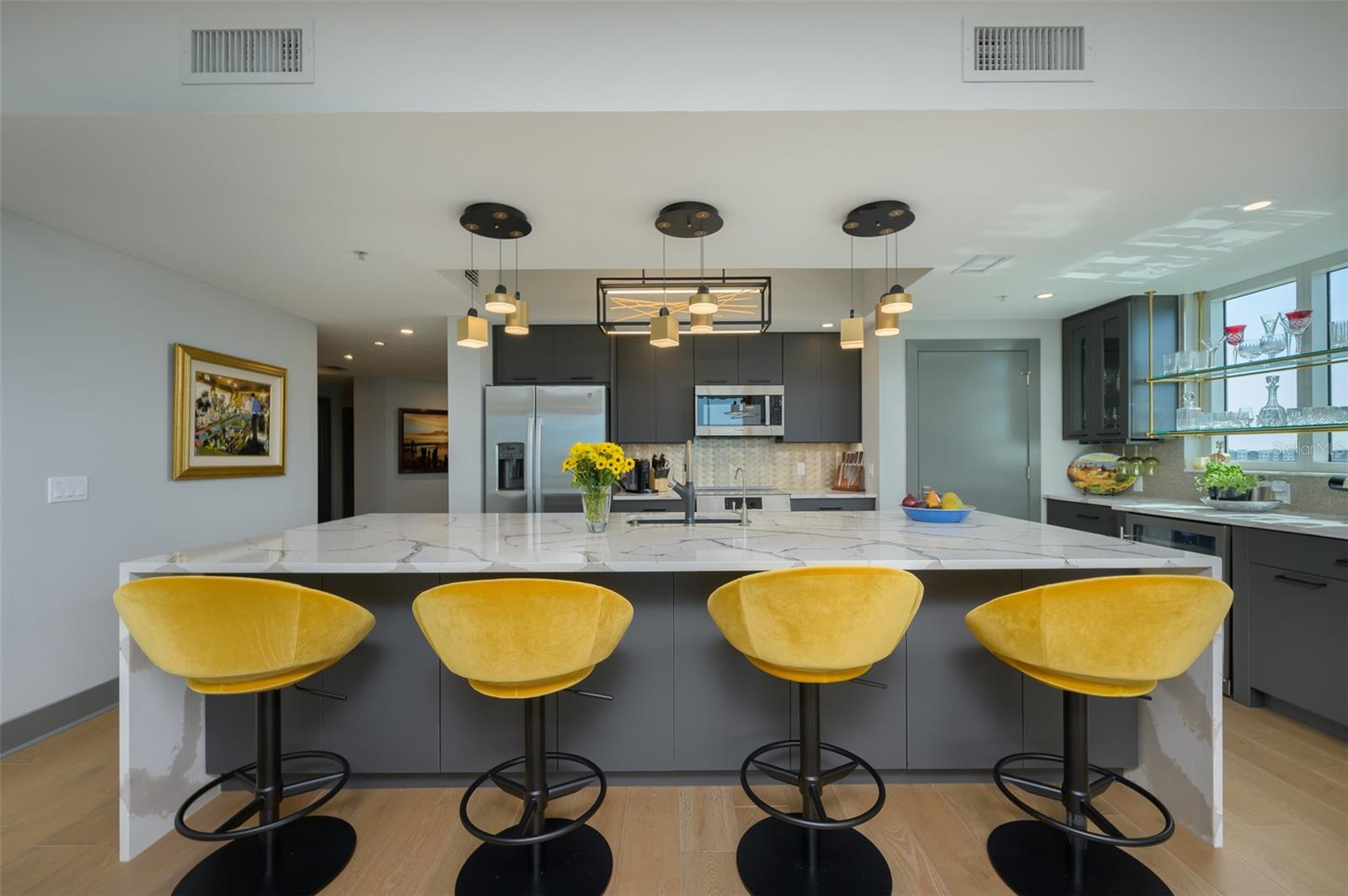 Esta extraordinária unidade de canto do 12º andar na torre sul de Alinari oferece vistas panorâmicas da baía e da cidade de todos os ângulos, tornando-a uma jóia incomparável no bayfront do centro de Sarasota. Com um layout espaçoso com varandas de envoltório acessíveis a partir do quarto principal e da sala de estar, além de uma terceira varanda fora do quarto de hóspedes, esta casa de condomínio parece uma extensão do belo ar livre. Ao entrar, você é recebido por tetos altos e pisos de madeira luxuosos no vestíbulo, sala de jantar, cozinha e áreas de estar, exalando elegância e sofisticação. A cozinha possui bancadas de quartzo e outras atualizações atenciosas, aprimorando a funcionalidade e a beleza. Os espaços de estar de conceito aberto fluem perfeitamente, maximizando a luz natural e criando um ambiente convidativo para entretenimento ou simplesmente relaxar enquanto desfruta das vistas deslumbrantes. A suíte do proprietário de tamanho generoso oferece um retiro privado, proporcionando amplo espaço para relaxar em conforto. Esta casa fica no coração do vibrante centro de Sarasota, onde cultura, arte e entretenimento se juntam com a vida de luxo. Você está a poucos passos de marcos icônicos como o Van Wezel Performing Arts Hall e o coração cultural de Sarasota. Se você gosta de performances de classe mundial uma noite ou uma visita serena ao longo da baía, tudo isso está ao seu alcance da sua porta da frente. Para quem procura conveniência, um segundo espaço de estacionamento transmite e as comodidades de primeira linha estão à sua porta. O edifício oferece segurança 24 horas, uma piscina e spa aquecida, um centro de fitness de última geração, sala de mídia, centro de negócios, biblioteca, adega e muito mais. Esteja você hospedando amigos na grande sala do clube, relaxando na sauna ou aproveitando a área de grelhar ao ar livre, esta residência foi projetada para oferecer um estilo de vida elevado. Saia e testemunhe o futuro emocionante da Baía de Sarasota com a transformação do Bay Sarasota, um desenvolvimento ambicioso que está criando um legado cultural e econômico para a região. Nesta localização privilegiada, você terá acesso incomparável a refeições requintadas, compras e o florescente distrito de Rosemary. Além disso, Lido Beach fica a uma curta distância de carro da fuga final. Esta é sua chance de possuir um pedaço do futuro de Sarasota, onde a cidade encontra o mar, e todos os aspectos do seu estilo de vida são atendidos. Não perca a oportunidade de tornar esta casa extraordinária sua.