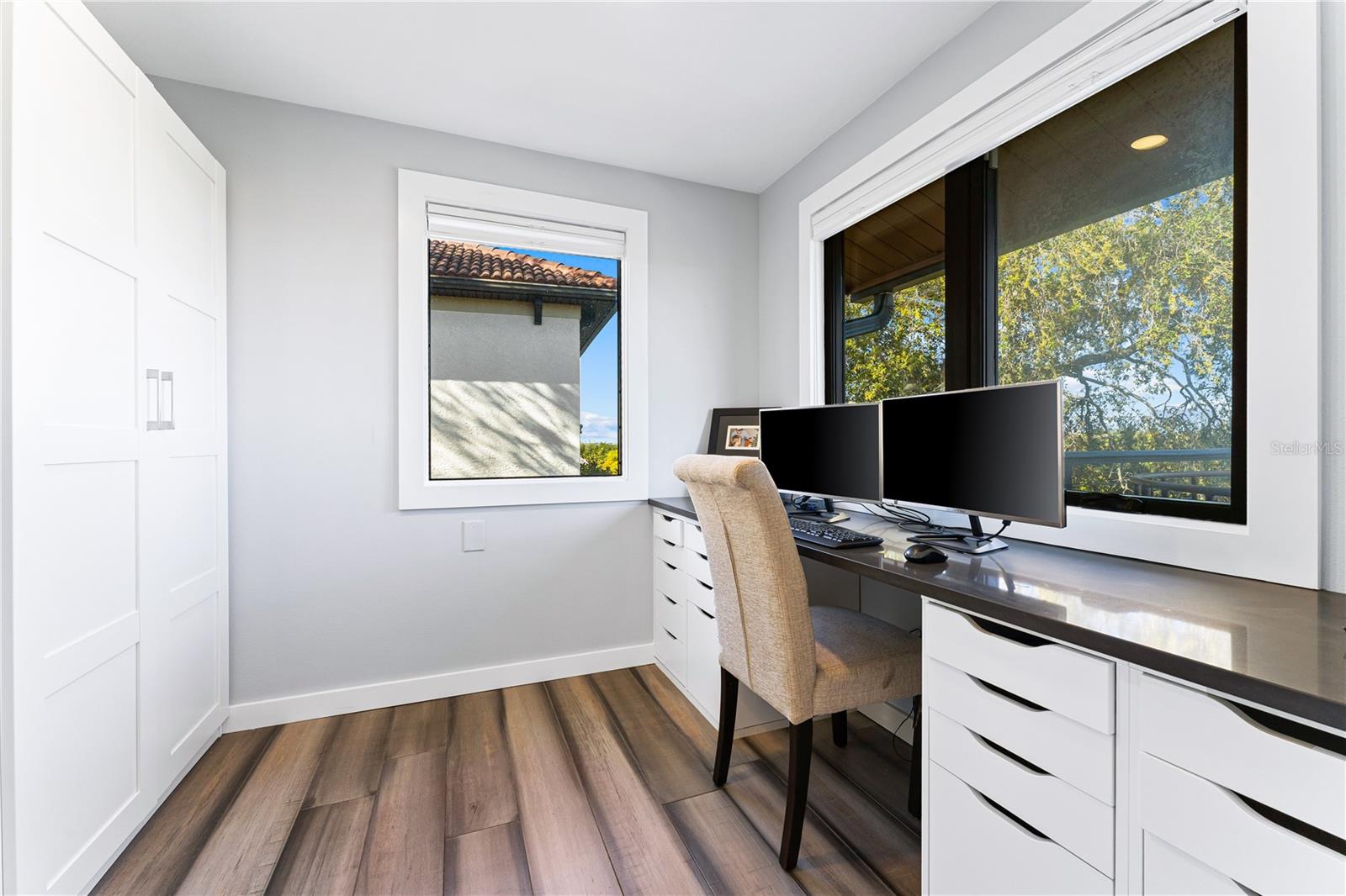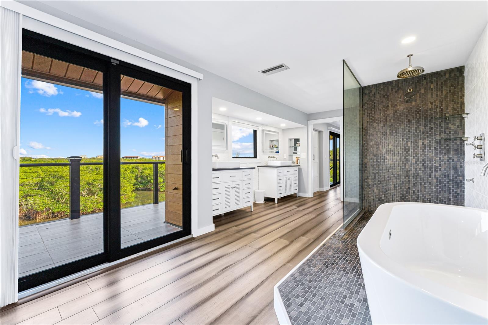 Sem furacão ou dano de inundação. Um oásis costeiro moderno em Siesta Cove, o principal bairro de Siesta Key, destaca 80 pés de orla com acesso conveniente para barcos ao Golfo e Baía, com paredão mais recente, doca de barco e uma piscina extraordinária que o convida a desfrutar do estilo de vida relaxado de Siesta Key. Vistas de tirar o fôlego da baía de Sarasota ao longo dos muitos terraços pacíficos do pátio panorâmico fornecem vistas intermináveis da natureza. No piso principal, uma cozinha generosa com a ilha de cozinheira a gás se abre para a sala da família Zen Fireplate e espaçosa sala de jantar com tetos altos e repleto de janelas de impacto cheio de natureza. Bancadas de quartzo, armários de madeira elegantes e utensílios de aço inoxidável para chefs se juntam à parede de cair o queixo de extensas janelas da cozinha. Além disso, uma sala de pó e um quarto de hóspedes espaçosos completos com banheiro na suíte estão localizados no nível principal. Aproveite a suíte primária de nível superior, com loft office, lavanderia secundária, terceiro quarto grande e banheiro da suíte. O nível inferior possui um quarto familiar, quarto quarto, lavanderia adicional e uma garagem de 2 carros. Este moderno retiro costeiro possui painéis solares com eficiência energética e fica a um curto passeio de bicicleta da praia de Siesta de classe mundial e da vila. Paraíso aguarda.