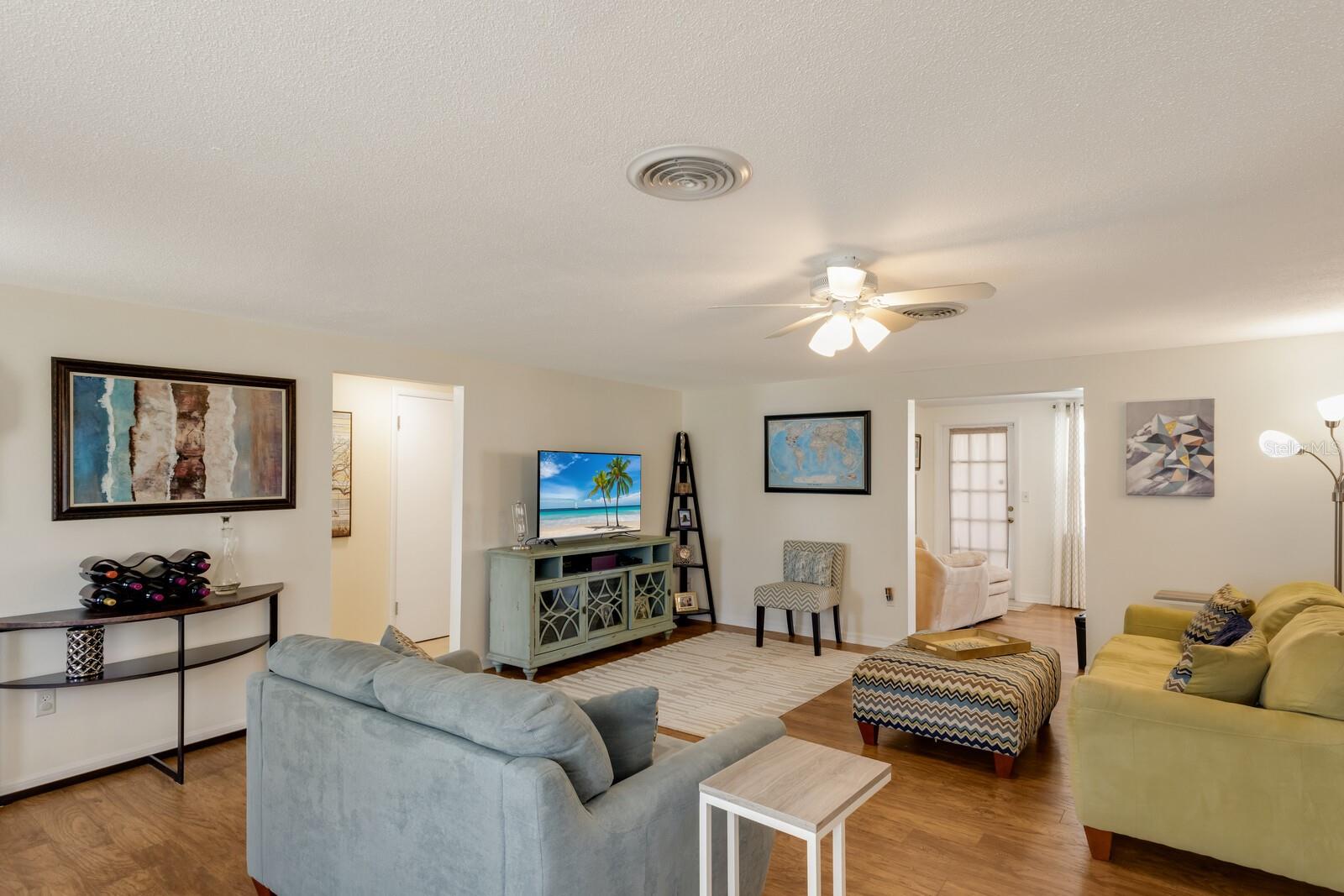 Esta casa está em movimento em condição! Ótimo apelo do meio -fio! Lote extra largo com belo paisagismo. Privado bem para manter o paisagismo fresco. Entrada frontal maravilhosa, porta da frente personalizada com vidro com chumbo. O interior desta casa é tão bonito! Plancos de prancha de madeira acentuam o grande quarto e a sala da família. Cozinha do chef com armários brancos, balcões de pedra e utensílios inoxidáveis. Carpete de pelúcia nos dois quartos. Os banheiros têm armários de atualização e acessórios de encanamento. Outros recursos excelentes incluem uma garagem de concreto largo duplo, o novo telhado de telha em 2018, o Home Re-Piped em 2019, fabuloso duplo largo cercado no quintal. Grande pátio de tijolos traseiros para apreciar esse espaço muito privado. Garagem enorme de 15'x30 '! Ótima localização, perto de excelentes restaurantes, compras e uma curta distância de carro da famosa praia de Siesta! Um bônus adicional de taxas sem HOA ou CDD! Não perca a casa muito especial !!!
