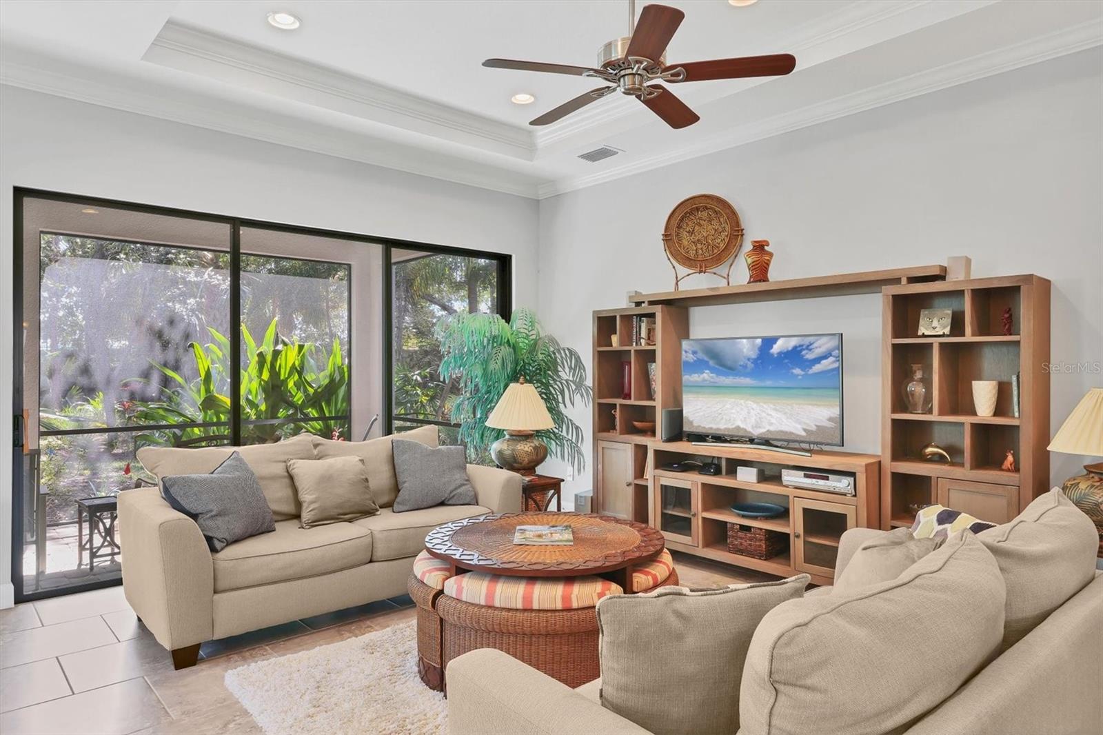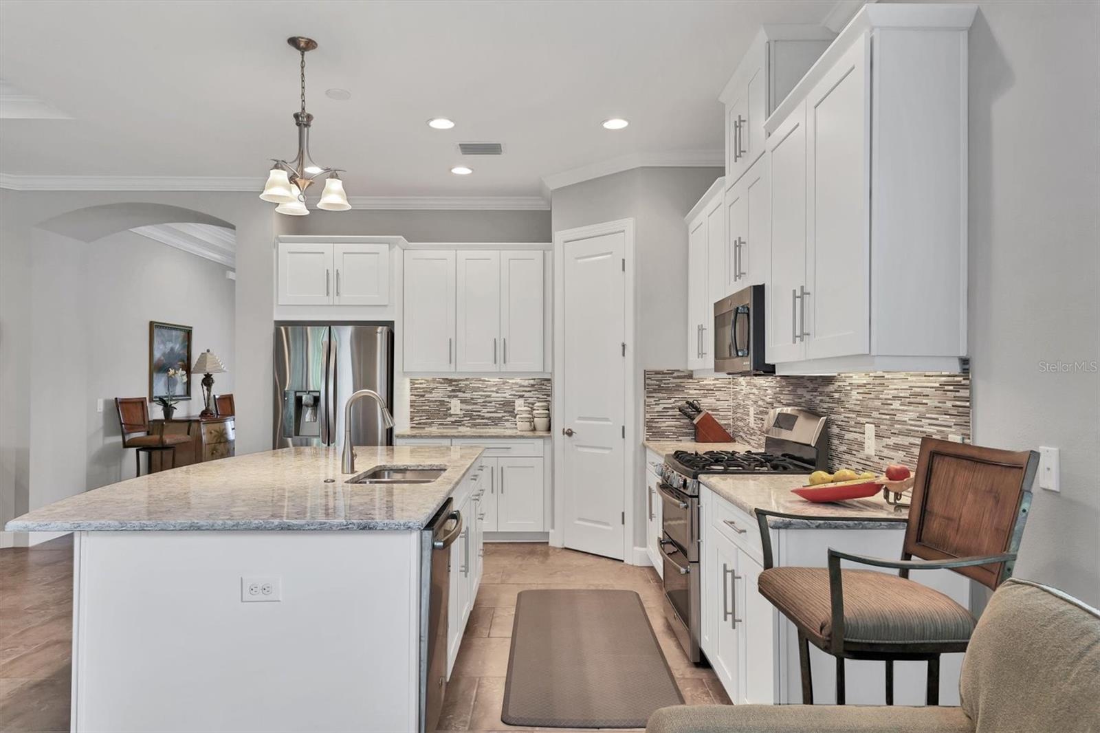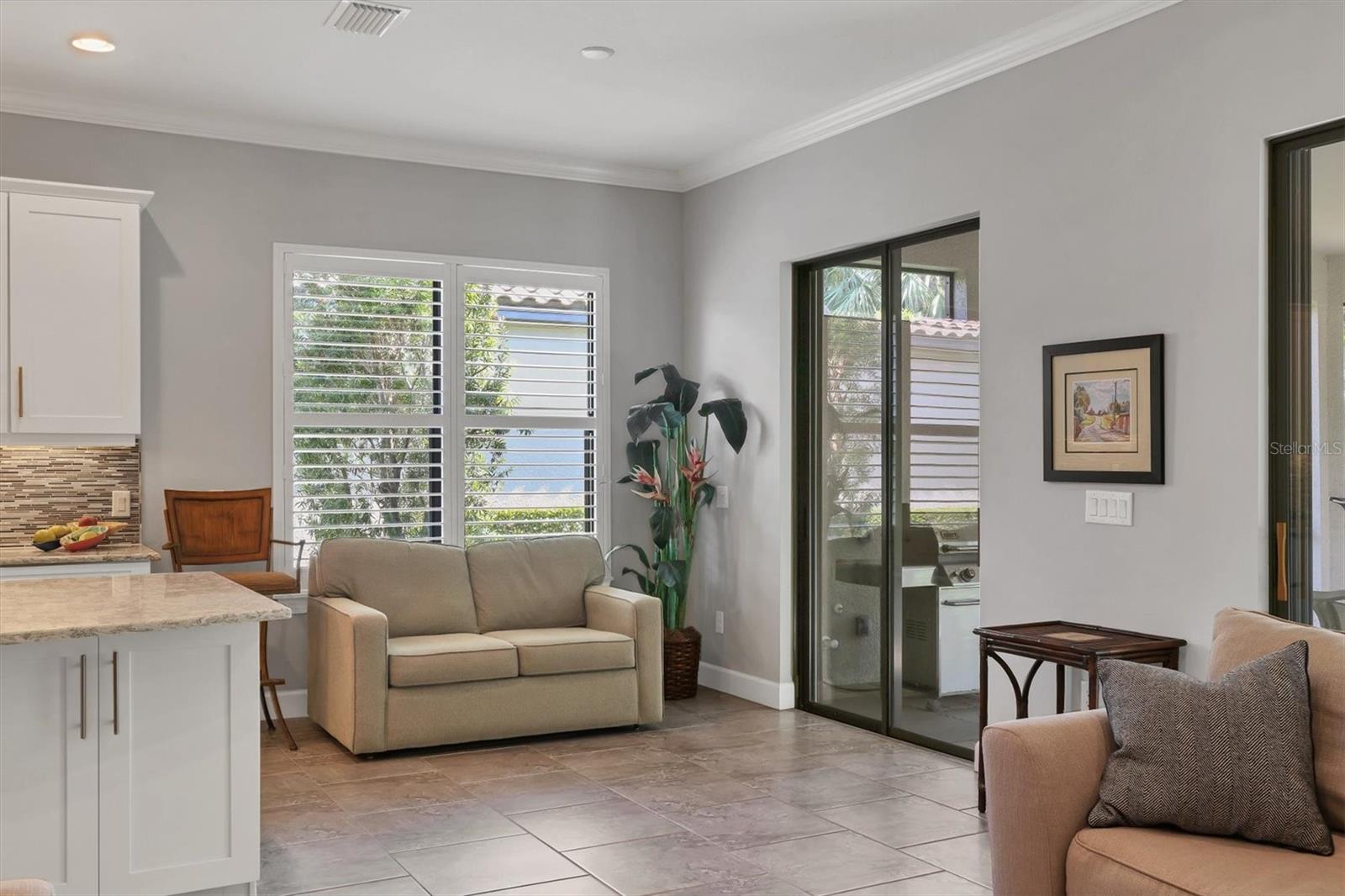 Localizado na altamente cobiçada comunidade de Esplanade por Siesta Key, a poucos minutos do centro de Sarasota e das praias de areia de cristal de Siesta Key, esta linda casa com jardim tropical e vistas exuberantes é livre de manutenção. Você desfrutará de uma vida luxuosa com dois quartos privados, um meio banheiro adicional e um covil que poderia ser facilmente transformado em um terceiro quarto. A grande cozinha gourmet possui uma generosa ilha de quartzo, armários de madeira maciça e utensílios de aço inoxidável GE, faixa de gás com forno duplo (uma convecção) e um recanto de café da manhã. Adjacente à grande sala, a luz solar flui para a sala de jantar através de persianas de plantações. O requintado quarto primário apresenta janelas de sacada com vista para o jardim e é suite, assim como o segundo quarto. O banheiro principal oferece bancadas de quartzo, pias duplas e um chuveiro espaçoso. Silencioso e convidativo, o Den fornece o espaço perfeito como quarto de hóspedes. Ao retornar à grande sala, passe pelas portas de vidro deslizante para a ampla Lanai e aproveite seu café da manhã, um bom livro ou um jantar ao pôr do sol com vista para a folhagem tropical e preserve além. Com tetos de bandeja, moldagem da coroa, armários personalizados e lavanderia com armários e uma janela que permitem luz natural, esta casa sofisticada inclui muitas atualizações, incluindo persianas de plantações, janelas de impacto na frente da casa, ventiladores de teto, furtores de furacões e roll-down furtores nos lãs de vidro do Lanai. A garagem ampliada também possui piso epóxi. A casa tem sido "levemente", pois os proprietários residem aqui apenas em período parcial. As comodidades desta comunidade são inigualáveis, incluindo o elegante clube, piscina e spa, sala de fitness totalmente equipada, bola de picles, quadra de tênis Har-Tru e parque de cães. Aproveite o menu completo de atividades sociais, além de nenhuma taxa de CDD e nenhum problema com os furacões. Apenas alguns minutos para Siesta Key Beach, no centro da cidade, restaurantes e compras, não perca esta rara oportunidade de experimentar Sarasota que vivem no seu melhor. Turnkey mobiliado e pronto para se mudar.