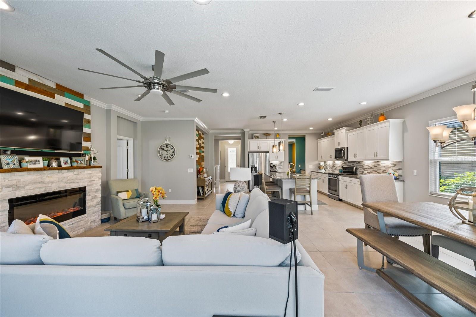 Este impressionante modelo de tributo de 2017 da Neal Communities oferece uma oportunidade de possuir uma casa que é lindamente projetada e imaculadamente mantida. A planta aberta recebe você assim que você caminha pela porta, oferecendo um layout versátil perfeito para entretenimento ou simplesmente relaxar pela lareira elétrica com a família e os entes queridos. A cozinha bem equipada é o sonho de um chef, com uma ilha espaçosa, amplo espaço de bancada, armários abundantes e uma despensa/bar de mordomo embutido. A suíte primária está localizada no térreo. A eficiência é um destaque essencial desta casa, equipada com um aquecedor de água sem tanque, gás natural, vácuo central, sistema de HVAC leve UV, aquecedor de piscina a gás (2021), bomba de piscina (2023) e um piscina recém -pintada. caminhão), iluminação paisagística. Os tetos altos e a elegante moldura da coroa aumentam a sensação de luxo, complementada por tons neutros e luz natural abundante que cria uma atmosfera quente e convidativa. Saia para uma área de piscina privada, onde a piscina de água salgada de tamanho perfeita e o sistema de aquecimento eficiente tornam um mergulho refrescante da manhã ou um mergulho relaxante à noite. O condomínio fechado oferece segurança adicional e uma sensação de exclusividade. Esta casa realmente incorpora luxo, eficiência e conforto - escapou uma exibição hoje para ver por si mesmo!