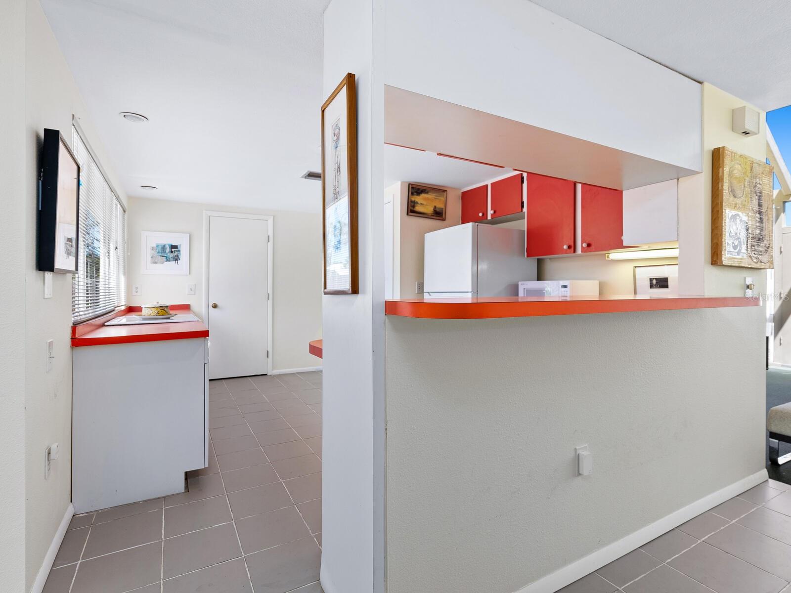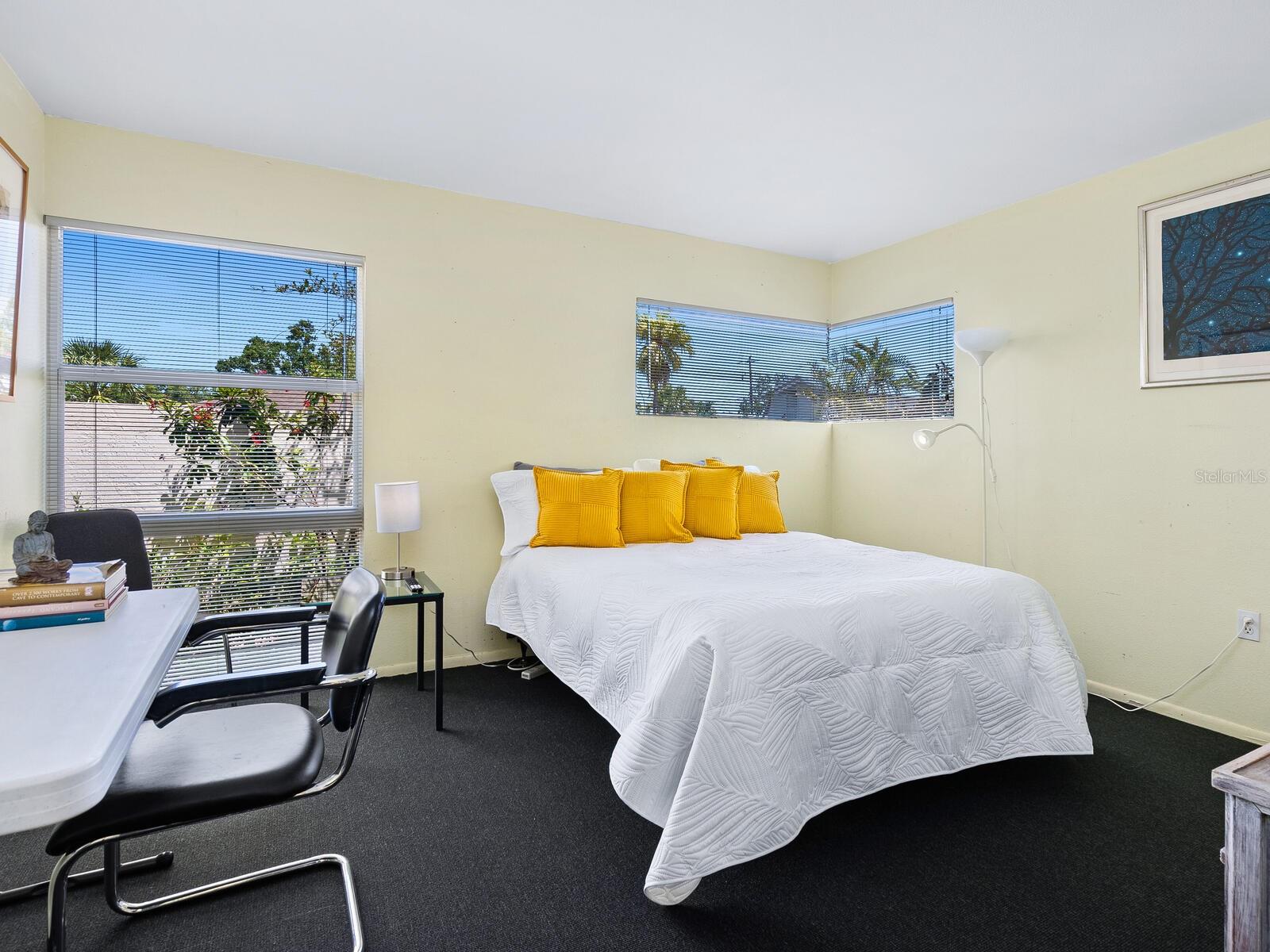 Esta casa de artista exclusiva e cheia de luz é uma rara Sarasota Modern Contemporary (1977), projetada pelo arquiteto Tom Bertram, cujo trabalho foi inspirado por Frank Lloyd Wright. Esta jóia de dois quartos e dois banheiros apresenta tetos altos, janelas do clerestory e um fluxo contínuo de interação externa que celebra a vida na Flórida. Atrás de um pátio frontal tranquilo e murado, a casa se abre para uma sala de estar dramática com tetos de 12 pés e janelas profundas do clerestory, fornecendo luz natural de todos os lados. O layout aberto continua em uma área de jantar, bar de café da manhã e uma cozinha alegre com bancadas laranja em negrito original, retrô da melhor maneira. Uma espaçosa sala de bônus, ideal para um estúdio, sala de TV ou escritório, leva a um pátio traseiro e um amplo quintal cercado. Os quartos estão posicionados em particular com a suíte primária na parte traseira e o quarto de hóspedes e o segundo banheiro em direção à frente. Ambos têm armários e luz natural abundante. O banho principal oferece um retiro sereno, com janelas angulares, uma banheira de imersão profunda e um chuveiro ao estilo romano para relaxar em privacidade pacífica. Situado em um lote de 100.520 pés quadrados (100 'x 102,5'), esta propriedade vem com seu próprio bem e amplo espaço para expandir a casa e dar vida à sua visão com recursos ao ar livre, como piscina, estúdio de artistas ou jardim exuberante. Localização ideal! Ao lado da Riverview High School e a apenas 10 minutos das praias de Siesta Key, dos mercados do Downtown Farmers, The Legacy Bike Trail, Sarasota Art Museum, The Landings, Southgate e uma série de ótimos restaurantes e compras Sarasota. As atualizações recentes incluem telhado (2022), ar condicionado (2020), aquecedor de água (2022), arruela (2024) e persianas personalizadas (2022). Esta propriedade não está em uma zona de inundação e não requer seguro de inundação. Nota: Os artistas que viveram e criaram aqui incluem o escritor/escultor Evelyn e o pintor/escultor Ben Wilson, cujo trabalho é representado nos Arquivos Smithsonian da Arte Americana. Com uma atualização atenciosa, esta é sua chance de possuir um tesouro de Sarasota, ícone arquitetônico de partes iguais e um espaço criativo inspirador, com espaço para crescer.