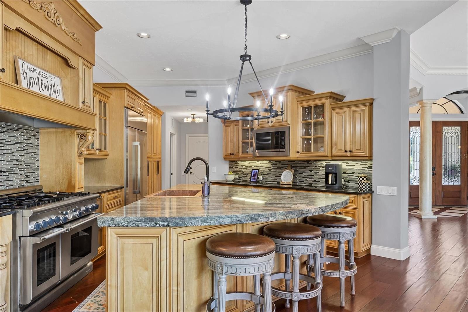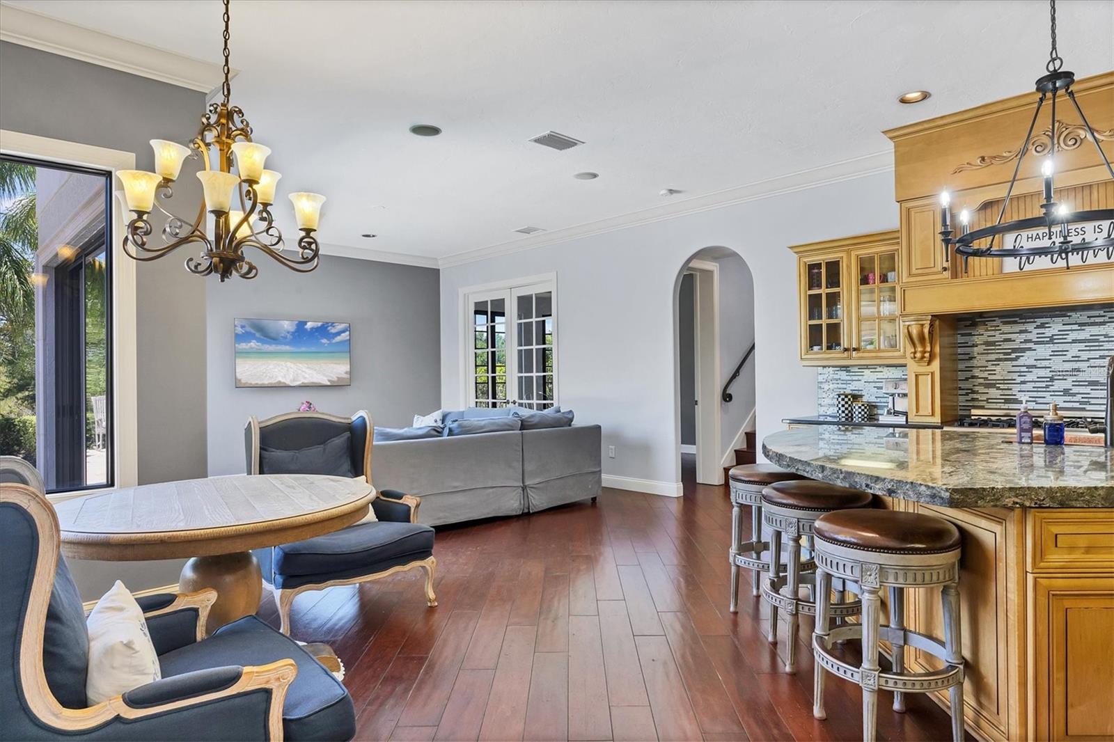 Bem -vindo ao luxo que vive no condomínio fechado e exclusivo do The Founders Club, onde a elegância atemporal encontra sofisticação moderna nesta casa de propriedade lindamente projetada. Aninhado sob carvalhos maduros e cercados por paisagismo exuberante, esta imponente residência personalizada de Todd Johnson possui arquitetura inspirada no Mediterrâneo com recortes requintados e uma grande entrada em colunas. Passe pelas portas de vidro duplo em um interior meticulosamente com curadoria, com ricos pisos de madeira, trabalhos de fábrica personalizados e tetos altos que acentuam os espaços de estar de conceito aberto. Tetos divididos, portas arqueadas e uma lareira lindamente decorada criam uma atmosfera sofisticada e convidativa para entretenimento. Os controles deslizantes de vidro expansivos levam você a um refúgio sereno ao ar livre, com uma piscina espumante, spa, cozinha ao ar livre, lanchone coberto e um quintal privado cercado por palmeiras tropicais e sebes bem cuidadas. A cozinha gourmet é o sonho de um verdadeiro chef, completo com utensílios de aço inoxidável sofisticados, uma faixa de gás, bancadas em granito, uma espaçosa ilha central com assentos e armários de madeira detalhados que exalam calor e artesanato. Logo na cozinha, um recanto de café da manhã aconchegante oferece o cenário perfeito para refeições casuais ou café da manhã, emoldurado por grandes janelas que oferecem vistas do exuberante retiro ao ar livre. A suíte primária é um santuário de elegância e tranquilidade, misturando a arquitetura clássica com confortos modernos. Banhado em luz natural de várias janelas e portas francesas, este quarto espaçoso possui um teto de bandeja gracioso com moldagem por coroa e um lustre de cristal brilhante que ancora a sala com sofisticação. Esta casa lindamente decorada oferece um layout atencioso e versátil, perfeito para a vida e o entretenimento cotidianos. O espaço do escritório/den é brilhante e arejado, graças a um trio de grandes janelas de sacada que oferecem vistas expansivas da paisagem circundante e da luz natural. Portas francesas com painéis de vidro abertas na sala de estar, aumentando a sensação de abertura e conexão com o resto da casa. O primeiro andar também possui meio banho, além de quarto privado com um banho completo adjacente, oferecendo conforto e conveniência para visitar amigos ou família extensa. No andar de cima, você encontrará uma espaçosa sala de bônus completa com uma varanda encantadora com vista para a piscina e o jardim, que oferece infinitas possibilidades como sala de mídia, sala de jogos ou academia. Dois quartos de tamanho generoso compartilham um banheiro bem equipado, tornando-o um retiro ideal para crianças ou convidados. O clube dos fundadores oferece um estilo de vida incomparável, cercado por 700 acres de beleza natural da Flórida. Com apenas 262 residências, esse enclave de baixa densidade é projetado para privacidade e serenidade. Os moradores gostam de acesso a um centro de recreação que oferece aulas de ioga e pilates, além de quadras de tênis Har-Tru, pickleball, basquete, vôlei de areia e um parque infantil. A associação no Founders Golf Club é opcional, oferecendo associações de golfe e sociais. O renomado campo de golfe Robert Trent Trent Jones Jr. oferece aos membros o Easy Tee Times e é um dos únicos cursos de campanha na região. Os membros desfrutam de um grande clube de estilo do sul, refeições requintadas, um calendário social durante todo o ano e uma instalação de fitness 24/7. É mais do que um lar - é um estilo de vida com curadoria para quem aprecia luxo discreto e prestígio silencioso. Todos os minutos de restaurantes requintados, compras e a vibrante cena artística do centro de Sarasota, bem como as incríveis praias de Sarasota.