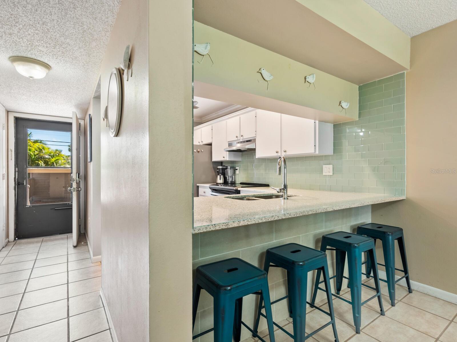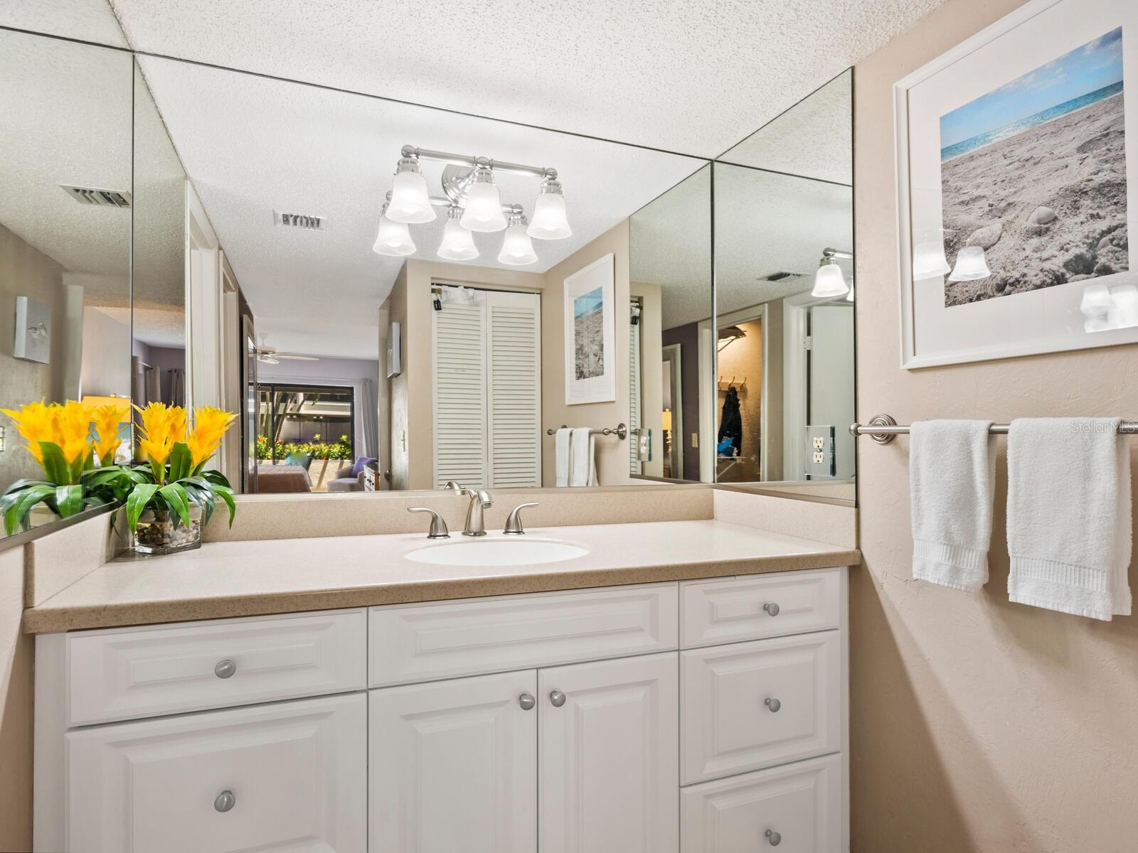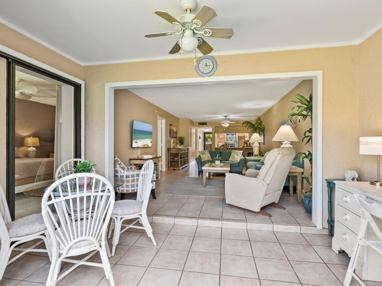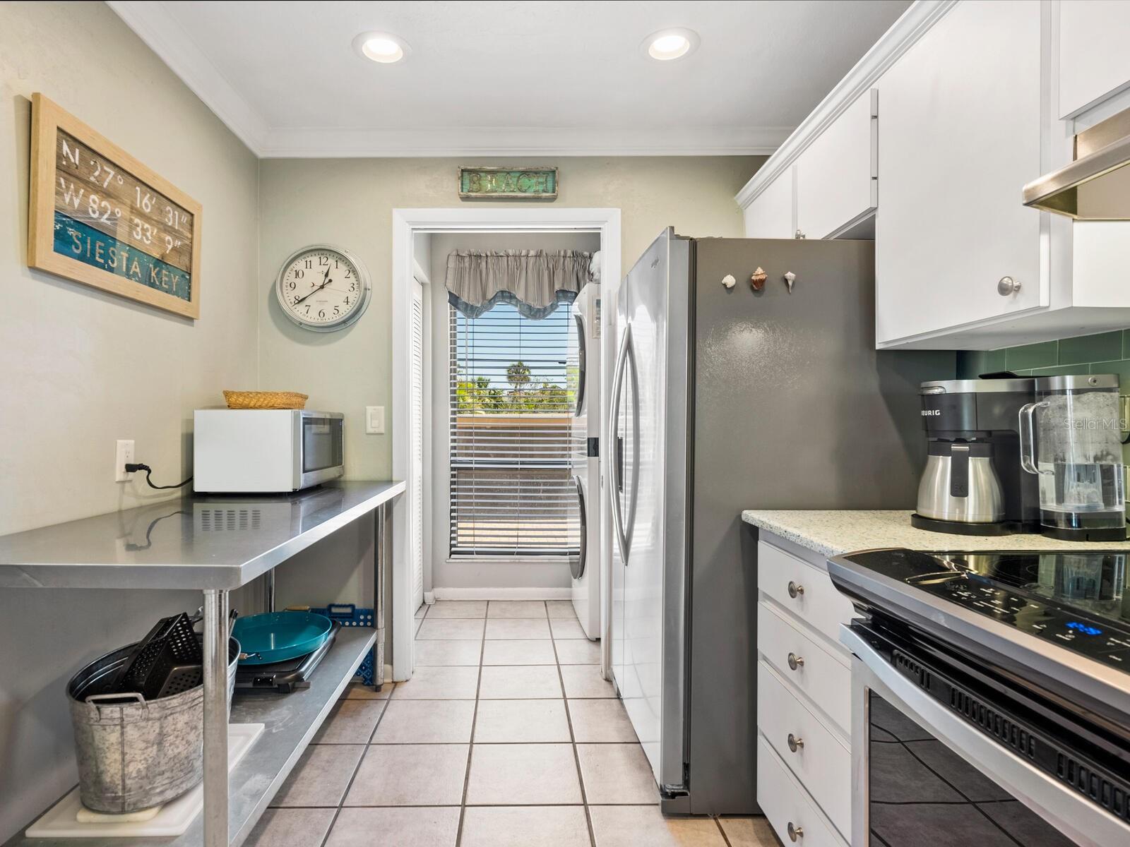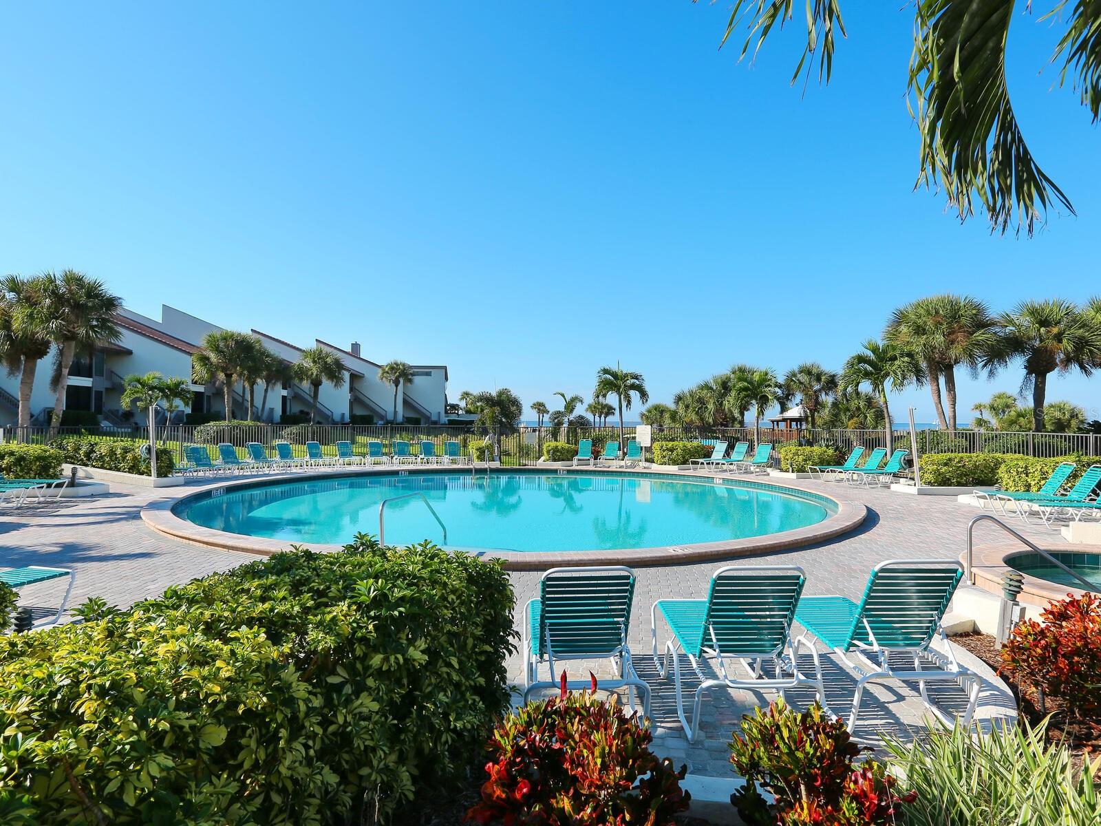 Bem-vindo ao seu pedaço do paraíso na procurada comunidade à beira-mar de Siesta Dunes, em Siesta Key! Este condomínio mobiliado pronto para uso no primeiro andar (com apenas cinco degraus até a porta da frente) oferece fácil acesso enquanto permanece elevado para tranquilidade durante chuvas fortes. No interior, você encontrará piso de cerâmica nas principais áreas de estar e carpete nos quartos, criando uma sensação aconchegante e convidativa. Entre em um espaço iluminado e arejado que se abre para uma varanda fechada em vidro com telas, ideal para aproveitar a brisa costeira. Desfrute de vistas tranquilas de uma exuberante área gramada semelhante a um parque - seu próprio retiro tranquilo. Ao lado do quarto principal, um encantador pátio externo com uma pérgula de treliça convida ao café da manhã ou ao vinho à noite sob as estrelas. A planta de quartos divididos oferece privacidade para proprietários e hóspedes, com cada quarto com closet. A cozinha de conceito aberto é elegante e funcional, com bancadas exclusivas de vidro reciclado, eletrodomésticos de aço inoxidável, um alegre backsplash de azulejos de metrô turquesa claro e um grande balcão de café da manhã aberto, perfeito para refeições casuais e divertidas. Uma lavadora/secadora empilhável de tamanho normal fica próxima a um armário da despensa para armazenamento extra. O condomínio inclui sua própria garagem convenientemente localizada do lado de fora da porta da frente, junto com um espaçoso armário de armazenamento de 4'X9' para todos os seus brinquedos e equipamentos de praia. As churrasqueiras comunitárias estão por perto. Uma grande piscina redonda de água salgada fica a poucos passos da praia, além de um deck/pavilhão elevado, perfeito para relaxar, grelhar e observar o pôr do sol de tirar o fôlego, uma tradição apreciada nas Dunas de Siesta. A quadra de tênis no local é facilmente conversível para pickleball, tornando-a perfeita para fãs de ambos os esportes. Este condomínio fechado é meticulosamente mantido e bem administrado, oferecendo excelente flexibilidade de aluguel com mínimo de 2 semanas de 15 de janeiro a abril e mínimo de 1 semana no resto do ano. Quer esteja à procura do seu próprio pedaço de paraíso ou de uma propriedade com forte potencial de rendimento de aluguer, este condomínio Siesta Dunes tem de tudo. O vendedor encomendou e está pagando pelas portas e janelas de vidro deslizantes de impacto para esta unidade.