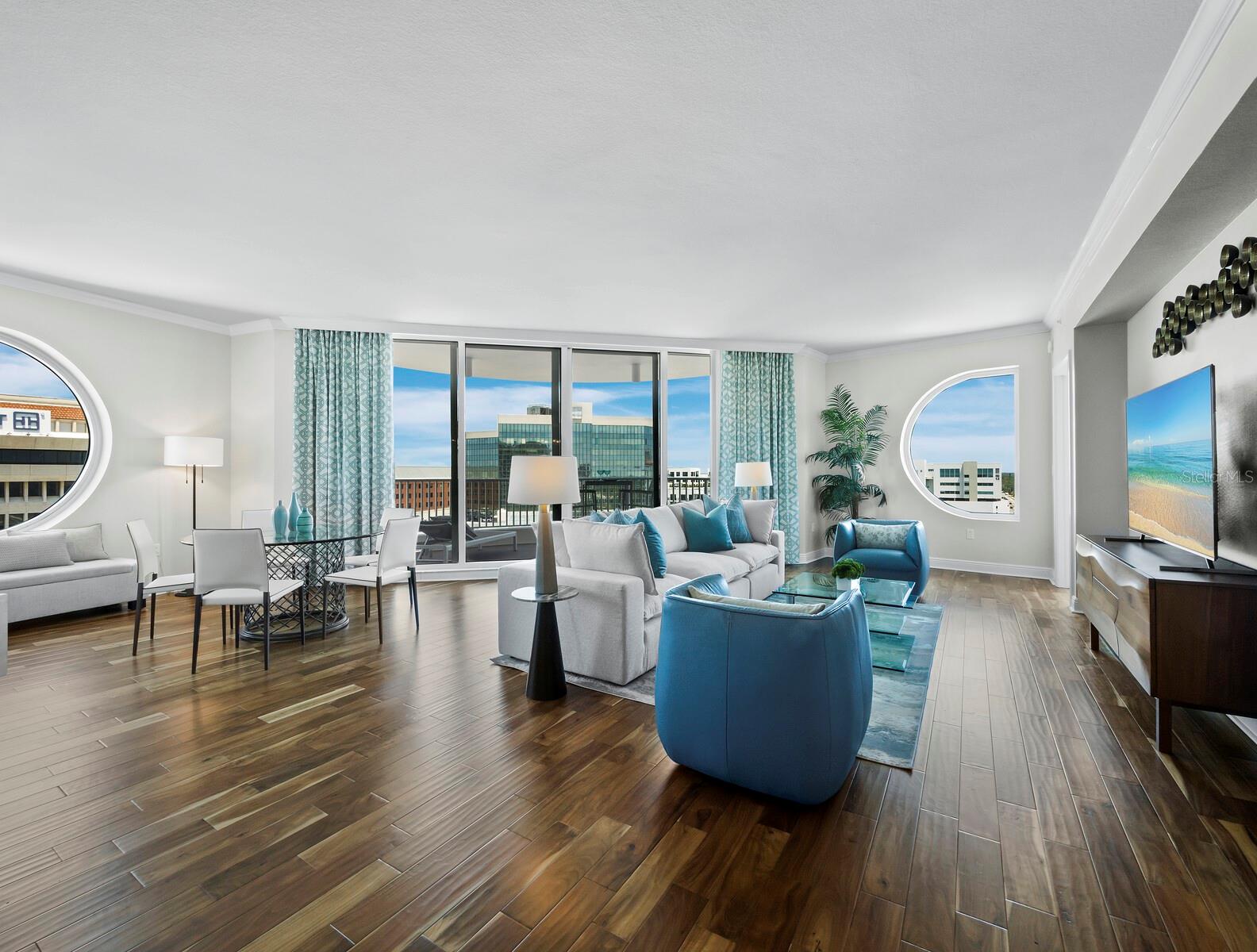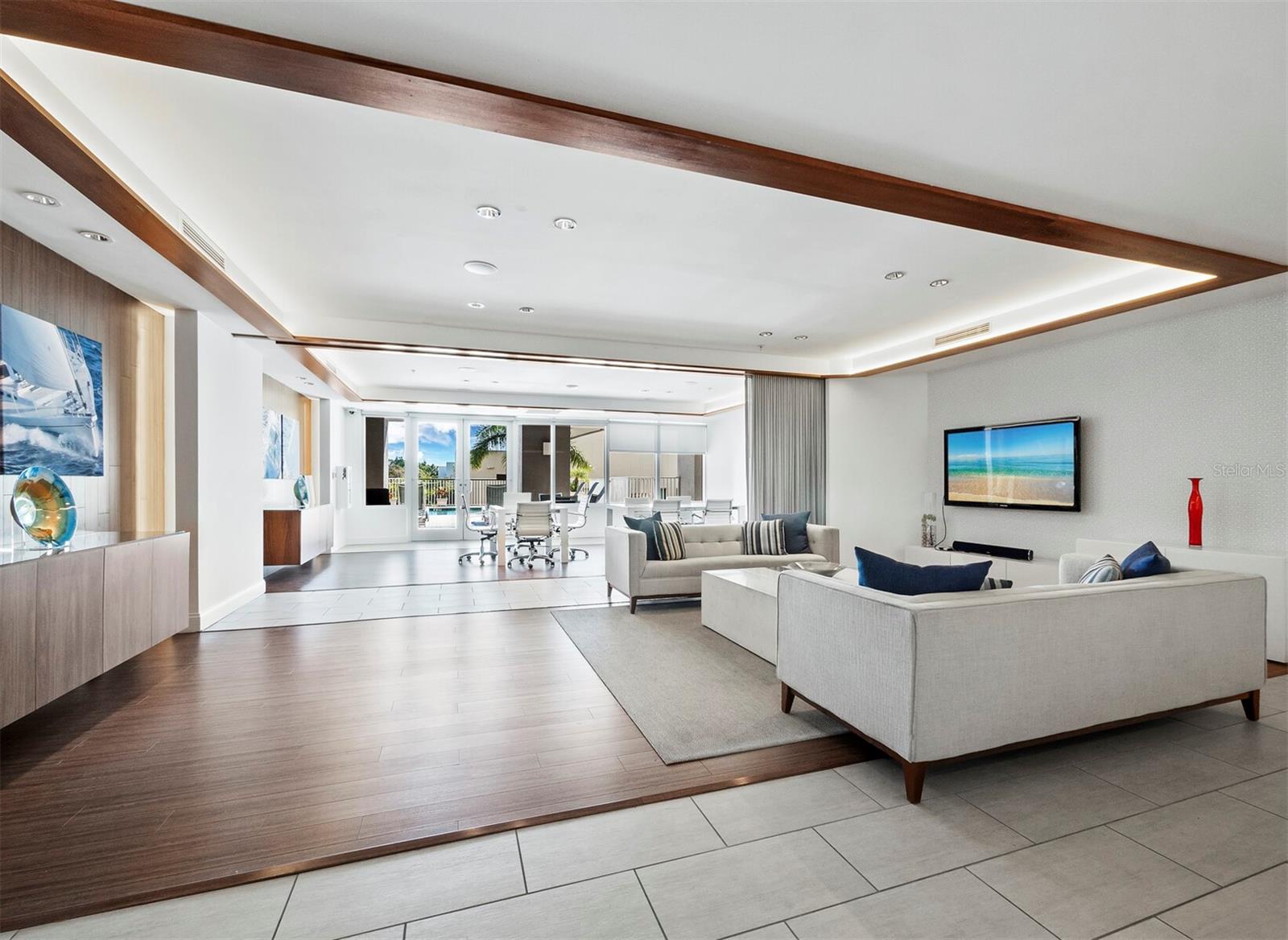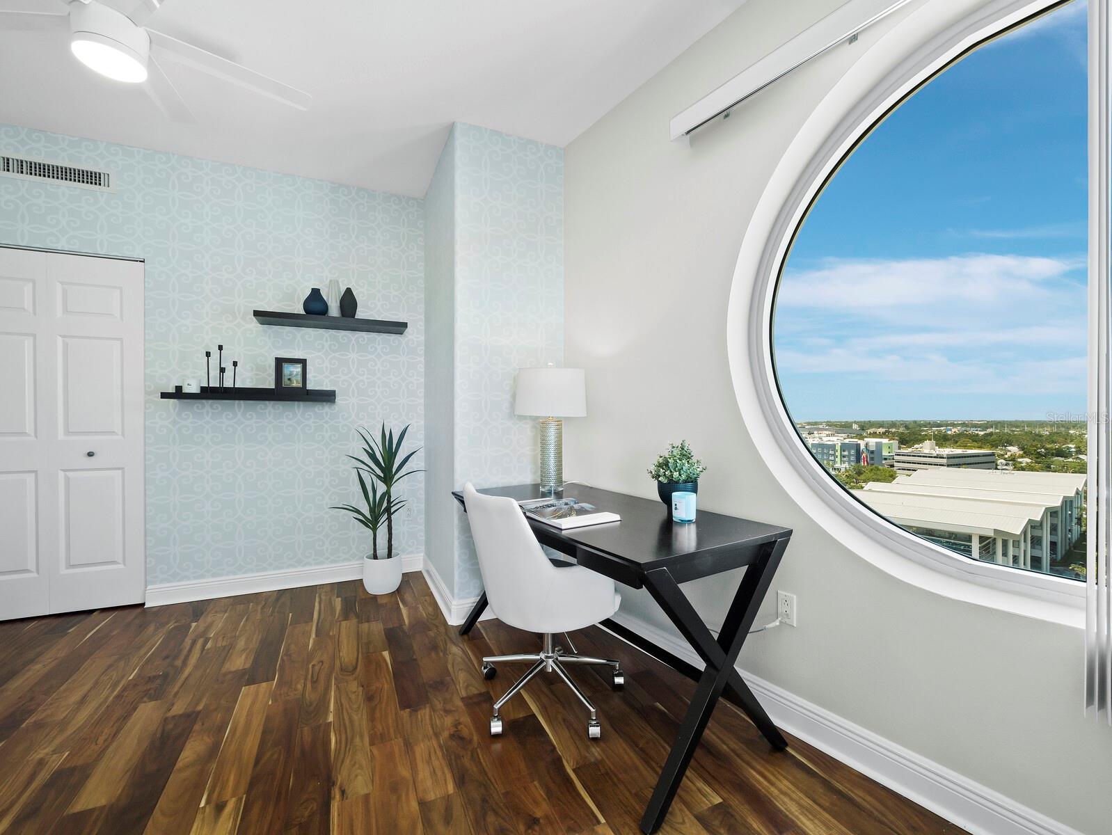Um excelente valor com comodidades premium em uma localização desejável no centro da cidade, esta residência no andar de alto andar no Rivo possui um espaço generoso, vistas elevadas e um grande terraço que convida um luxuoso fluxo de interação externa. Situado no décimo primeiro andar da esquina nordeste preferida do edifício, a casa é orientada para vistas lindas no nascer do sol, com uma parede de 16 pés de portas de vidro deslizantes, aprimorando vistas de 270 graus não obscuradas e expandindo a planta aberta para a considerável varanda de 20 'x 9'. Ideal para ocupação sazonal ou em tempo integral, esta casa oferece uma vantagem notável de preço por seu tamanho, com baixas taxas mensais, duas vagas de estacionamento, além de estacionamento abundante e uma impressionante variedade de comodidades que incluem concierge, atividades sociais e muito mais. Além do hall de entrada privado da casa, o espaço central é um cenário contínuo para conforto e conveniência, abrangendo uma cozinha bem equipada com assentos de balcão, um espaço de jantar separado e uma fantástica sala grande, onde as portas deslizantes duplas mostram vistas altíssimas e levam à varanda profunda para refeições e lanchonetes abertos. Um retiro acolhedor e iluminado, a suíte primária desfruta de janelas grandes, um closet e uma suíte com vaidade dupla, banheira de imersão e chuveiro. Para obter a máxima privacidade, o quarto de hóspedes está situado no lado oposto da residência adjacente a um segundo banheiro completo. Adjacente à sala de estar, um terceiro quarto agrega valor como espaço flexível para trabalhar em casa ou em hospitalidade ocasional. Uma sala de utilidade separada com lavadora e secadora de capacidade de grande capacidade oferece conveniência, enquanto acabamentos refinados, como pisos de madeira, bancadas em granito e iluminação embutida, sustentando o design atencioso. Inspirado pela elegância de iates de luxo, o Rivo em Ringling apresenta detalhes arquitetônicos exclusivos que celebram o design marítimo, de um átrio crescente que acolhe a luz natural ao conservatório central, a janelas demilunes em larga escala e as balconias privadas graciosamente curvadas. No terceiro andar, o nível de comodidade inclui uma piscina e spa aquecidos com estar de sol e tâmaras, estação de churrasqueira, fitness center e espaços de conferência e lounge. Ligeiramente a leste da Orange Avenue, o endereço no centro da Rivo desfruta de proximidade com restaurantes, lojas e a beira -mar.