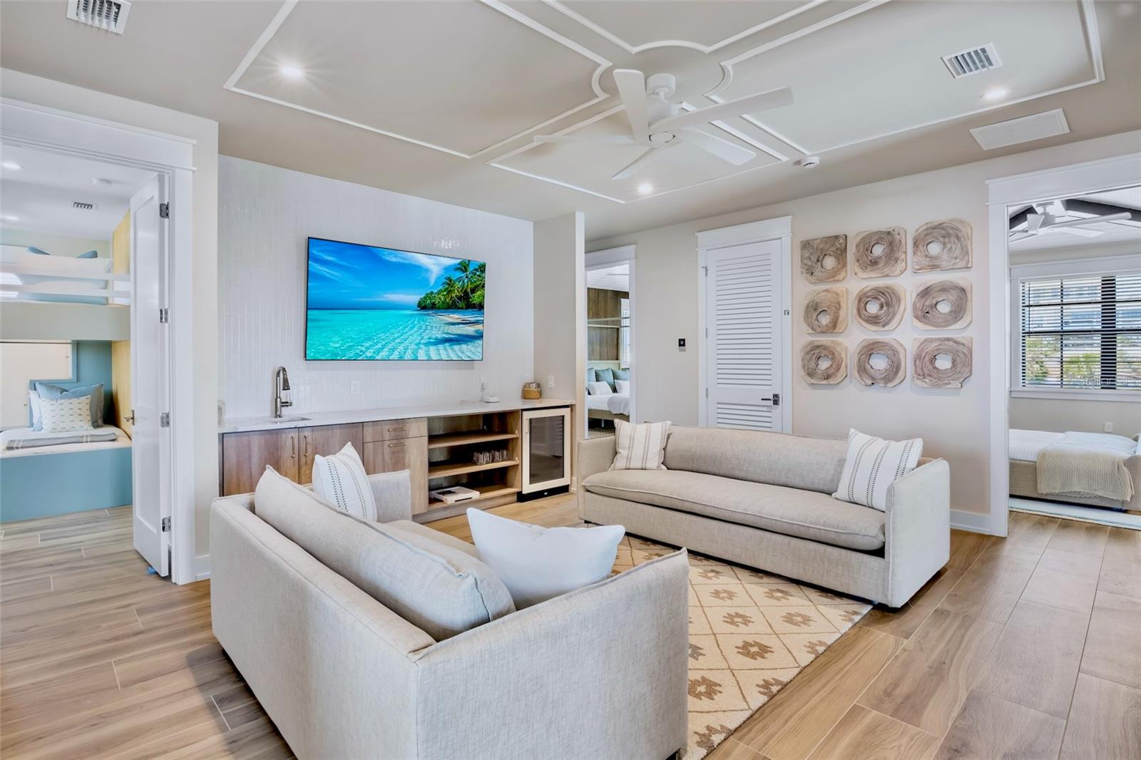 Em uma palavra impressionante! Costeiro, moderno, brilhante e arejado. Esta casa tem tudo o que você poderia querer em um local fabuloso perto das compras e refeições de classe mundial do São Armand's Circle e Lido Key Beach. Esta propriedade de banho 61/2 de 6 quartos é a mão chave na mão Mobiliado, tem um elevador e possui um espaço ao ar livre dos seus sonhos! Nenhuma despesa foi poupada nesta casa com acabamentos de designer de ponta e atenção aos detalhes; portanto, todo espaço é perfeitamente com curadoria para criar um ambiente de refinado e relaxado sofisticação. A cozinha do chef apresenta aparelhos de primeira linha, lindos armários personalizados e INS construídos, ilha de grandes dimensões com cachoeira de quartzo e espaço para tudo para entreter da preparação de alimentos para uma estação de coquetel e vinhos. Os fluxos de plano de piso conceitual aberto perfeitamente a uma bela sala de jantar e estar que se estende a uma varanda coberta ao ar livre para fazer a transição para o ar livre. Retire para a luxuosa suíte primária, completa com um banheiro privativo do tipo spa, com uma banheira de imersão, chuveiro de grandes dimensões, vaidades duplas e espaçosos Closet. Um segundo quarto com banheiro privativo e um lavabo também está no nível principal. No andar de cima, você encontrará mais 4 suítes de convidados, todos com banhos particulares e uma segunda sala de estar com varanda coberta, fornecendo o nível ideal de conforto e privacidade para o seu convidados. Mas não se sinta muito confortável antes de chegar ao deck superior do telhado para vistas espetaculares da água e do horizonte ao pôr do sol. Economizar o melhor para o final e esse certamente será um dos seus recursos favoritos desta fabulosa casa de praia. O oásis do quintal é divertido e divertido e parece algo fora de Palm Springs. Saia de uma piscina linda com escorregador embutido, banheira de hidromassagem de grandes dimensões e espaçosa área de lounge, chuveiro ao ar livre cercado por grama de baixa manutenção. As cores e a sensação apenas fazem você feliz por estar lá. Este é tão especial! Reserve sua exibição particular hoje!