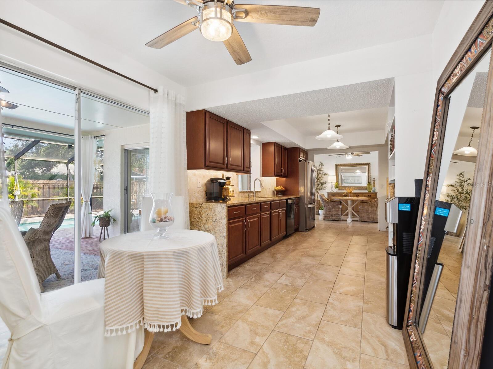 Vendedores motivados! Bem-vindo de casa nesta residência espanhola de três quartos e dois quartos e dois banhos na comunidade de portões do Golfo Procurada-apenas um curto passeio de bicicleta da praia de Key de Siesta, de renome mundial. Misturando design atemporal com atualizações modernas, esta casa oferece um estilo de vida definido por conforto, conveniência e charme costeiro. Entre para descobrir um interior recém -pintado com tetos novos e suaves, iluminação atualizada em dimmers por toda parte e piso de garagem recém -texturizado. A Kirkplan Kitchen atualizada oferece bancadas de granito, armários de madeira de perto com prateleiras de retirada, eletrodomésticos, uma grande despensa e estante embutidas e uma área encantadora para desfrutar de vistas serenas da piscina do recanto do café da manhã, ideal para café da manhã ou jantar casual. Os armários de banho foram substituídos junto com novos balcões de quartzo brilhante. O banho principal apresenta um chuveiro de mármore incrível e cultivado com bancada que acabou de instalar no ano passado. Você vai adorar a lavanderia privada brilhante e ensolarada com nova lavadora e secadora de pedestal Samsung (2023). Um novo telhado de ladrilhos de barril (2023) acrescenta estilo arquitetônico e paz de espírito a longo prazo. Esta casa foi totalmente repleta. Ao ar livre, as paredes externas foram transformadas com tinta quente de marfim, uma nova varanda da frente da pavimentadora e passarela frontal aumentam o apelo do meio -fio, enquanto a grama fresca e o paisagismo colorido criam um cenário tropical exuberante. O quintal totalmente cercado (2023) é enquadrado com árvores vizinhas e a convidativa área da piscina de pavimentadora com uma piscina de 12 por 32 pés oferece um retiro privado para relaxamento ou entretenimento. Este local oferece o melhor dos dois mundos - recorda a Siesta Key Beach sem o tráfego e, a poucos minutos das escolas, refeições requintadas, compras boutique, golfe e passeios de barco. Esteja você buscando uma residência em tempo integral ou fuga sazonal, esta jóia do Gulf Gate é uma oportunidade excepcional em uma das convenientes comunidades à beira-mar de Sarasota. O agente de listagem é proprietário, vamos fazer um acordo!