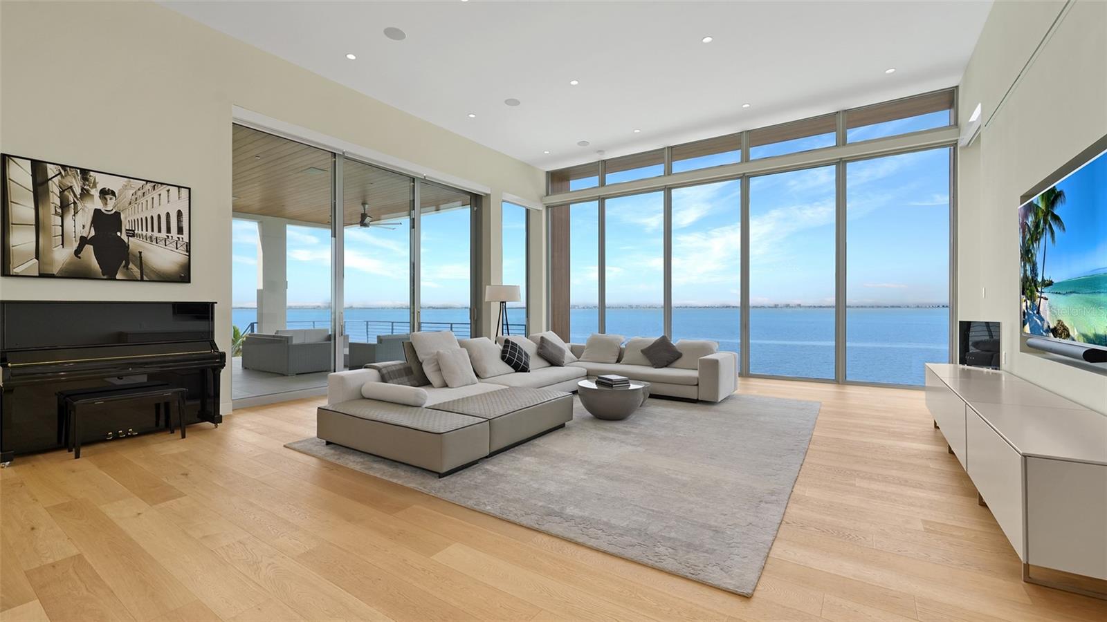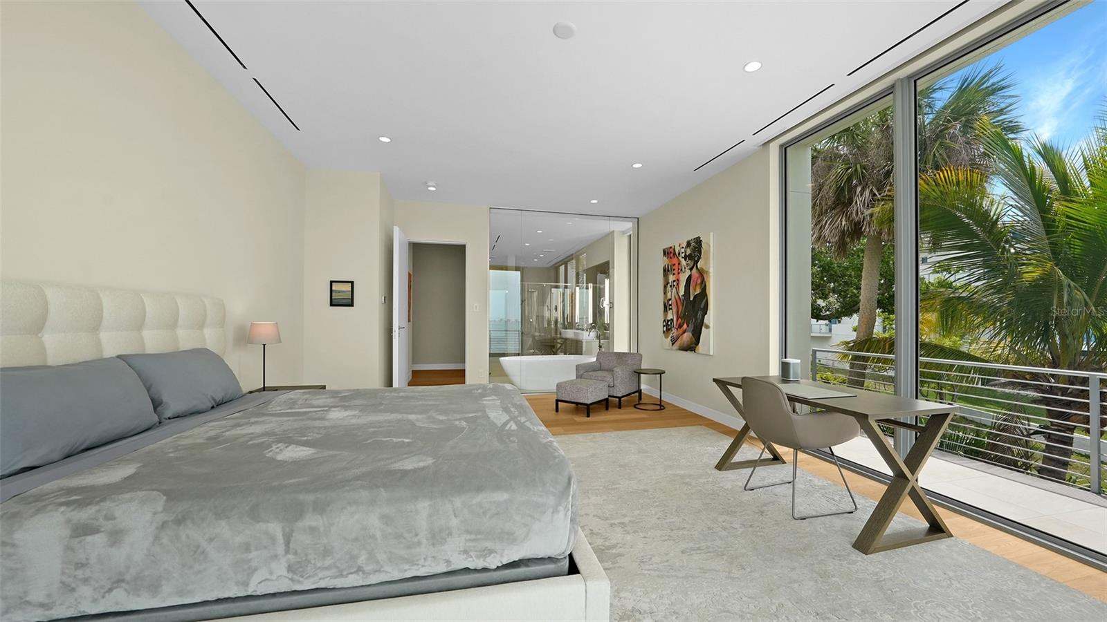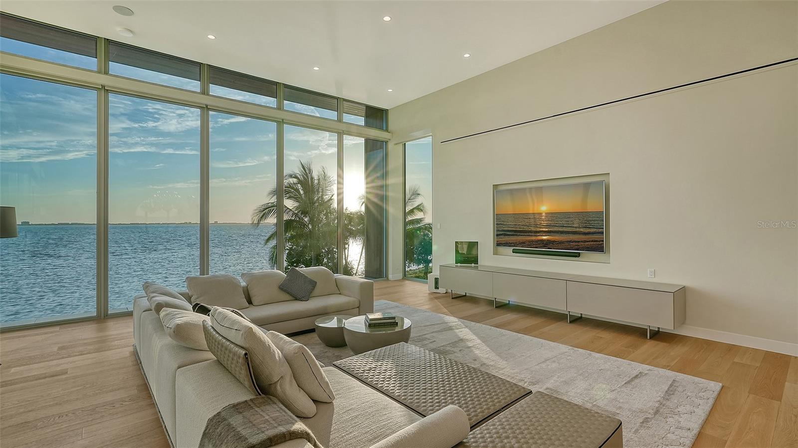 Uma jóia requintada da arquitetura contemporânea com quase 180 pés na Baía de Sarasota com vistas quase sem fim. Esta obra -prima contemporânea foi projetada pelo renomado arquiteto DSDG Mark Sultana e construído pela Voigt Brothers Construction, e fica em mais de 1 hectare diretamente na Baía de Sarasota. A propriedade é fechada e as plantações nativas da Flórida e tolerantes à seca foram usadas para limitar a quantidade de irrigação necessária. Com todas as comodidades necessárias para a vida de luxo, esta casa inteligente é impressionante por dentro e por fora. As colunas grandes elevam a estrutura para que ela forneça proteção contra os elementos e pareça flutuar acima do solo acima de uma colunata ao ar livre. Todo o edifício, incluindo o telhado, é feito de construção de concreto armado, com adição de detalhes em madeira e pops de cor para uma estética geral quente. O teto de concreto permitiu a instalação de um sistema solar enorme, instalado para que a casa seja totalmente alimentada e possa ser independente da grade de energia. Entre na residência através de uma porta de articulação de vidro de grandes dimensões e a escada suspensa com degraus de madeira maciça ou o elevador o levará à impressionante área de estar principal, que é então tudo em um nível. A grande área da sala de estar se abre para o enorme terraço coberto através de gigantescas portas deslizantes de vidro de impacto com vista para vistas deslumbrantes da baía. A cozinha gourmet ultra-moderna, equipada com controles deslizantes de vidro que se abre para o convés, também está conectada à grande sala e pode ser separada por uma parede móvel, se desejar. A suíte principal do quarto com escritório/estudo anexado está localizado no extremo sul da casa com as melhores vistas da ponte Ringling. As quatro suítes adicionais estão localizadas ao longo de uma galeria com paredes de vidro do chão ao teto. Cada quarto se abre para uma varanda completa voltada para o oeste, com vistas para a Baía de Sarasota e a Key Longboat e os banheiros estão equipados com um painel de vidro interior para fornecer vistas de água da baía. O piso térreo oferece espaço para garagem para quatro veículos, sala de bônus, espaço de armazenamento e uma área de pátio coberta com vista para a piscina de volta a mais de 60 pés, com vistas deslumbrantes da baía, o centro de Sarasota e a Key Longboat. Situado em Popular Indian Beach, que também é chamado de área do museu, porque se estende a "oeste de Trail", ao norte do centro de Sarasota, ao longo da baía de Sarasota, ao sul do Museu Ringling e Ca'd'zan. Downtown Sarasota, Aeroporto Sarasota-Bradenton Int'l, New College da Flórida, Campus do Manatee da USF Sarasota, Jungle Gardens, St. Armand's Circle e Lido Beach estão a uma curta distância de carro.