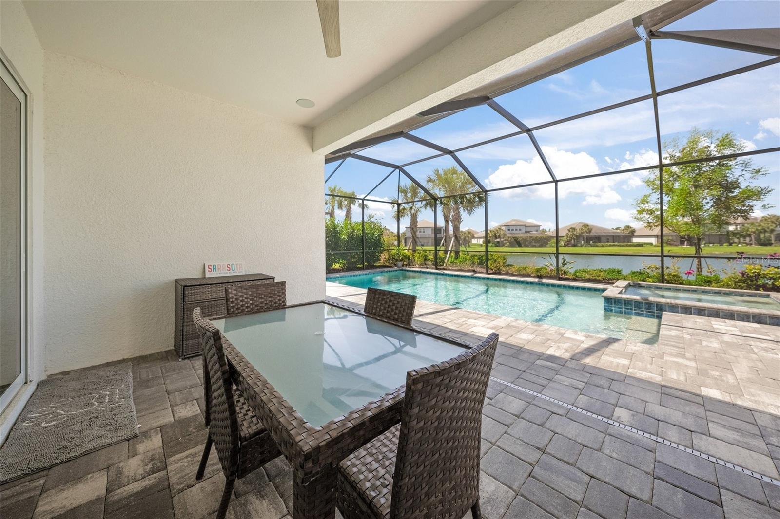 Esta é a única * qualidade construída por M/i Casas de Sarasota * localizadas atrás dos portões de lagos de rivo raramente disponíveis, onde sua casa de sonho aguarda * 'um distrito escolar nominal * cuidadosamente cuidados pelo proprietário original * Esta casa de propriedade da família apresenta 5 quartos e banheiros de 3.5 * Plano de piso é perfeito para uma suíte in-law ou Multi-Gerational JUST SOME OF THE ADDITIONAL FEATURES ARE: WHOLE HOUSE PLANTATION SHUTTERS, WHOLE HOUSE WATER SOFTENER + FILTRATION SYSTEM, NEW CUSTOM INTERIOR PAINT, UPGRADED CUSTOM FLOORING (stone composite LVP wood look), IMPACT GLASS WINDOW & DOOR HURRICANE PROTECTION, NATURAL GAS, CUSTOM BUILT LAUNDRY ROOM, HARD WIRED SPEAKER SYSTEM THROUGHOUT THE HOUSE, HARD WIRED SPEAKERS + WI-FI ACCESS POINT ON LANAI/POOL AREA, PRIVACY LANDSCAPE AROUND THE POOL, GUTTERS, SEALED PAVERS * The DOWNSTAIRS Primary Retreat showcases a Spa-style Bath with walk-in shower, separate garden tub, and a walk-in closet * The Executive Chef's Style Kitchen is open to the SPACIOUS Great Room * UPSTAIRS you'll find the ADDITIONAL GUEST ROOMS + Bath + an open & airy Bonus Room that is perfect for a Media Room OR an Office/Den, Hobby Room or even a 6th Bedroom * This is a PREMIUM, UPGRADED LOT WITH PANORAMIC LAKE VIEWS THAT ARE A MUST VER! * Tudo isso envolve seu lanai com pebbletec personalizado, piscina de água salgada aquecida e spa são perfeitos para entretenimento ou simplesmente relaxar em sua fatia de paraíso * 'um distrito escolar classificado como CDD * sem taxas * Bairro fechado * 3 carros de garagem * Não é um dos lakes de bilhete e não o Rivo Fees e o Fees e o Fees de Baixa e o Feas e o Feas de Cd. É uma das poucas comunidades da área que permite a instalação de cercas no quintal com aprovação * Idealmente localizado perto de Twin Lakes Park, uma instalação de 123 acres com lagos, trilhas para caminhada, playground, beisebol e futebol * A apenas 15 minutos de carro para a praia de Siesta e 20 minutos para o Downtown ou o UTC Mall * One Look & Will Will Will Will on Love in Aum