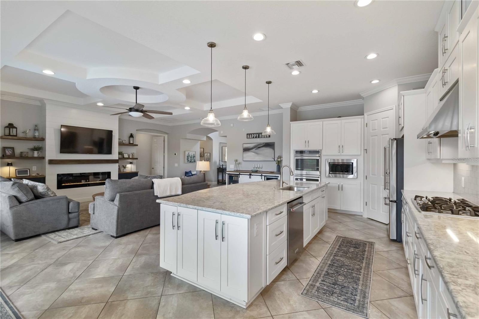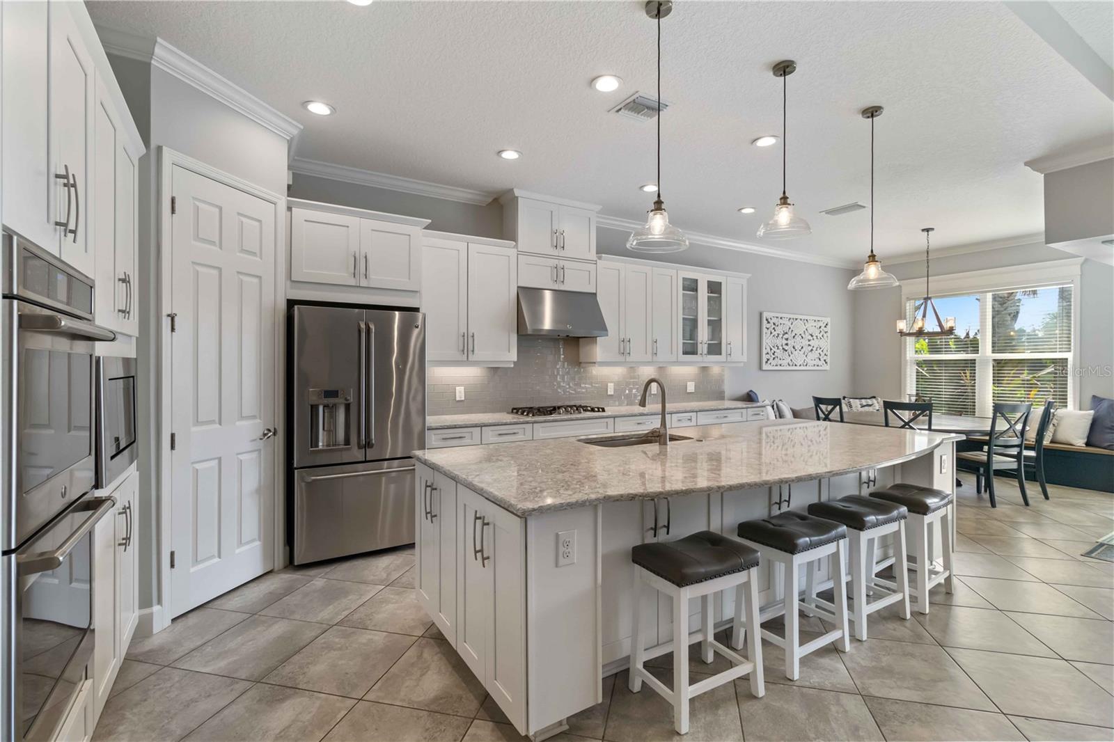 Este modelo Kentwood III raramente disponível localizado no altamente procurado Arbor Lakes of Palmer Ranch possui 4 quartos, além de um escritório/covil, 3,5 banheiros, além de uma sala de bônus/cinema e uma piscina de água salgada aquecida, tornando -o o epítome de mover -se em Ready, combinando elegância moderna com a funcionalidade cotidiana. Portas duplas o levam ao Grand Hallyer com tetos impressionantes de dois andares. The gorgeous gourmet kitchen includes TONS of upgraded 42" white shaker cabinetry with under cabinet lighting, GE Café stainless steel appliances including a built-in double oven, GAS cooktop, stylish glass tile backsplash & walk-in pantry! An expansive kitchen island with double-sided cabinets and quartz counters overlooks the huge living room with stunning coffered ceilings, crown moldings, and a CUSTOM fireplace feature wall with Armazenamento adicional. está localizado no nível principal e inclui uma área de estar com vistas para a piscina, uma parede de sotaques de shiplap, moldagem por coroa, tetos de bandeja, 2 armários de walk-in, um chuveiro de vidro sem moldura com telhas de sotaque e nicho de chuveiro, pias duplas com lençóis e grãos de pó de pó e grãos de pó de pó. Pia de portas de 8 pés. As comunidades mais procuradas em Palmer Ranch com escolas de classificação A, a 13 quilômetros da famosa praia da Siesta, a 1,6 km até a trilha herdada, compras, golfe e jantar nas proximidades. Sidewalks por toda parte e um parque de cães.