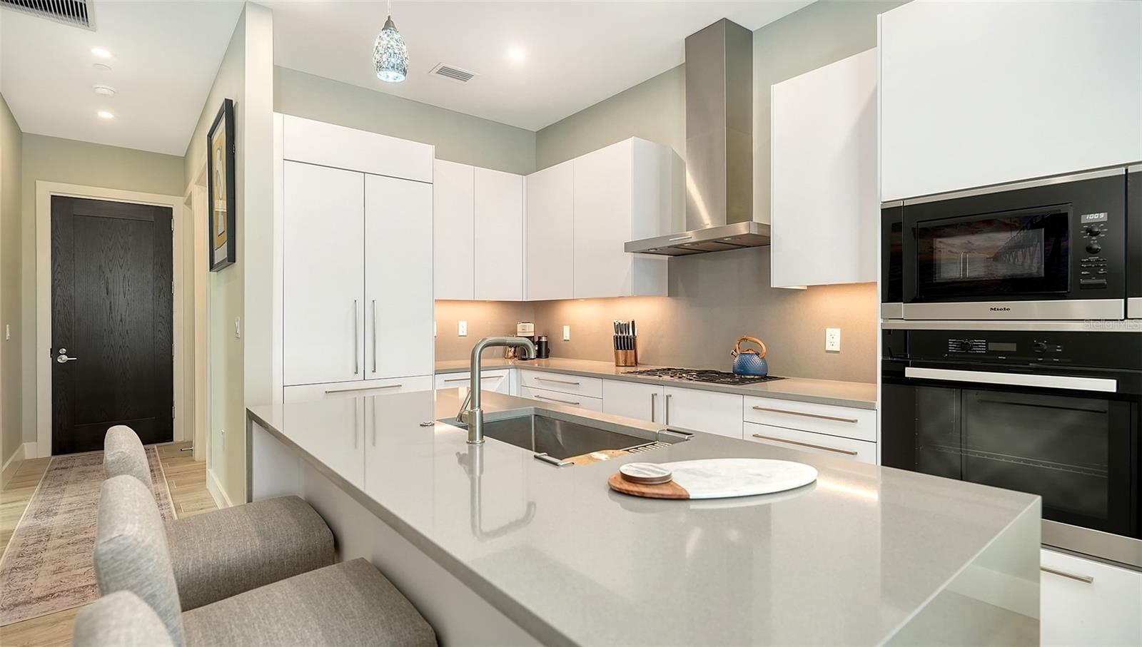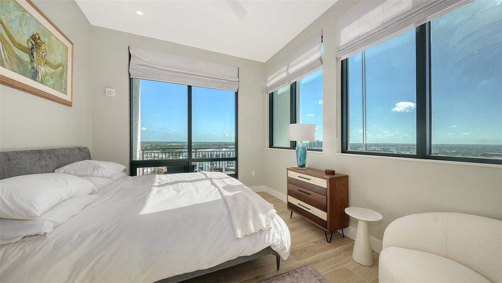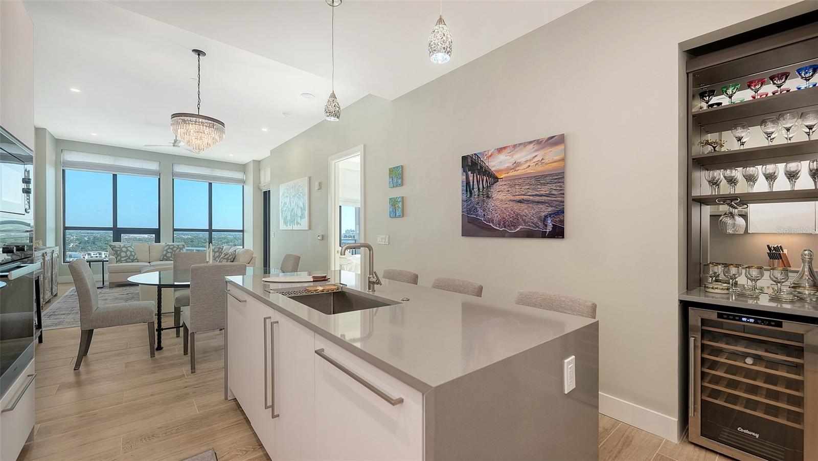 Bem-vindo ao DeMarcay, um condomínio boutique de 18 andares na prestigiada Palm Avenue, no coração do centro de Sarasota. Esta casa de 2 quartos e 2 banheiros com design impecável no 14º andar pode ser mobiliada e pronta para morar, oferecendo uma mistura perfeita de luxo, conforto e conveniência. Entre para ver tetos altos de 3,3 metros, piso de porcelana elegante e janelas amplas que enchem a casa com luz natural e vistas encantadoras da cidade e da baía. A cozinha do chef possui armários italianos personalizados, eletrodomésticos Miele, incluindo fogão a gás, elegantes bancadas de quartzo e uma grande ilha perfeita para cozinhar e se divertir. Os destaques adicionais incluem armários embutidos, tratamentos de janela elegantes, um bar seco com design personalizado e um espaço de armazenamento com temperatura controlada. Relaxe no seu terraço privado e desfrute da abundância de luz natural e das vistas deslumbrantes de Sarasota. As comodidades são encontradas na cobertura do 18º andar e incluem uma piscina de água salgada aquecida e área de varanda, uma cozinha ao ar livre e espaço de entretenimento casual, uma academia e uma sofisticada sala de clube com cozinha de bufê - tudo com vista desobstruída de 360 graus da baía e do horizonte do centro da cidade. A equipe no local está disponível 24 horas por dia, 7 dias por semana, prestando serviços residentes aos proprietários e seus convidados. Este é o melhor da vida no centro da cidade.
