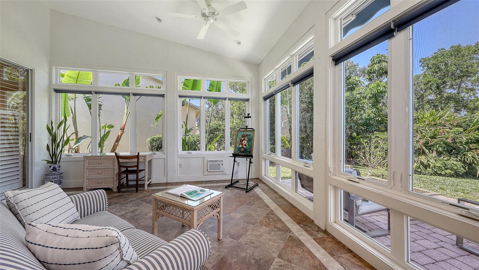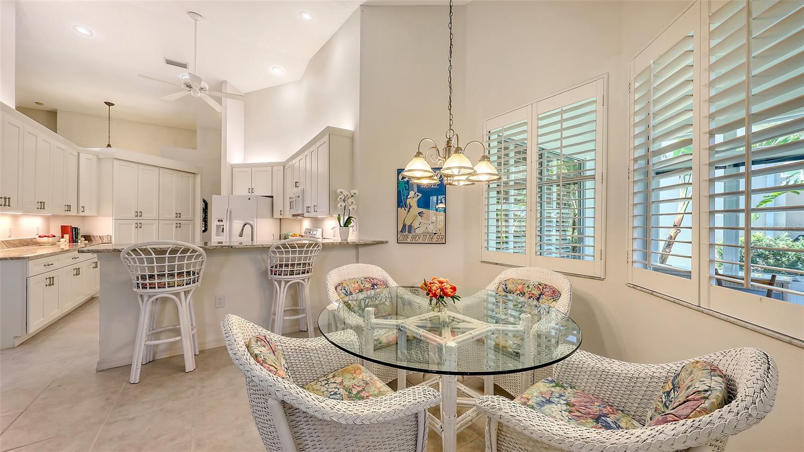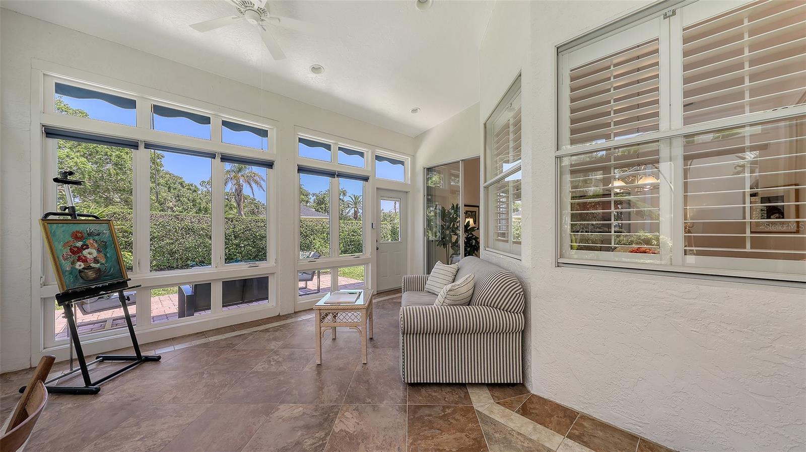 Esta casa brilhante e bonita de 3 quartos, 2 1/2 de banho é excepcionalmente bem conservada, atualizada com bom gosto e móvel (opção do comprador). A área de estar principal de 2187 pés quadrados possui tetos altos e janelas altas por toda parte, e as persianas de plantações filtram a luz do sol em todas as salas. Quando você entra na casa, um grande hall de entrada leva diretamente à sala de estar e de jantar. Esses quartos oferecem um espaço confortável para entretenimento formal, e o teto da catedral faz com que eles se sintam especialmente espaçosos. Na cozinha recentemente renovada, fileiras de armários altos atendem a quase 20 pés lineares de bancadas de granito de grau superior. Abra as portas, puxe as gavetas e as prateleiras nos armários inferiores e imagine como você usará esse grande espaço. A lanchonete adjacente e a sala da família têm uma sensação casual, e ambos os quartos têm vista para o lanai e o quintal privado. O ar condicionado e o ar condicionado oferece 237 pés quadrados adicionais de espaço de vida versátil durante todo o ano - perfeito para um escritório, um estúdio de arte, uma academia ou apenas um espaço para abrir as janelas e trazer o ar livre. Mudando -se para o quarto, a suíte principal inclui um grande banho de palha com pias duplas e um lindo balcão novo. Dois quartos adicionais estão do lado oposto da casa, bem separados da área de estar principal. Um banheiro de hóspedes e meio banho estão próximos. As atualizações significativas para esta casa incluem um telhado mais recente (2020), sistema HVAC (2021), balcões de granito na cozinha e banheiros, aqueles armários de cozinha excepcionais e janelas de Pella na Lanai. Para muitos compradores, o recurso mais atraente é que esta casa não possui uma piscina. Economize a despesa, o tempo e a manutenção e simplesmente atravesse seu quintal privado e através da hedge até o parque adjacente e a piscina comunitária. A associação ao Country Club não está incluída na compra desta casa, mas o Stoneybrook Golf and Country Club é semi-privado e os não membros podem jantar no clube e ter acesso limitado ao golfe. Não perca esta casa - veja hoje!