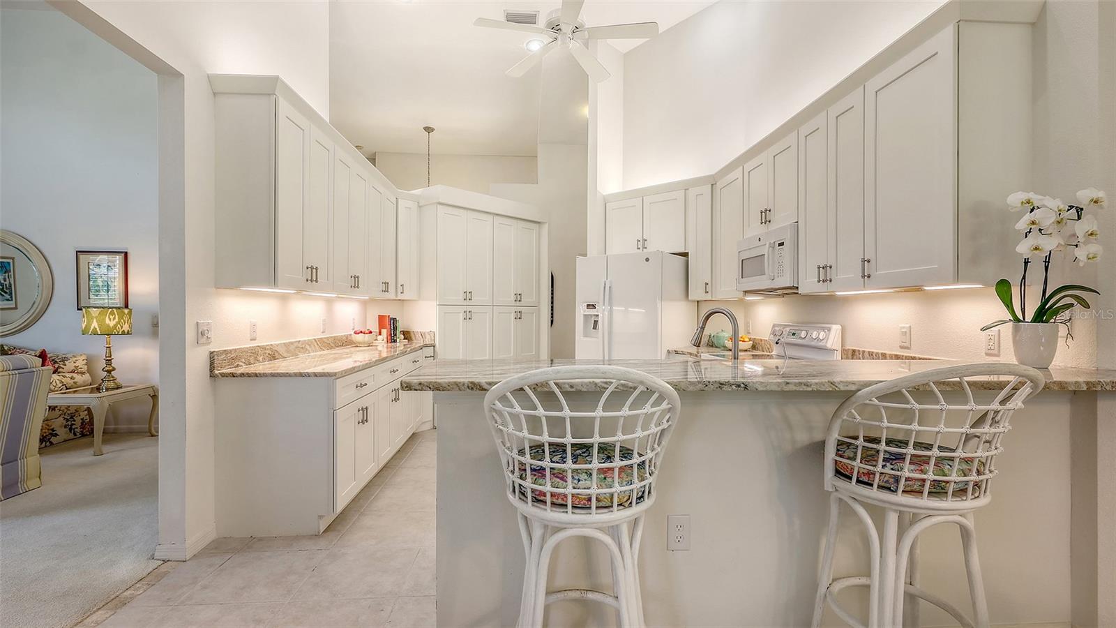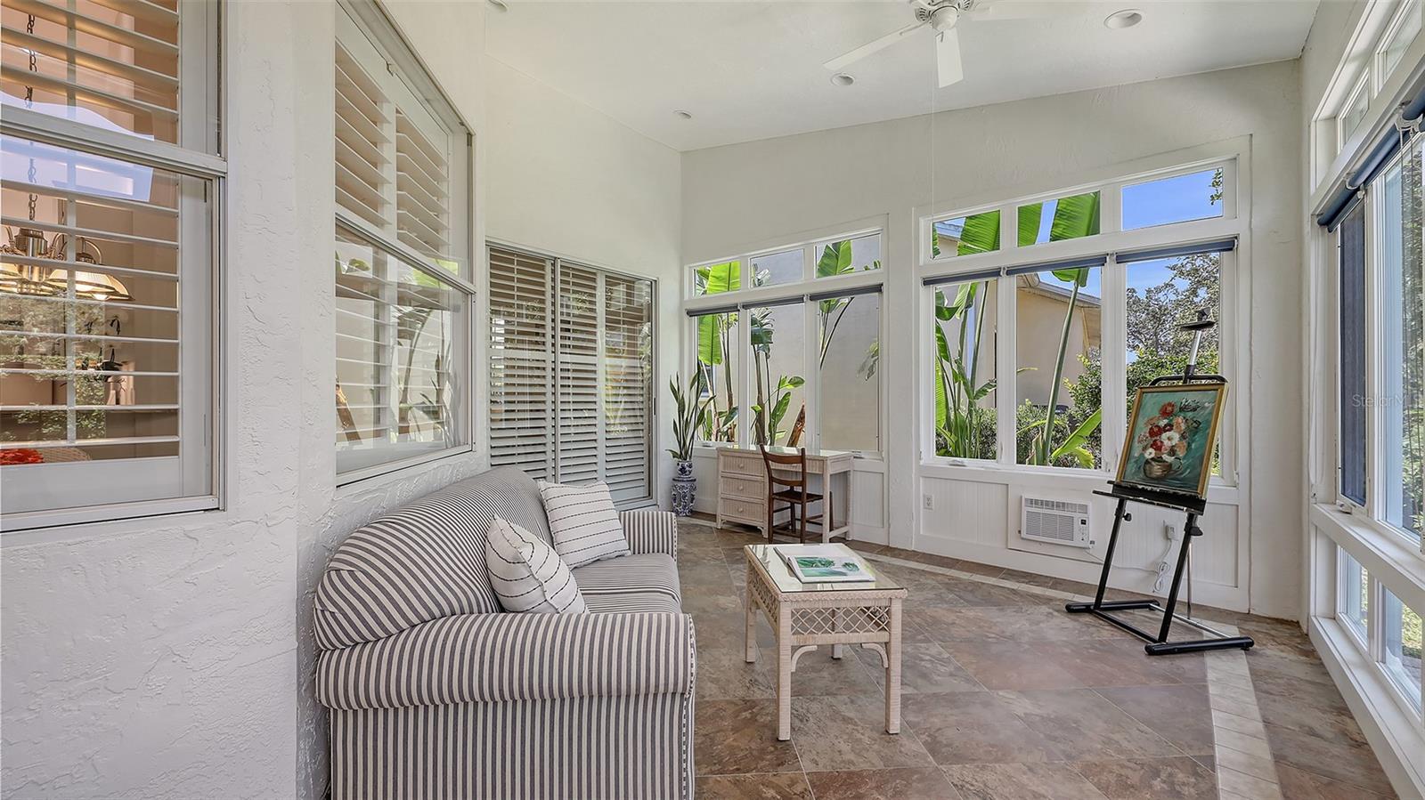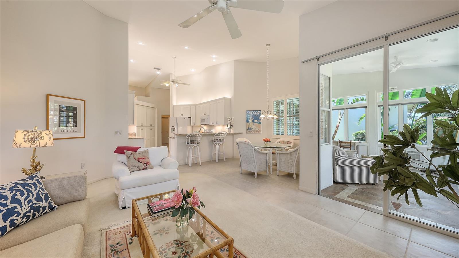 Esta casa brilhante e bonita de 3 quartos, 2 1/2 de banho é excepcionalmente bem conservada, atualizada com bom gosto e móvel (opção do comprador). A área de estar principal de 2187 pés quadrados possui tetos altos e janelas altas por toda parte, e as persianas de plantações filtram a luz do sol em todas as salas. Quando você entra na casa, um grande hall de entrada leva diretamente à sala de estar e de jantar. Esses quartos oferecem um espaço confortável para entretenimento formal, e o teto da catedral faz com que eles se sintam especialmente espaçosos. Na cozinha recentemente renovada, fileiras de armários altos atendem a quase 20 pés lineares de bancadas de granito de grau superior. Abra as portas, puxe as gavetas e as prateleiras nos armários inferiores e imagine como você usará esse grande espaço. A lanchonete adjacente e a sala da família têm uma sensação casual, e ambos os quartos têm vista para o lanai e o quintal privado. O ar condicionado e o ar condicionado oferece 237 pés quadrados adicionais de espaço de vida versátil durante todo o ano - perfeito para um escritório, um estúdio de arte, uma academia ou apenas um espaço para abrir as janelas e trazer o ar livre. Mudando -se para o quarto, a suíte principal inclui um grande banho de palha com pias duplas e um lindo balcão novo. Dois quartos adicionais estão do lado oposto da casa, bem separados da área de estar principal. Um banheiro de hóspedes e meio banho estão próximos. As atualizações significativas para esta casa incluem um telhado mais recente (2020), sistema HVAC (2021), balcões de granito na cozinha e banheiros, aqueles armários de cozinha excepcionais e janelas de Pella na Lanai. Para muitos compradores, o recurso mais atraente é que esta casa não possui uma piscina. Economize a despesa, o tempo e a manutenção e simplesmente atravesse seu quintal privado e através da hedge até o parque adjacente e a piscina comunitária. A associação ao Country Club não está incluída na compra desta casa, mas o Stoneybrook Golf and Country Club é semi-privado e os não membros podem jantar no clube e ter acesso limitado ao golfe. Não perca esta casa - veja hoje!