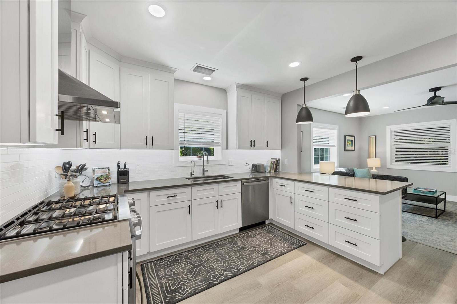 Este bangalô de 2 quartos de 2 banheiros, localizado no histórico Laurel Park, é uma obrigação absoluta. Se você deseja morar em um lugar que exala charme, mas tem as conveniências de um novo lar ... é isso. Os atuais proprietários recriaram o espaço e maximizaram toda a propriedade de fora. A propriedade é cercada para privacidade e para os donos de animais. O jardim abrange toda a propriedade. Desde o minuto em que você entra pelo portão da frente, você se sente em casa. Uma tela encerrada na varanda da frente ... com luzes LED, teto de look de madeira e até um ventilador ... receba você na entrada. A casa tem um conceito muito aberto. A sala de estar tem embutidos personalizados e uma lareira. A cozinha bem pensada tem armários personalizados. Portas de agitador branco e frentes de gaveta, balcões de quartzo, despensa de grandes dimensões, utensílios de aço inoxidável e um balcão de café da manhã são todos separados das atualizações de designers. Uma sala de jantar de grandes dimensões com uma porta francesa para o jardim complementa o espaço. A suíte do proprietário era um grande closet, um banho personalizado ... completo com banheira de imersão, chuveiro separado, pias duplas e vaidades iluminadas. A suíte convidada atualmente sendo usada em um quarto de família possui um escritório aconchegante. Todas as áreas de estar têm planing de vinil de luxo, janelas de impacto com revestimento, rodapés do perfil de shaker, portas de entrada do agitador, novo hardware, iluminação e tinta. A lavanderia tem uma pia e contador de aço inoxidável. Esta casa é projetada classicamente para resistir ao teste do tempo. Os mecânicos foram atualizados, o isolamento foi adicionado e até um gerador foi instalado. O bairro urbano está localizado a poucos minutos do centro de Sarasota, Selby Botanical Gardens, The Bay, Area Beaches, todos os restaurantes da área e o distrito de atuação de Sarasota.