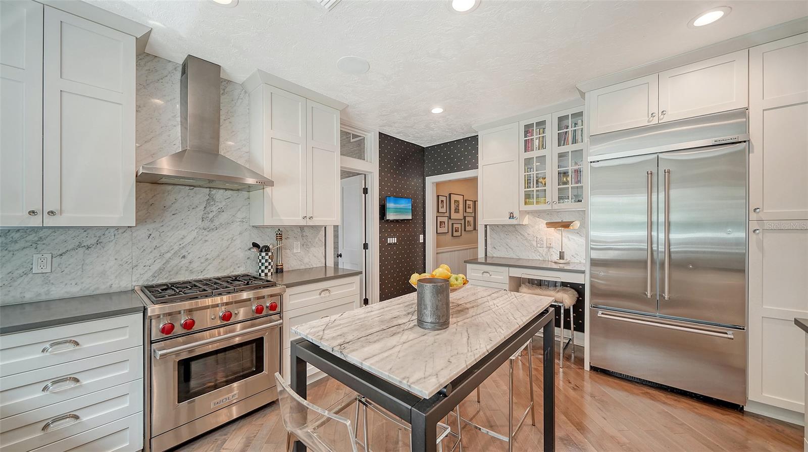 Bem-vindo a esta residência raramente disponível no estilo de Cape Cod, uma casa magistralmente renovada situada em um amplo lote de 20.000 pés quadrados no prestigiado Cherokee Park de Sarasota. Empoleirado a 23 pés acima do nível do mar e aninhado em uma rua arborizada mais ampla e tranquila, com calçadas em um dos bairros mais cobiçados da região no distrito escolar de Southside da área. Este lar de 4 quartos e 3 e 2 banheiros combina um charme atemporal com atualizações luxuosas e com curação de grife. Combinando durabilidade e sofisticação, a casa possui todas as janelas e portas de impacto, novo tapume de placa resistente e telhado de cedro e apresenta acabamentos sofisticados ao longo de cuidadosamente modernizados pelo designer Chelsea Dunbar, da Blu Interiores, onde todos os detalhes foram considerados. As portas da frente de furo duplas personalizadas e artesanais, incrustadas de vidro, recebem você ao interior quente e convidativo que mostra pisos de madeira originais na casa principal, ladrilhos de porcelana italiana na casa de hóspedes, tetos altos de 10 pés na sala de estar e iluminação de designers de Arteriors, Eichholtz e Kelly Wearstler. O coração da casa é a cozinha vestida de quartzo, equipada com uma gama de gás natural de lobo, geladeira de porta francesa KitchenAid e amplo espaço de despensa-ideal para a vida diária ou entretenimento. Ancorada por uma lareira a lenha, as principais áreas de estar e jantar fluem perfeitamente para o ar livre, onde um gramado exuberante e de baixa manutenção, o pátio de ardósia Bluestone da Pensilvânia e o amplo deck de teca brasileiro de embrulho. A serena suíte primária possui três lindos armários de design personalizado e um banheiro parecido com um spa com acabamentos em mármore e um chuveiro com entradas zero com sprays corporais. Em toda a casa, o papel de parede personalizado de Phillip Jeffries, Scalamandré e élite adiciona camadas de sofisticação e estilo. As atualizações pensativas adicionais incluem: sistema de som surround, seis zonas climáticas, um sistema de segurança e três áreas de lavanderia. As comodidades do estilo de resort da propriedade continuam com uma grande piscina de 9 'emoldurada por lanternas de gás de bevolo clássicas e uma impressionante casa de hóspedes de luxo construída em 2016. Este espaço lindamente projetado inclui uma área de entretenimento com embutidos personalizados, incluindo bares completos, lavador de louça, gavetas de refrigerador e scotman e gorda, a suíte privada. A cozinha ao ar livre totalmente equipada inclui uma churrasqueira de lince de gás natural, um ovo verde extra grande, balcões generosos de preparação de quartzitos e gazebo coberto-tornando-o o cenário perfeito para refeições e entretenimento ao ar livre. A conclusão da propriedade totalmente cercada é uma garagem destacada de 2,5 carros, proporcionando amplo armazenamento e conveniência. Nenhum seguro de inundação é necessário, graças à elevação da casa a 23 pés acima do nível do mar. Faça uma curta caminhada ou carrinho de golfe até a altamente desejável Southside Village-uma das mais procuradas centros da cidade de Sarasota, conhecidos por sua atmosfera encantadora e acessível e energia vibrante. Esta área principal combina o charme histórico com a conveniência moderna. Desfrute de ruas arborizadas, um verdadeiro senso de comunidade e proximidade do mercado gourmet de Morton, lojas de boutiques, cafés de calçada e restaurantes locais com melhor classificação. Não perca esta extraordinária oportunidade de possuir uma propriedade herdada em um dos bairros mais amados de Sarasota a poucos minutos da praia de Siesta, de renome mundial, no centro de Sarasota e nos locais culturais-esta é a Costa do Golfo que vive no seu melhor.