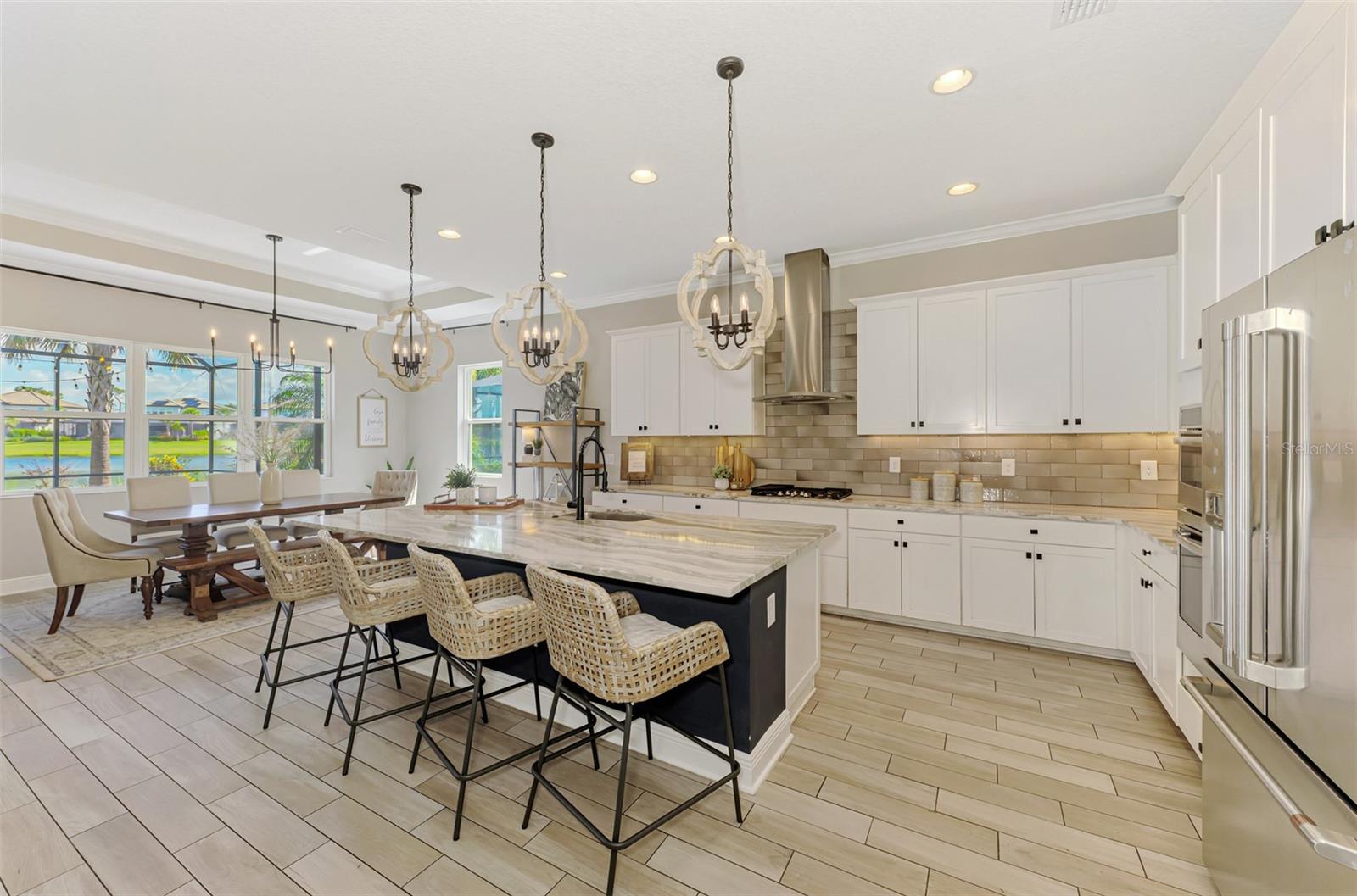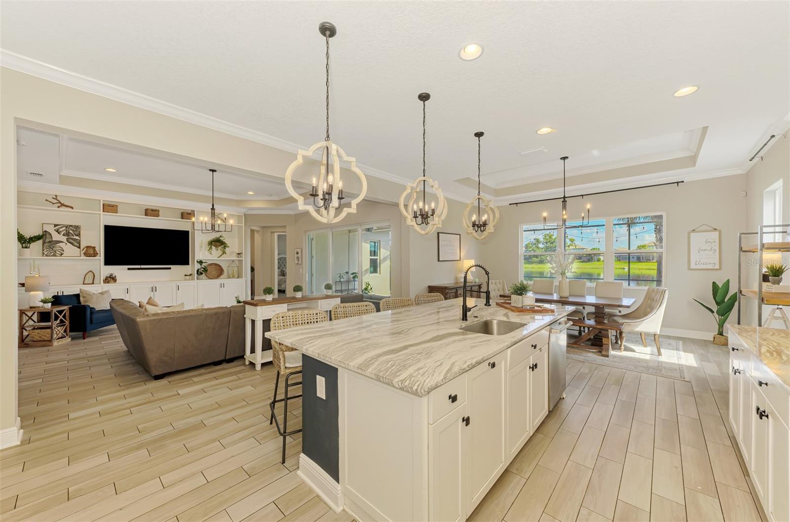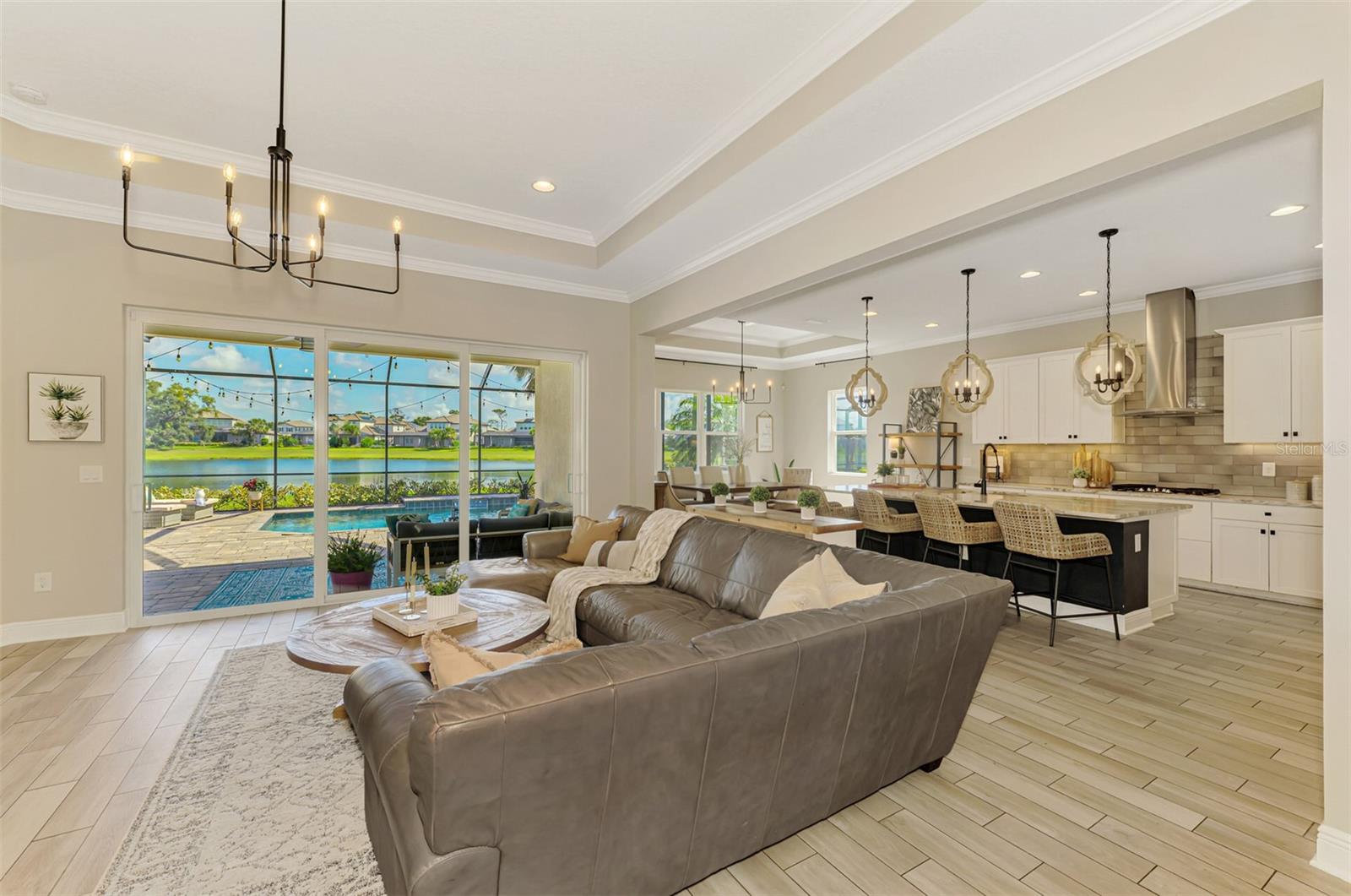**As vendas recentes no bairro sustentam o valor desta casa, e o novo preço de tabela melhorado foi estrategicamente posicionado logo abaixo do último fechamento comparável para garantir forte competitividade e confiança na avaliação. Oportunidade FANTÁSTICA em um bairro LINDO! AGENDE JÁ SUA MOSTRA!** Bem-vindo a esta deslumbrante casa de dois andares no luxuoso condomínio fechado de Rivo Lakes. Esta residência lindamente conservada de 5 quartos e 3,5 banheiros oferece uma garagem para três carros (layout dividido com uma vaga à esquerda e duas na frente), paisagismo tropical exuberante e convidativas varandas cobertas na frente e nos fundos. Portas de entrada duplas criam uma grande primeira impressão com uma linha de visão direta através da casa até a piscina protegida e o lago tranquilo além. No interior, um dramático hall de entrada de dois andares e uma ampla escadaria dão o tom. A elegante sala de estar apresenta sancas decorativas, armários embutidos personalizados e três grandes controles deslizantes que se abrem para o pátio coberto, piscina e vistas serenas do mar. A ampla cozinha do chef inclui uma grande ilha para refeições, abundantes armários neutros, eletrodomésticos de aço inoxidável, bancadas de quartzo e um backsplash de designer. A área de jantar adjacente oferece janelas grandes e espaço generoso, ideal para entretenimento. A suíte principal do andar principal é um retiro privado com tetos altos, um luxuoso banheiro de cinco peças com box amplo, banheira de imersão, pia dupla e closet personalizado com embutidos. Também no andar principal - logo na entrada - há um quarto, banheiro completo, escritório/escritório e uma conveniente mini-kitchenette, perfeita para residências multigeracionais, quartos de hóspedes ou um espaço de trabalho dedicado. No andar de cima, um loft espaçoso com portas de celeiro tem vista para o lago e funciona como uma sala bônus flexível - ideal para um quarto, sala de mídia ou espaço de recreação. Dois quartos grandes adicionais e um banheiro completo com pias duplas completam o nível superior. A vida ao ar livre brilha com uma varanda privativa com tela, piscina em estilo resort com cascata, deck de recreação e um pátio pavimentado de frente para o lago - oferecendo belas vistas do pôr do sol. Recursos adicionais: • Telhado de telha e exterior de estuque • Janelas de impacto de furacão (Perf Grade PG LC-PG50, Míssil Nível D), portas e portões de garagem • Calçada com pavimentação decorativa • Paisagismo tropical mantido profissionalmente • Pintura interna fresca e piso de cerâmica de fácil manutenção por toda parte Destaques da comunidade: Rivo Lakes é um condomínio fechado de conservação conhecido por casas luxuosas e com baixo consumo de energia cercadas pela natureza. Desfrute de espaços verdes abertos, trilhas para caminhada e um lago central. Convenientemente localizado a apenas 15 minutos de Siesta Key Beach e perto do Myakka State Park, Twin Lakes Park, St. Armands Circle e escolas de primeira linha, incluindo o novo Skye Ranch K-8 (2025).