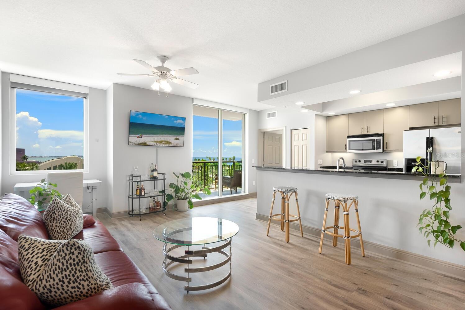 Experimente o pôr do sol encantador da noite do conforto do seu condomínio voltado para o oeste. Esta impressionante residência de 1 quarto e 1,5 banheiro oferece uma mistura perfeita de paz, serenidade e calor. O conceito aberto possui uma cozinha contemporânea com bancadas requintadas de granito, uma barra abaixada para refeições casuais, utensílios de aço inoxidável e amplo espaço no gabinete. Retire para a suíte primária de tamanho generoso, com dois armários de walk-in, um banho de suíte em forma de spa, completo com banheira de imersão e chuveiro fechado de vidro separado. Piso de vinil elegante por toda parte e conveniente lavabo para os hóspedes. Localizado no prestigiado Alinari, esta comunidade que aceita animais de estimação oferece uma impressionante variedade de comodidades no estilo resort. Serviço de concierge de 24 horas, piscina e spa e áreas de churrasqueira no estilo resort. Um centro de fitness de última geração com saunas, sala de teatro/mídia, biblioteca e sala de bilhar. Uma adega, sala de conferências, centro de negócios e sala de clube/lounge social com cozinha de catering. Suites de hóspedes, armazenamento de bicicletas, armazenamento controlado pelo clima, estacionamento coberto equipado com estações de carregamento de veículos elétricos e gerenciamento no local completam as ofertas. A passo de Rosemary District e perto do Beautiful Bay Park e do Van Wezel Performing Arts Hall, você gostará de estar perto dos melhores restaurantes do centro da cidade, compras boutique, galerias de arte e atrações culturais. Bem -vindo à sua casa Sarasota !!!