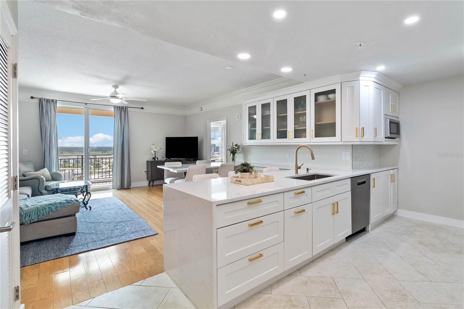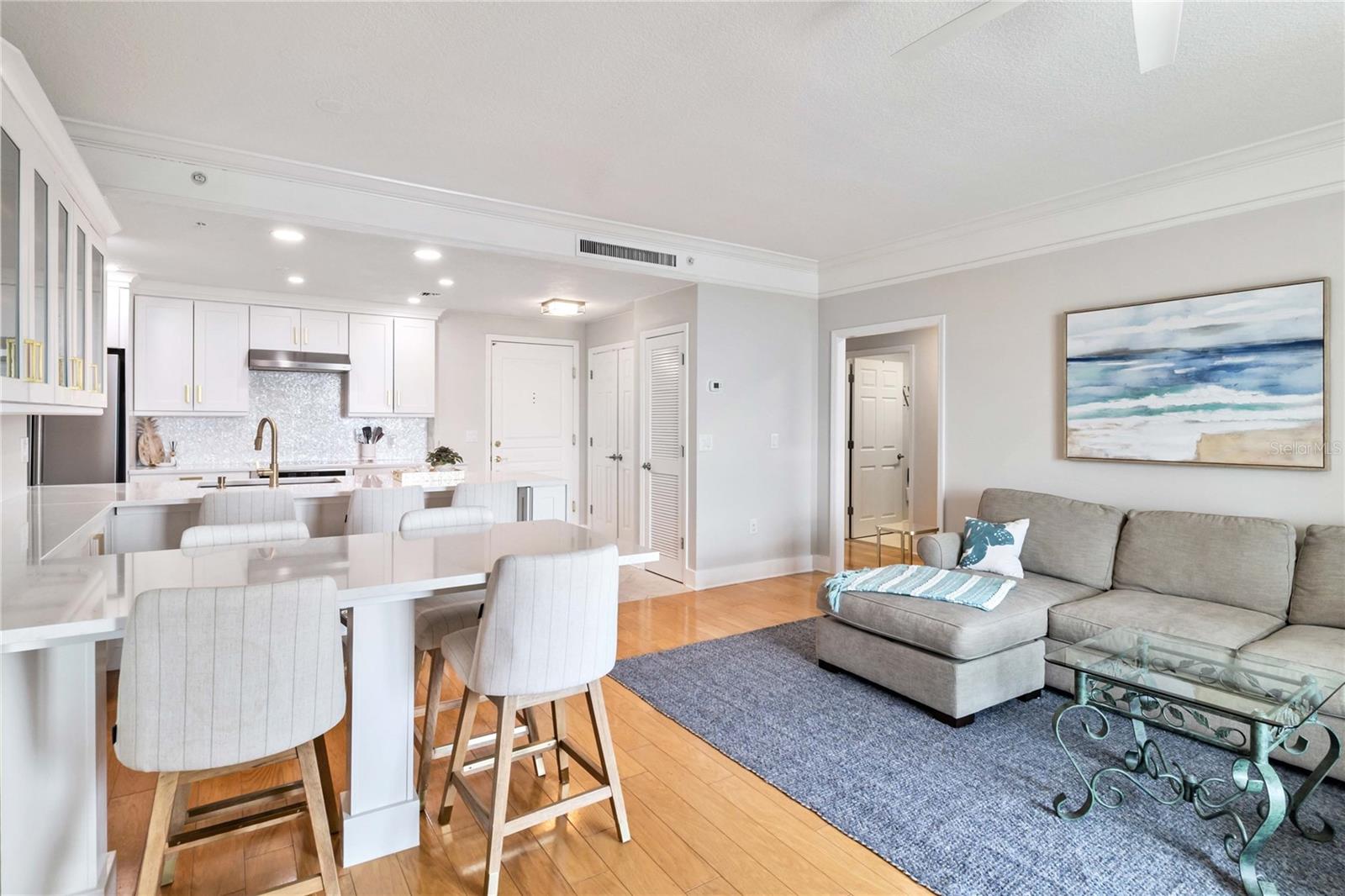 Requintadamente remodelado 2 quartos/2bath unidade com vistas para sempre a leste. O Renascimento, um dos arranha-céus originais do centro de Sarasota. A unidade possui pisos de madeira limpa e brilhantes por toda parte, com ladrilhos em cozinha/banheiros e armários duplos no quarto principal. A cozinha do chef bem projetada possui abundantes armários de armazenamento, ilha central grande e barra de jantar embutida com armazenamento adicional. Ambos os banheiros foram completamente atualizados e o banho principal tem um chuveiro chique e o armário de linho embutido para todas as suas necessidades. Ambos os quartos são espaçosos e bem projetados. Esta planta de piso aberto permite vistas para o ar livre e a varanda é um bônus para o café da manhã ou um coquetel noturno. Do outro lado da rua fica o Bay Park (oferecendo ioga gratuita, entretenimento ao vivo semanal, filmes e muito mais), o Van Wezel Performing Arts Center e o Memorial Auditorium. A uma curta caminhada, está o Publix, o Salon de Bele -Dental, o Whole Foods, a Opera, 2 teatros ao vivo, muitos restaurantes e compras! 10 minutos de carro até a praia! There are many amenities included in your maintenance fee: 24/7 security, 2 Guest Suites, Pool and Spa, Fitness Center, Aerobics Room, Massage Rooms (bring in your own masseuse), Media Center, Hot rock sauna in bathrooms in lobby, Separate Sitting Room, Conference Room, Business center (includes share computer, printer, fax), Wi-Fi throughout entire first floor lobby, Basic Cable, Club Room with TV and Fireplace with separate seating, Catering Cozinha, Grill externa (compartilhe grelhar com mesas), sala de bicicleta, compartilhe biblioteca. São incluídas água, esgoto, lixo e cabo/internet fronteira. Para contratar também, consulte MLS A4657937.