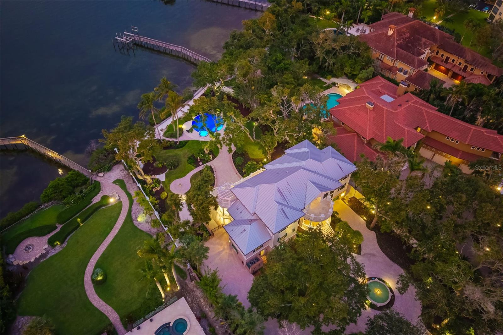 Uma propriedade privada em Siesta Key. Atrás de um portão privado e um perímetro murado em um dos maiores lotes residenciais de Siesta Key, esta majestosa propriedade à beira-mar oferece uma rara oportunidade de possuir uma propriedade geracional de caráter, escala e serenidade marcantes. Situada em 1,6 hectares paisagísticos exuberantes com 132 pés de frente direta para Little Sarasota Bay, a residência é apresentada por uma longa e sinuosa estrada de pavimentação, emoldurada por carvalhos maduros e um lago tranquilo com fonte - uma abordagem cinematográfica que dá o tom para o que está por vir. Projetada para quem valoriza a privacidade sem concessões, a propriedade oferece uma mistura perfeita de arquitetura atemporal, ampla vida ao ar livre e acesso exclusivo à baía e à praia. Além de sua presença imponente à beira-mar, a propriedade inclui acesso privado à praia do Golfo do outro lado do caminho - uma comodidade extremamente rara para viver à beira-mar em Siesta Key. Construída sob medida em 2002 e cercada por terraços de vários níveis, a residência de 5.727 pés quadrados captura vistas deslumbrantes do leste da Intracoastal Waterway de quase todos os cômodos principais. Um dramático hall de entrada de dois andares se abre para a grande sala de estar, onde tetos de 6 metros, conjuntos triplos de portas francesas e uma lareira a gás esculpida emolduram a água além. A sala de jantar formal apresenta um lustre de cristal, medalhão de teto intrincado e lambris personalizados – ideal para reuniões elegantes. A cozinha recém-atualizada possui armários de 42 polegadas, bancadas de mármore Carrara, fogão profissional a gás Wolf, geladeira Sub-Zero, ilha central e uma despensa grande. Abre naturalmente para as salas de pequeno-almoço e familiares, todas com acesso direto ao terraço e vista para a baía. A biblioteca ricamente revestida em cerejeira oferece um belo retiro, completo com lareira, embutidos e teto de zinco, além de acesso ao terraço. A suíte principal do segundo andar é um refúgio luxuoso com terraço privativo à beira-mar, teto de 13 pés, área de estar com lareira, closet duplo personalizado e banheiro revestido de mármore com banheira de imersão, pia dupla e chuveiro walk-in. Três quartos adicionais com banheiro privativo – incluindo um no nível principal – oferecem acomodações confortáveis para hóspedes ou residências multigeracionais. Uma piscina aquecida de água salgada de borda infinita com spa transbordante ancora os espaços ao ar livre, aprimorados por paisagismo tropical, iluminação paisagística e um pátio coberto ideal para refeições ao ar livre. Os colecionadores de carros apreciarão o espaço de garagem para mais de 10 veículos abaixo do nível principal, com entrada lateral dupla, acesso por elevador e armazenamento climatizado. Os recursos adicionais incluem uma estufa, sistema de extinção de incêndios em toda a casa, gás natural, venezianas e telas de impacto e irrigação por meio de poço privado. A poucos minutos de Siesta Key Village e do centro de Sarasota, esta propriedade oferece uma combinação incomparável de privacidade, beleza e potencial legado em uma das comunidades costeiras desejadas da Flórida.