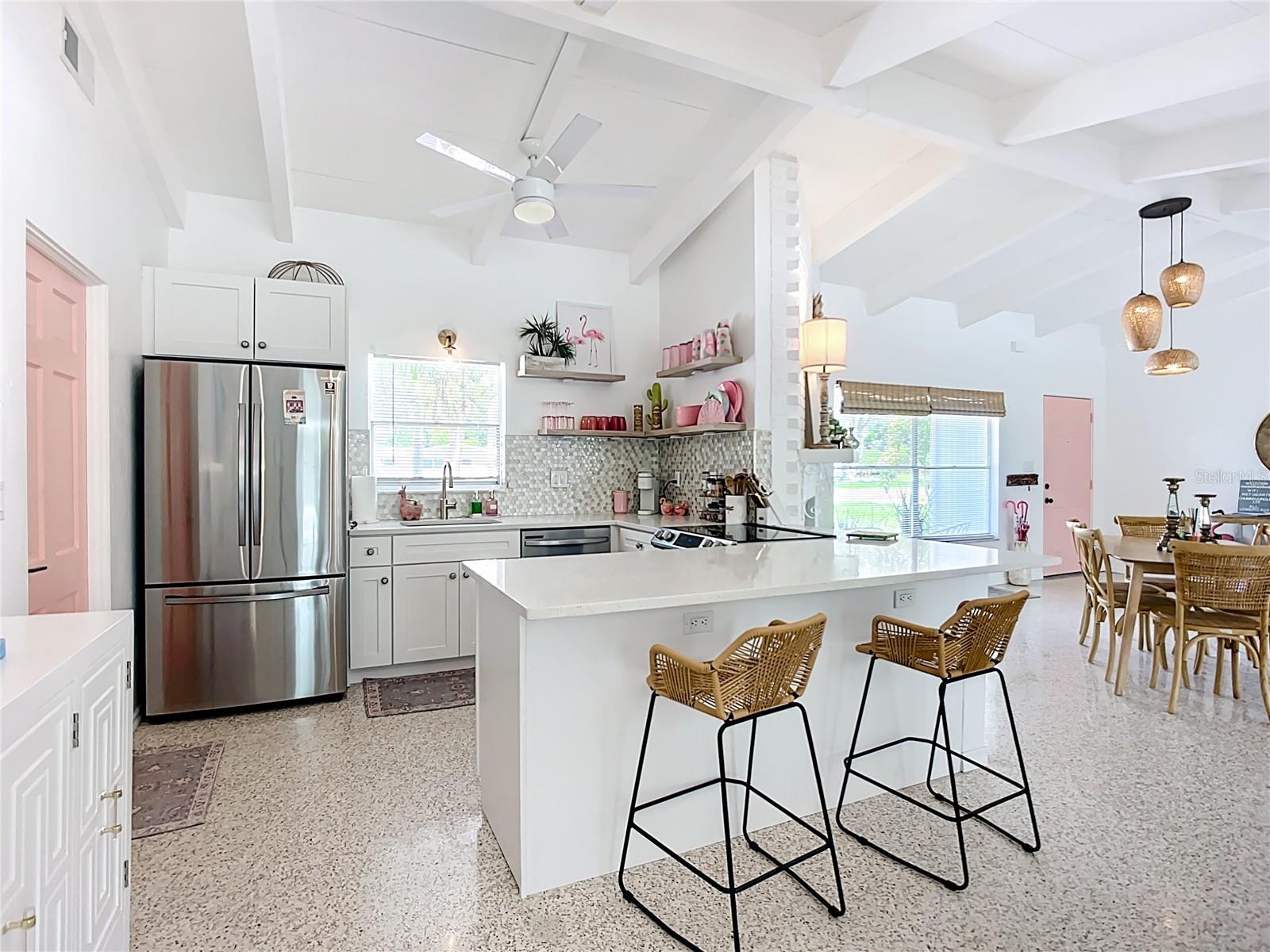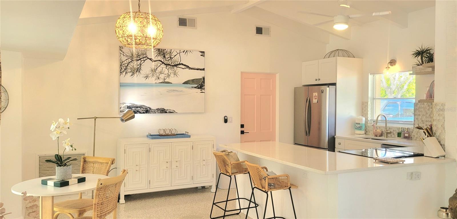 Impressionante retiro moderno de meados do século em Sarasota, Flórida Aproveite esta oportunidade única de possuir um pedaço da vida procurada de Sarasota com esta propriedade versátil que promete um retiro sereno e retornos lucrativos como uma propriedade de investimento (70K 2024) Com reservas futuras em vigor, vendido mobiliado pronto para uso!. Experimente a combinação perfeita de design atemporal e luxo moderno nesta casa moderna de meados do século totalmente renovada. Tetos abobadados e pisos de cerâmica lindamente reformados criam uma sensação aberta e arejada em todos os espaços de convivência. A cozinha e os banheiros de design totalmente novo apresentam acabamentos de alta qualidade e estilo contemporâneo, oferecendo conforto e sofisticação. Saia para o seu próprio paraíso tropical, completo com novo paisagismo exuberante, iluminação, irrigação e uma enorme piscina aquecida de água salgada - perfeita para relaxar ou se divertir. Localizada em uma das áreas mais desejáveis de Sarasota, esta casa incorpora o que há de melhor na Flórida. Para residentes ativos, a conhecida trilha Legacy para ciclismo, corrida e caminhada fica a poucos quarteirões de distância, levando você para o centro de Sarasota, ao norte e ao sul, até o centro de Veneza! Sarasota, conhecida por sua riqueza cultural e praias imaculadas, nas proximidades, a icônica Siesta Key Beach possui areias brancas e águas azul-turquesa. Explore o fascínio artístico do Museu Ringling ou aventure-se no exuberante Jardim Botânico Marie Selby. O vibrante centro de Sarasota, com restaurantes ecléticos de primeira classe, lojas e vida noturna, fica a poucos minutos de distância. Os pitorescos pores do sol e os parques à beira-mar da cidade prometem um estilo de vida excepcional para residentes e turistas. Novo encanamento de PVC, painel elétrico, paisagismo, irrigação, iluminação, piscina aquecida de água salgada de grandes dimensões, controles deslizantes de impacto - 2022 . Telhado novo, aquecedor de água - 2023 Nenhum dano de furacão ou inundação!