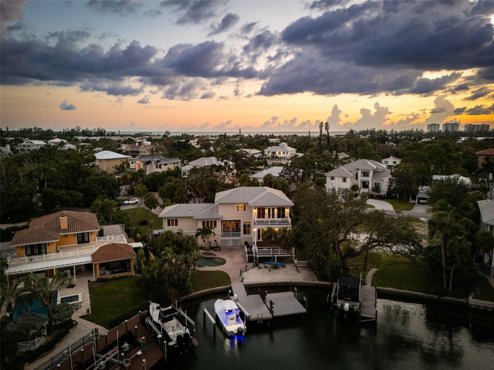 Uma ou mais fotos foram virtualmente encenadas. Orla excepcional - North Siesta Key's Bay Island Boater's Dream - Experimente o melhor da vida costeira nesta elegante residência 4bd/4ba - a poucos minutos da Intracoastal Waterway. A casa possui uma doca/elevador de 14.000 lb de 2023 com amarração elétrica e 3pnt. Entre em um acolhedor hall de entrada de azulejos de ardósia para descobrir um design de qualidade atemporal com piso de madeira Ipê brasileiro por toda parte, janelas resistentes a furacões, portas francesas e tetos volumosos. No coração da casa há uma verdadeira cozinha com fogão a gás Wolff, geladeira embutida de aço inoxidável Sub-Zero, máquina de lavar louça Fisher Paykel e bancadas de pedra-sabão. Uma verdadeira despensa do Chef, abundantes armários e bar completo com refrigeração de vinhos elevam a experiência de entretenimento. A Suíte Principal, situada em sua própria ala privativa, oferece um retiro tranquilo com portas francesas que se abrem para um deck privativo completo, perfeito para desfrutar do nascer do sol e do café; generoso espaço no armário e banheira inspirada em spa; Hóspedes A ala privada e outros quartos oferecem flexibilidade; Portas francesas, persianas automatizadas e detalhes arquitetônicos criam uma atmosfera refinada e confortável. Uma lavanderia completa com pia, escritório e mudroom estão convenientemente localizadas fora da garagem para 3 carros. Ao ar livre, desfrute de vários decks cobertos, um com lareira a gás para um ambiente noturno perfeito à beira-mar; com vista para piscina/spa aquecida de água salgada; paisagem tropical exuberante; Minutos para o centro de Sarasota.