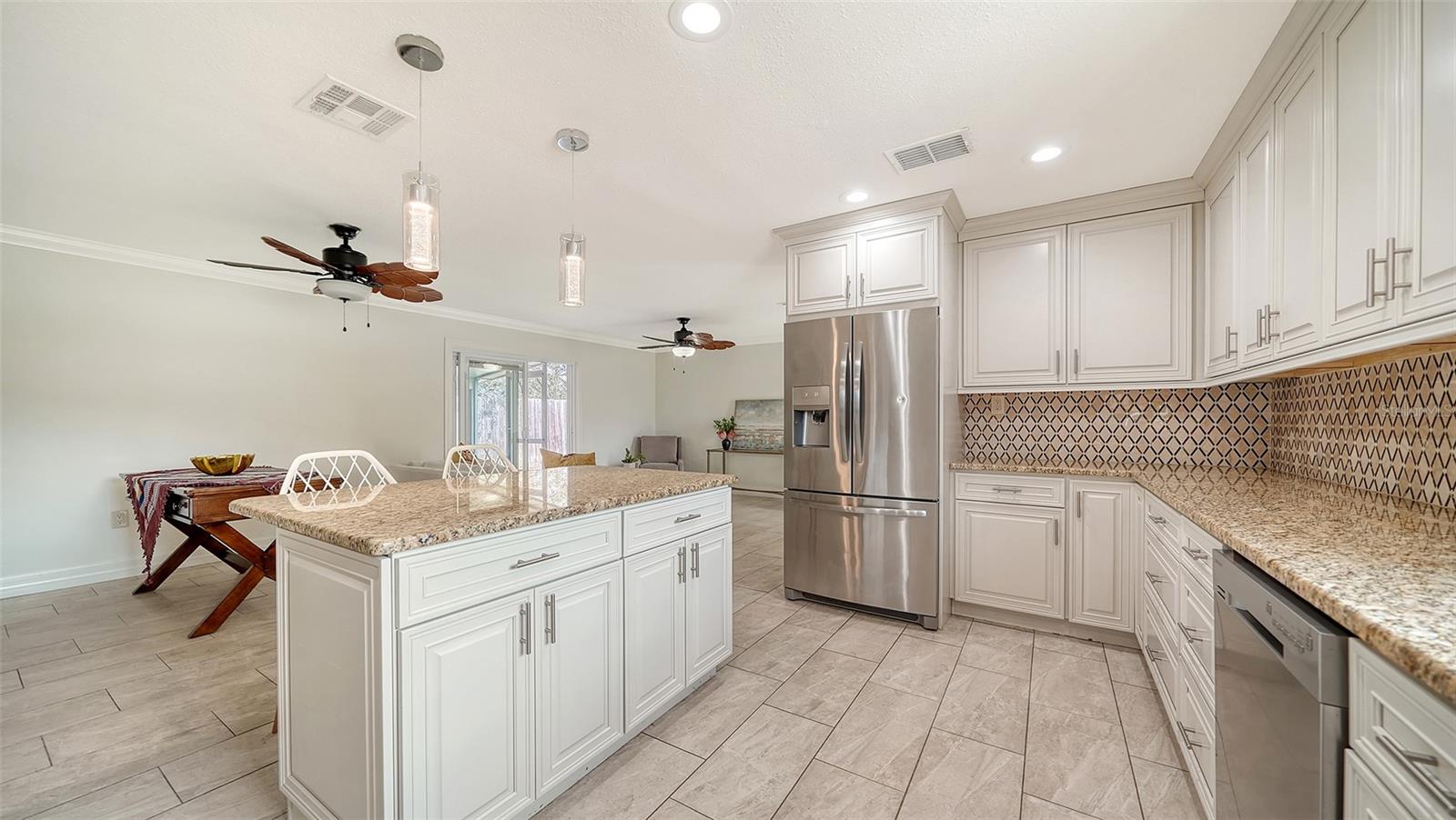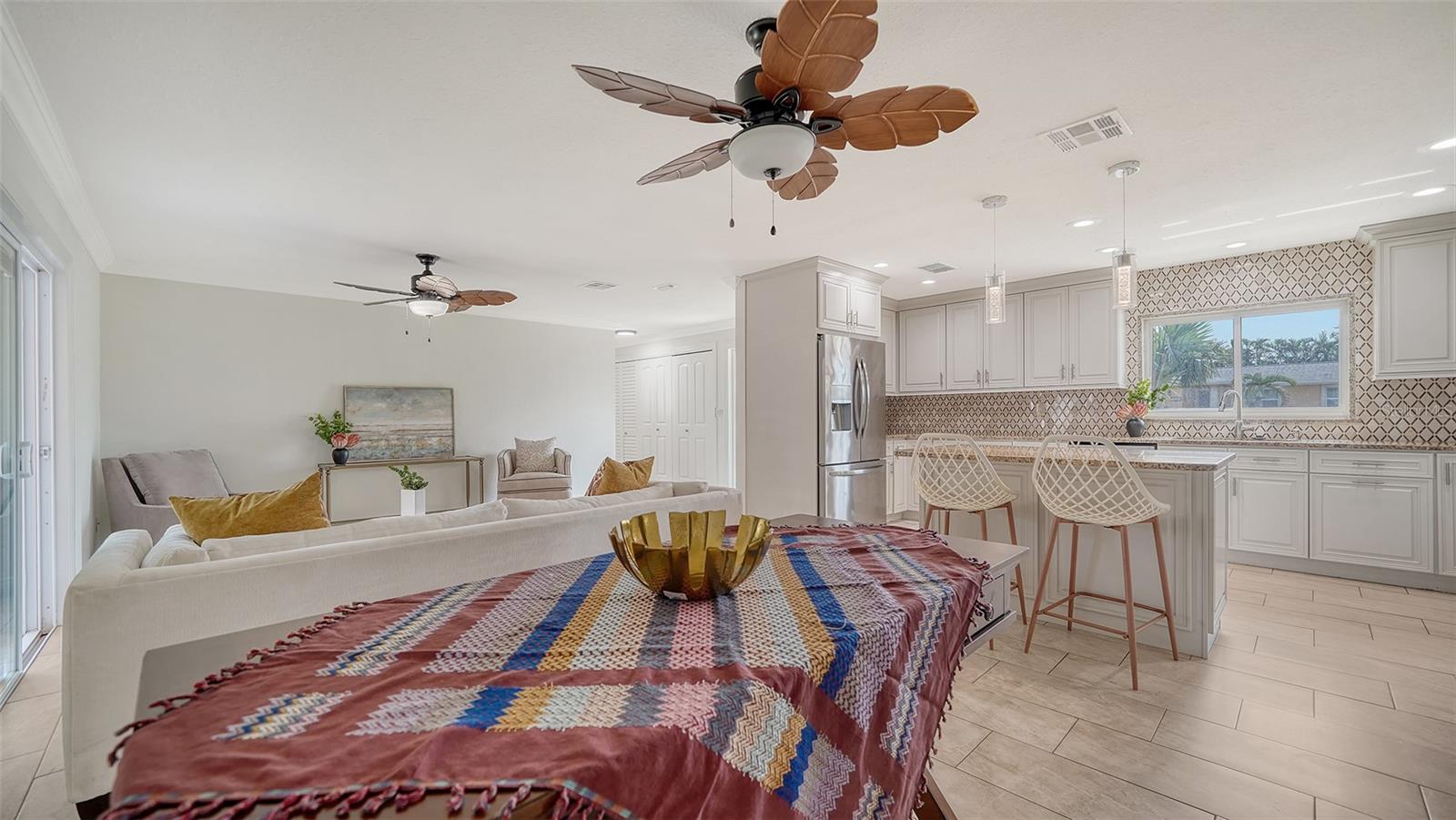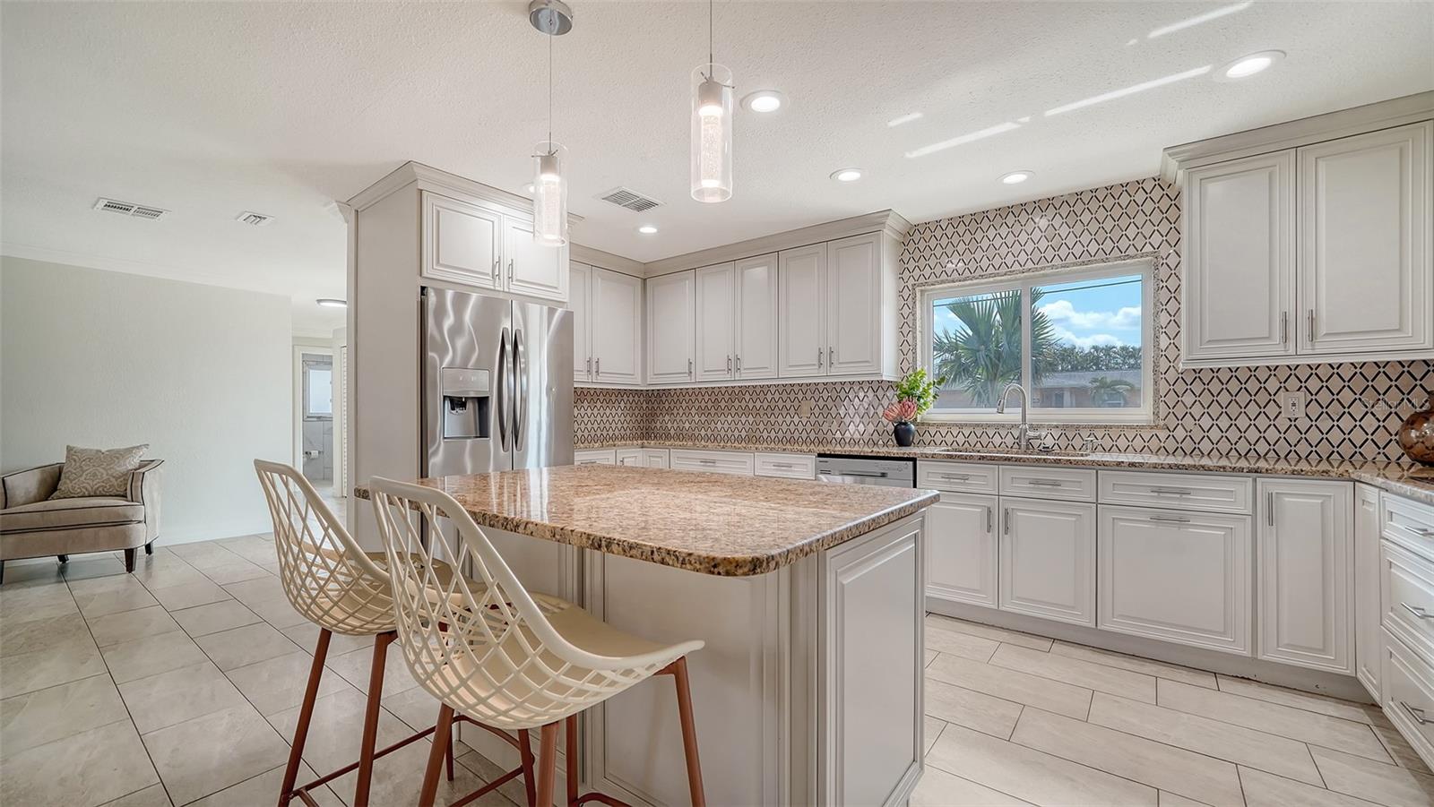 Esta residência rejuvenescida fica em um acre no coração de Southgate, uma comunidade preciosa procurada pelas famílias para seu sistema escolar mais bem classificado. Os jovens profissionais apreciam a proximidade ideal das artes e locais culturais do centro de Sarasota, praias premiadas, toneladas de atividades recreativas e uma grande variedade de experiências de compras e refeições. Com 1.608 pés quadrados de abertura, esta casa recentemente atualizada e atualizada possui 3 quartos e 3 banheiros. Os interiores casualmente confortáveis oferecem uma agradável paleta neutra de beges e cremes que o cercam em uma suavidade silenciosa para uma vida fácil da Flórida. A luz natural permeia esta casa de um nível com eficiência, iluminando suas conveniências modernas e apelo visual. Adjacente à área de estar e jantar, a cozinha bem planejada é destacada por ilha com tampa de granito, armários de madeira, incríveis backsplash, fogão de superfície lisa e eletrodomésticos inoxidáveis, incluindo uma geladeira lado a lado, um microondas embutido e um forno, uma lavagem de louça, pia dupla e exaustor. Os banhos parecem luxuosos com paredes totalmente azulejos que combinam com os pisos, vaidades com bancadas em granito e ricos armários de madeira. Os três quartos de tamanho bom estão equipados com banheiros privativos e armários. Os controles deslizantes de vidro se abrem para uma varanda coberta de tela que é aconchegante e relaxante, com uma mesa de incêndio moderna, adicionando um brilho às noites mais frias e iluminadas. O pátio cercado oferece um grande galpão de trabalho, área de recreação com o conjunto de swing para os pequenos, ampla área para churrascos com familiares e amigos, ou um local de lazer para relaxar e aproveitar os momentos mais simples da vida. Tudo em toda a casa é novo, incluindo ventiladores de teto, utensílios e acabamentos, painéis solares para eficiência energética, aquecedor de água de alto volume (2021), utensílios de cozinha (2019) e telhado, A/C, janelas e pisos de azulejos (2018). O ambiente recém-criado de calor e estilo foi feito com perfeição e o receberá em casa com graciosidade. Reserve um tempo para explorar as muitas comodidades em 3085 Goldenrod. As casas nesta vizinhança estão em alta demanda e geralmente são vendidas rapidamente. Não perca esta oportunidade de torná -lo seu. Pode muito bem se tornar o seu lugar ideal nos próximos anos!