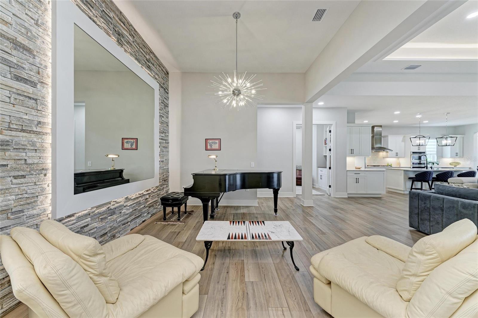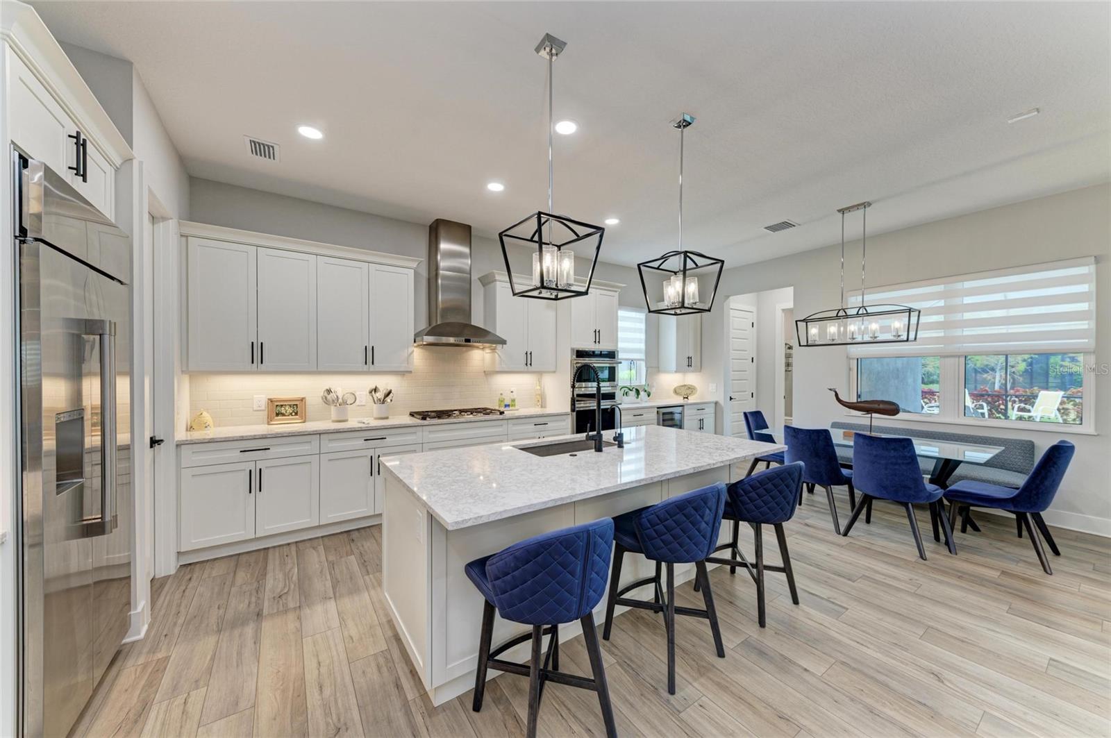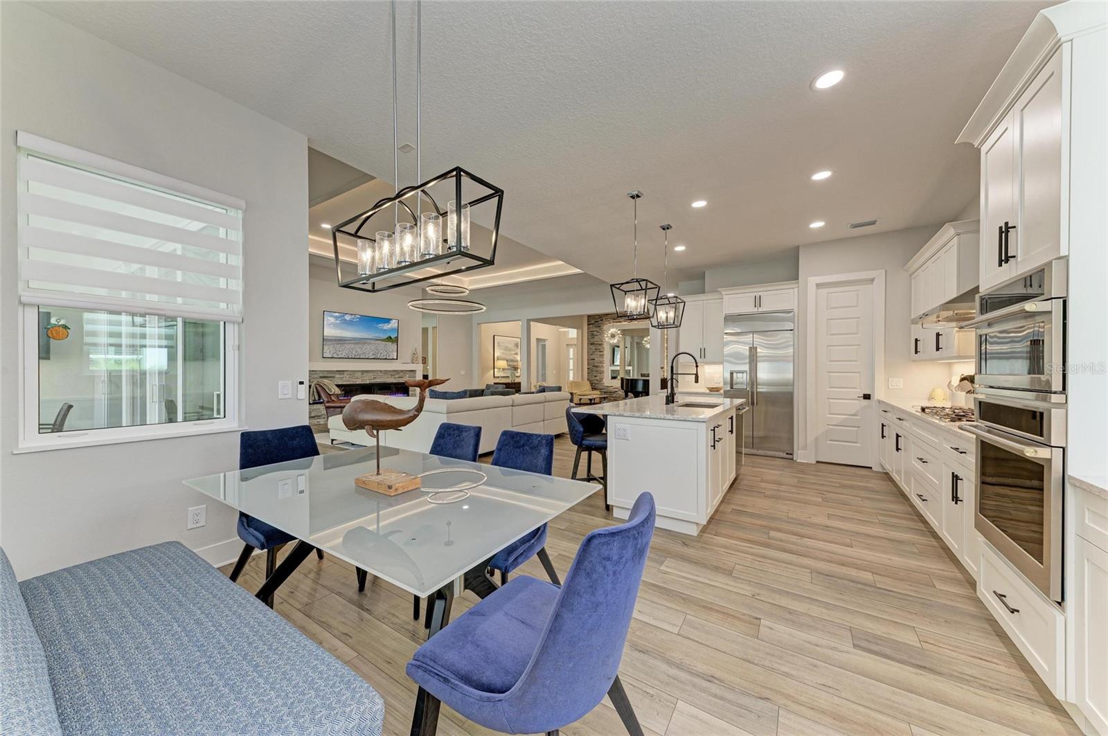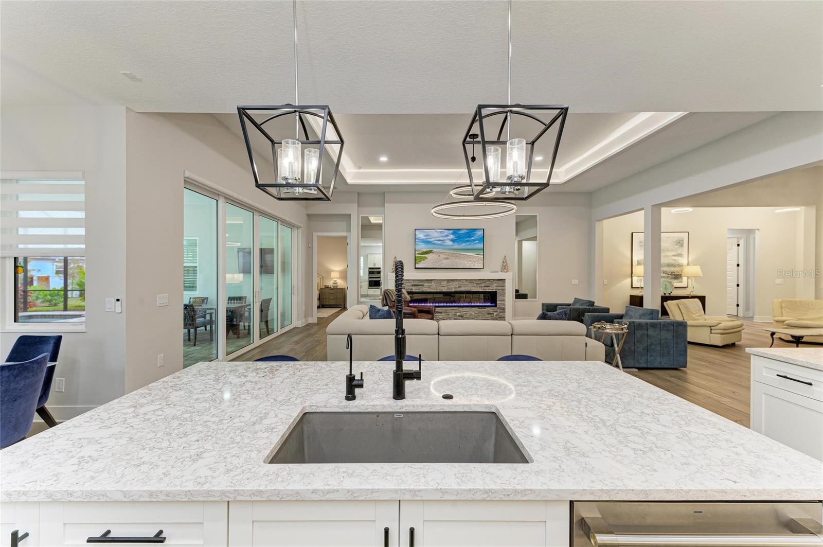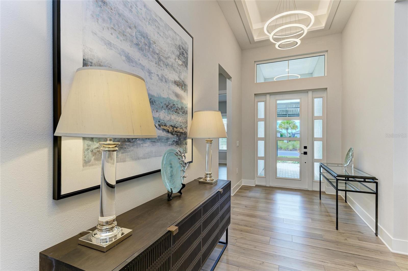 Experimente o auge do luxo da Flórida nesta requintada casas da planta baixa de Towne Outrigger; Um devno privado de 3 quartos, residência de 3 banheiros, oferecendo 2.886 pés quadrados de espaço de vida com maestria. Desde a entrada frontal convidativa até o grande interior, todos os detalhes refletem elegância e sofisticação. No interior, tetos altos de 13 pés, prateleiras embutidas personalizadas e tetos dramáticos da bandeja com iluminação ambiente deram o tom para a ampla sala, hall de entrada, áreas de jantar e suíte primária. A lareira linear é personalizada emoldurada com pedra de borda que corresponde à sala de jantar, proporcionando uma sensação coesa à aparência total da área. A cozinha do chef gourmet é uma peça de exibição, com um cooktop de seis queimadores, forno de parede de convecção e microondas, geladeira francesa e armários estendidos com centro de vinho. Uma ilha generosa torna divertido sem esforço. A suíte primária é um verdadeiro retiro com piso de tábua de vinil de luxo, vistas serenas da reserva privada e Lanai, um closet personalizado e um banho inspirado em spa com vaidades duplas e chuveiro. Dois quartos adicionais, cada um com armários e pisos de vinil de luxo, garantem conforto para a família ou os hóspedes. Um deno particular com um embutido personalizado fornece um escritório em casa ou espaço flexível ideal, enquanto o Mudroom e a roupa totalmente decorada adicionam conveniência diária. Projetado para vida inteira fora de fora, a ampla Lanai coberta com piscina e spa luxuosos satisfazer até o visitante mais crítico. Rough-ins para uma futura cozinha ao ar livre foi adicionada, bem como um sistema de segurança e Ethernet com fio em toda a casa. As atualizações adicionais incluem janelas com classificação de impacto, gerador, sistema de filtragem de água doméstica inteira, sistema de osmose reversa na cozinha, acabamentos de grife, armários personalizados e acabamentos personalizados, protetor de onda inteira, uma garagem de 3 carros com piso de epóxi e carregador de EV. A vida em Lakehouse Cove, em Waterside, oferece o melhor estilo de vida da Flórida: uma piscina e spa em estilo resort com vistas deslumbrantes do lago, Centro de Fitness de última geração, seis quadras de pickleball, dois parques de cães, boathouse e lançamento de caiaque. Da porta da frente, você é apenas um curto passeio até Waterside Place, onde encontrará refeições requintadas, butiques e eventos comunitários animados. Além da comunidade, você está a poucos minutos das praias primitivas da Costa do Golfo, compras de classe mundial e jantar no centro de Sarasota ou perto do University Town Center Mall, e apenas a cerca de duas horas de carro do destino mágico de férias do Walt Disney World. Esta residência é mais do que uma casa, é uma declaração de luxo e a porta de entrada para um extraordinário estilo de vida da Flórida.