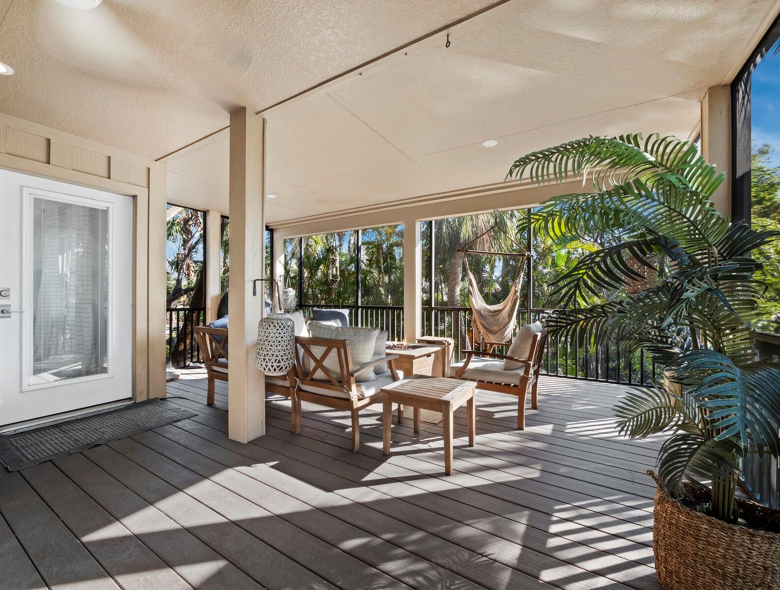 Uma ou mais fotos foram virtualmente encenadas. Você está procurando uma casa única e ultraespecial situada nas copas das árvores? Não procure mais! Localizada no popular e conveniente South Gate, esta casa é tudo menos típica! Elevado e cercado por uma natureza deslumbrante, dá a sensação de uma luxuosa casa na árvore tropical. Do grande terreno em uma rua tranquila e privada ao enorme deck na porta da frente, você apreciará o estilo descolado assim que chegar...esta propriedade é verdadeiramente única. Phillippi Creek serpenteia ao redor do lote e você frequentemente avistará garças, cegonhas-florestais, garças azuis e até colhereiros rosados vagando por lá, além de águias e corujas que nidificam nas proximidades - é um paraíso para os amantes da natureza! Além disso, o riacho é ideal para a prática de caiaque e você pode lançar direto da propriedade e remar até o litoral, se quiser. O primeiro andar dispõe de uma espaçosa garagem para 2 carros e muita arrumação, com todo o espaço habitacional localizado em segurança no segundo e terceiro pisos. Tetos altos e uma cozinha elegante e lindamente atualizada definem a área de estar principal, com um banheiro elegante e os dois quartos de bom tamanho localizados no mesmo nível. O imóvel é oferecido mobiliado para sua maior comodidade e comodidade. Você também vai adorar o grande deck com churrasqueira e fogueira a gás! Escondido nas copas das árvores, este espaço ao ar livre é infinitamente agradável. Suba até a suíte principal, onde você ficará absolutamente impressionado com a amplitude e os fantásticos e arejados tetos volumétricos! Há muito espaço para uma área de estar, mesa ou até mesmo um local de ioga ou meditação para que você possa criar um verdadeiro retiro. O banheiro atualizado conta com banheira independente e chuveiro com espaço para duas pessoas, e o amplo closet tem espaço abundante e já está totalmente customizado com embutidos! A lavanderia está convenientemente localizada no andar de cima, em um segundo armário, e há também uma segunda varanda fabulosa para desfrutar. Muitos recursos de casa inteligente facilitam a vida: iluminação Lutron por toda parte, alto-falantes embutidos no teto, sistema de câmera Arlo e fechadura automática da porta frontal de agosto. Toda esta casa está perfeitamente atualizada e pronta para desfrutar e você também ficará emocionado com a localização: dirija ou pedale facilmente até Siesta Key Beach ou centro da cidade, ou pegue a Legacy Trail nas proximidades! 10 minutos ou menos levarão você à maioria dos lugares, o que é uma raridade em Sarasota. Sua casa na árvore paradisíaca tropical o aguarda... venha dar uma olhada nesta propriedade única e deslumbrante hoje mesmo!