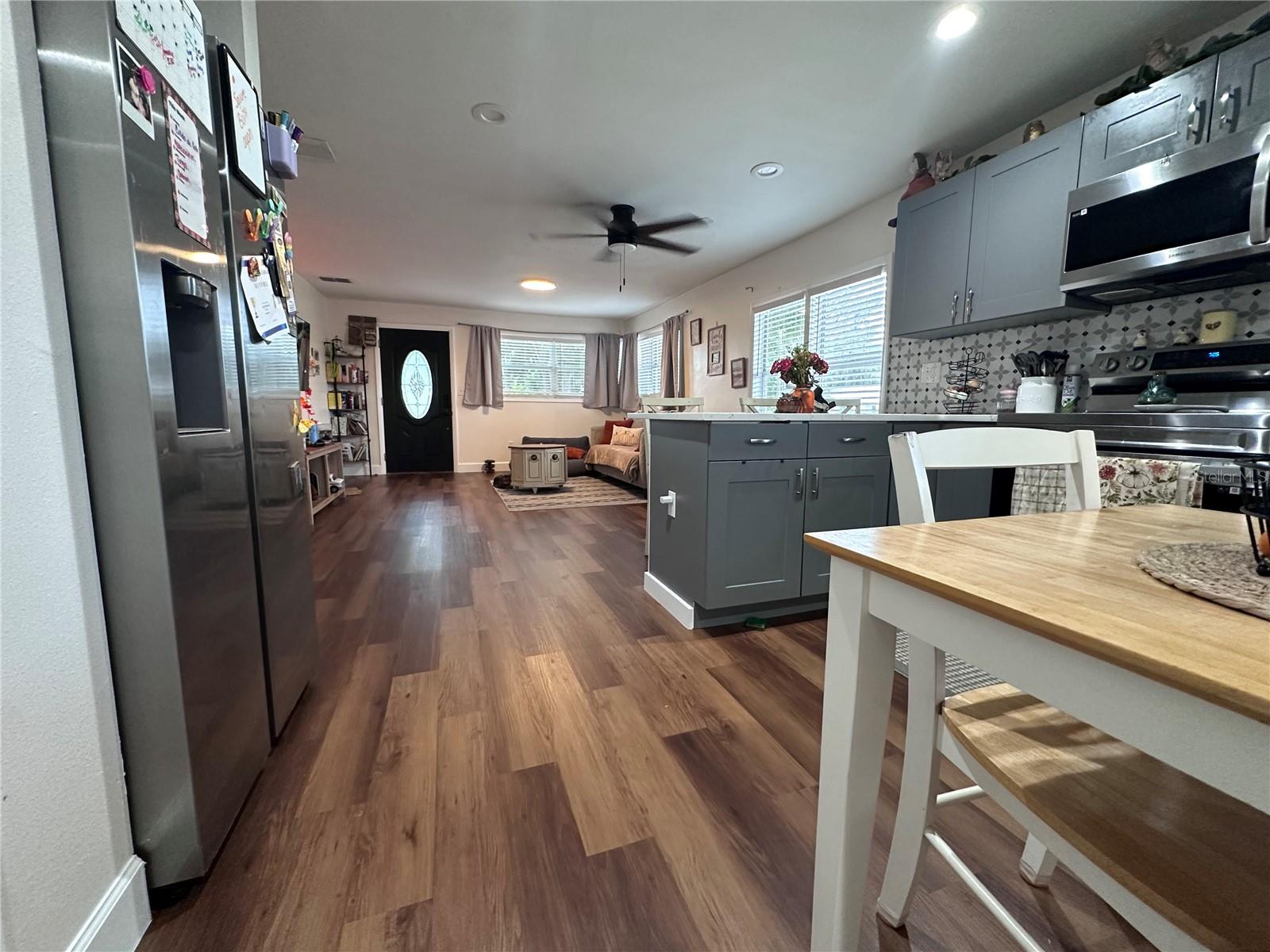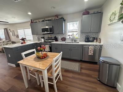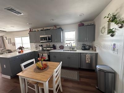 Raramente disponível o lote duplo subdividível com uma casa encantadora na cidade de Sarasota. Casa redesenhada e reformada situada em um lote lindamente paisagístico. O Yard possui um monte de espaço para estacionamento adicional para veículos de negócios/RV's/galpões de armazenamento, todos cercados por uma nova vedação de estoque. Muito espaço para o jogo da família também, com um novo pátio de concreto e um novo pátio de concreto atrás da varanda traseira. A própria casa o atrai para uma grande sala brilhante e amigável adjacente à cozinha de última geração, com bancadas em granito, utensílios de aço inoxidável e armários mais novos com gavetas suaves. Armário de lavanderia com lavadora/secadora de empilhamento mais recente e grande despensa de entrada na cozinha. Esta casa moderna tem um fator "WoW" que você entra no corredor para ver o quarto principal com banheiro privativo. O banheiro contém dois armários separados com as portas de correr portas de portas do celeiro. O chuveiro de chuveiro possui uma cabeça de chuveiro de design, uma bela cobertura de parede azul.