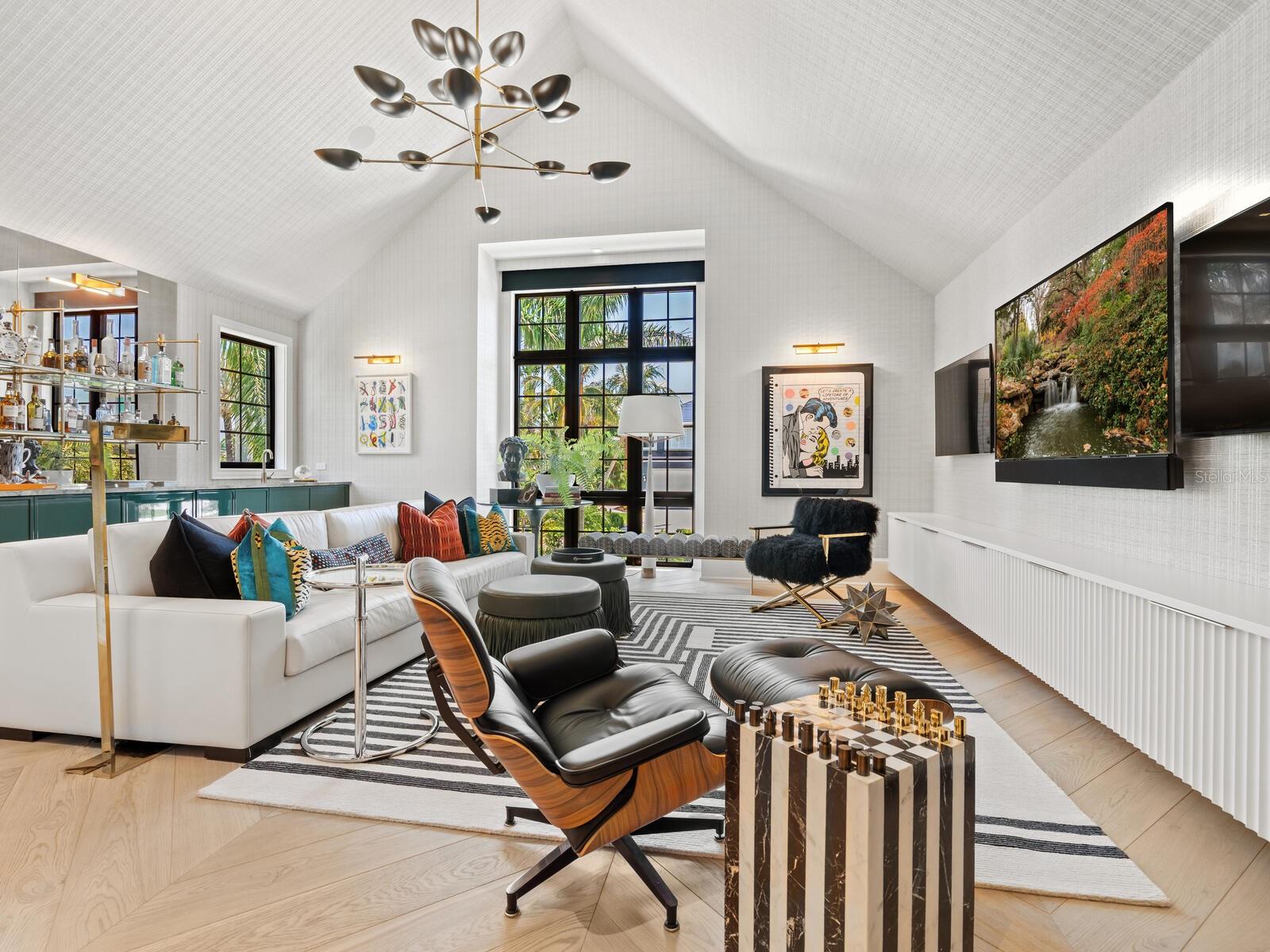Uma fusão deslumbrante de brilho arquitetônico e sofisticação de design, 440 Meadow Lark Drive é sem dúvida a melhor residência já construída em Sarasota. Idealizada pelas mentes magistrais do arquiteto Clifford Scholz e da Voigt Brothers Construction, esta propriedade personalizada é um testemunho de uma vida elevada, onde nenhum detalhe foi poupado. A partir do momento em que você se aproxima das elevações externas personalizadas, criadas para distinguir com impressionante individualidade, você percebe que esta não é apenas uma casa, mas uma obra de arte. Entre para descobrir quase 7.000 pés quadrados de interiores perfeitamente selecionados, onde cada quarto conta uma história. Pisos de carvalho italiano, papéis de parede Gucci, Phillip Jeffries e Holly Hunt e armários personalizados da SAWW dão o tom para uma elegância refinada. Cada quarto é inspirado no glamour do estilo Hollywood Regency de Kelly Wearstler e trazido à vida pela renomada designer Christiana Engert, enquanto toda a casa funciona como uma residência inteligente, combinando perfeitamente tecnologia intuitiva com luxo atemporal. No coração da casa, a cozinha é ao mesmo tempo uma peça de exibição e um espaço de trabalho, com balcões de mármore Dolomita com pele resistente protetora, máquinas de lavar louça duplas, eletrodomésticos Wolf, Sub-Zero e Miele, e uma despensa escondida com armários expositores, refrigerador de vinho e obras de arte. A sala matinal adjacente é perfeita para relaxar casualmente, com armários personalizados e uma TV discreta. A sala de estar exala calor com uma lareira a gás de mármore Nero Marquina, assentos generosos e vistas cativantes para o mar, enquanto a sala de jantar impressiona com uma mesa lateral luxuosa de uma só peça e um lustre personalizado dramático. Divirta-se sem esforço na sala de mídia com som surround, três TVs e um bar personalizado. A despensa adjacente do mordomo inclui geladeira adicional, lavadora/secadora, lava-louças e armazenamento oculto. A adega com mais de 1400 garrafas é uma obra-prima por si só. Com designs artísticos personalizados, iluminação retroiluminada e um sistema de refrigeração com capacidade comercial, o espaço único é perfeito para o colecionador mais exigente. A suíte principal é um santuário de indulgência com papel de parede pintado à mão, vistas deslumbrantes do canal e armários para ele e para ela com embutidos requintados, lustre, uma ilha de mármore e expositores de joias em estilo boutique. O banheiro do spa apresenta azulejos inspirados em folhas de ouro, pias duplas e chuveiros internos e externos. Suba a escadaria de peça única até o nível superior, onde as suítes de hóspedes são igualmente impressionantes, com tetos abobadados, banheiros privativos e acesso privativo ao terraço de entretenimento do segundo andar. Um loft com janelas de clerestório, bar de serviço e armazenamento oculto oferece flexibilidade como lounge de hóspedes, escritório ou retiro. Uma suíte de hóspedes com acesso separado funciona como escritório ou sala bônus, com banheiro próprio e linhas arquitetônicas dramáticas. Ao ar livre, comodidades de resort aguardam. A varanda oferece fluxo interno-externo contínuo por meio de controles deslizantes grandes, uma cozinha externa completa, lareira e várias áreas de estar sob tetos macho e fêmea. Pavimentações de calcário cercam uma piscina de água salgada e um spa projetado para oferecer conforto e elegância, enquanto um elevador de barco de 20.000 libras e um elevador de convés de 7.000 libras para caiaques ou pranchas de stand up paddle fazem deste um refúgio ideal à beira-mar. O impressionante paisagismo de privacidade de Michael A. Gilkey garante serenidade em todo o terreno. Com paredes de concreto em ambos os níveis, um segundo andar com laje de concreto de 20 cm, gerador para toda a casa, amaciante de água para toda a casa e gás natural, esta propriedade combina uma estrutura duradoura com uma beleza de tirar o fôlego.