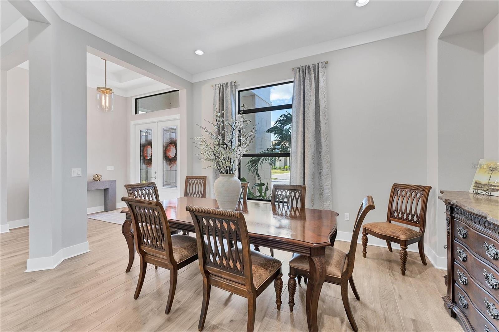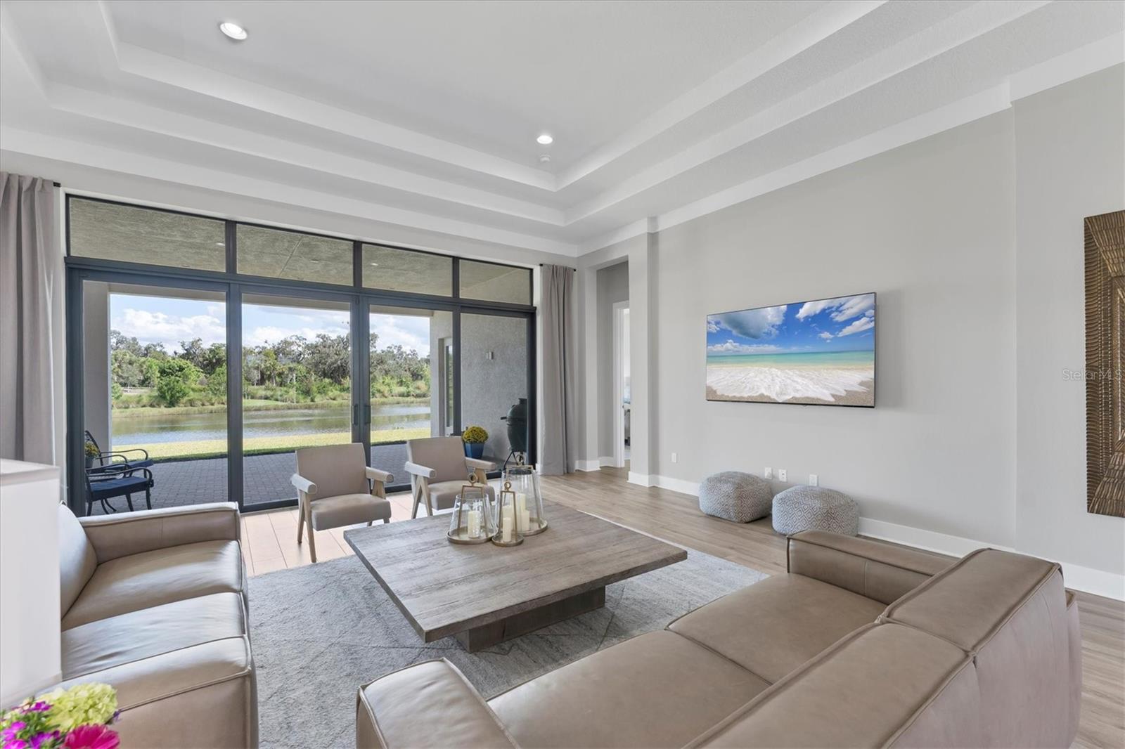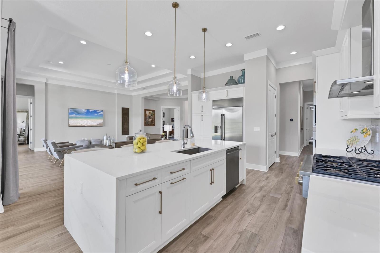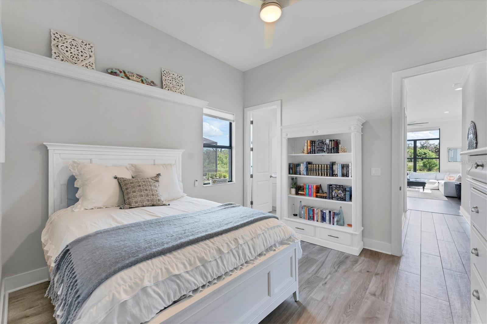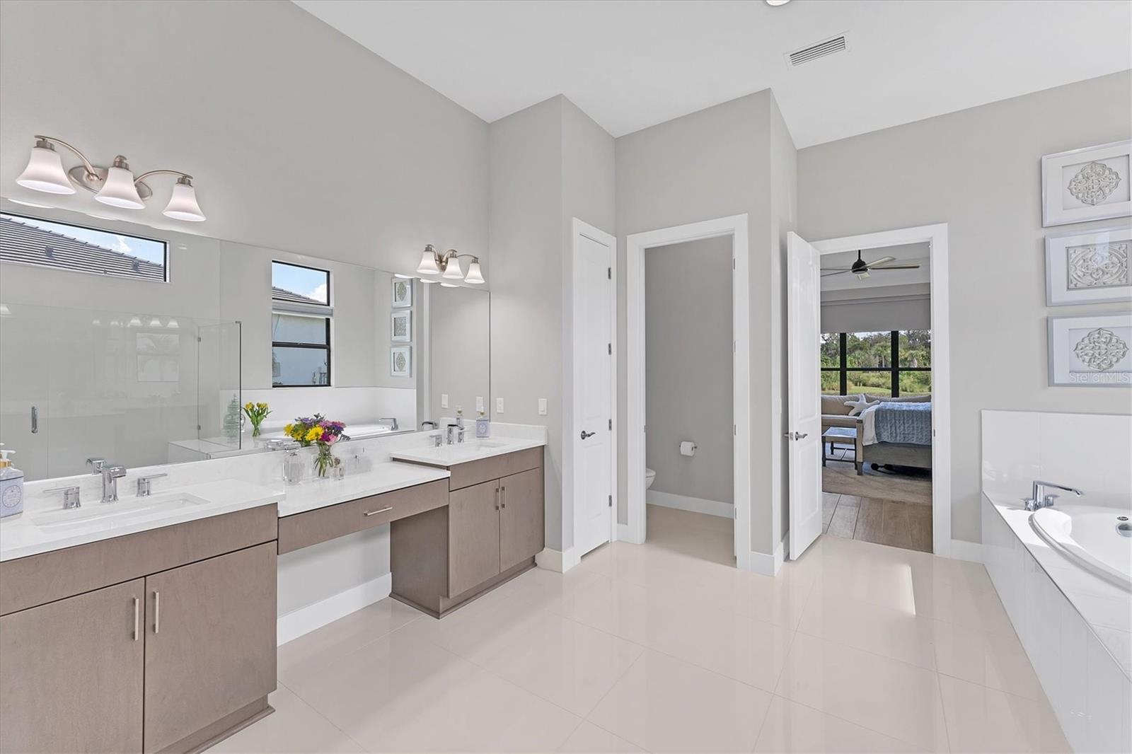Procurando AS melhores vistas da comunidade? Você os descobrirá aqui, todos os dias! Bem-vindo ao Artistry – Sarasota, onde você pode experimentar comodidades luxuosas em estilo resort, segurança e vida livre de manutenção, sem taxas de CDD. Este modelo Palmer lindamente projetado com espaço bônus e garagem de quatro vagas oferece segurança contra tempestades com janelas e portas de impacto, construção de blocos de concreto e telhado de telhas de concreto, bem como eficiência energética do isolamento de espuma em spray. Com uma das melhores plantas disponíveis, esta residência oferece espaços generosos com ampla luz natural e apresenta as vistas mais espetaculares do condomínio. Localizado na cobiçada seção de Artistry em um terreno do tamanho de uma propriedade, você desfrutará das vistas serenas e naturistas da água, bem como da reserva verde e exuberante que margeia este lado de Mondrian Court. A partir do momento em que você e seus convidados entram pelas portas de vidro duplo, você é recebido por uma parede de vidro deslizante que o convida para a varanda coberta e vistas deslumbrantes. Continuando por toda a casa, você verá inúmeras características e design elegantes em exibição. Esta luxuosa residência oferece áreas de estar espaçosas, três quartos, 4,5 banheiros, escritório/escritório privativo, sala de jantar formal, sala grande e banheiro de piscina designado, uma grande sala bônus com bar embutido, persianas remotas e uma porta externa para acessar a varanda coberta. A área de estar externa oferece amplo espaço para uma piscina e está equipada com instalações elétricas para uma cozinha externa. A casa está equipada com várias atualizações significativas, desde sancas de estilo moderno de grandes dimensões acentuando os tetos de bandeja de 12 pés até o lindo piso de tábuas de madeira, a ilha de cozinha estendida com bordas de cascata de quartzo, armários atualizados, conjunto de eletrodomésticos profissionais incluindo um fogão a gás natural com exaustor, fornos de parede dupla, geladeira embutida, centro de bebidas, azulejos e bancadas sofisticados, acentuados por ferragens escovadas, aquecedor de água a gás sem tanque, banheiro bônus servindo como banho de piscina e uma rara garagem de quatro baias. Quando chegar a hora de se retirar e relaxar, fuja para sua generosa suíte principal com espaço designado para área de estar, porta externa com acesso à varanda coberta, um luxuoso banheiro principal com box amplo, banheira de jardim, pia dupla, vaso sanitário e dois closets. Do outro lado da casa, você encontrará dois quartos adicionais com banheiro privativo e vários upgrades, sala bônus com bar molhado, banheiro de piscina, lavanderia e lavabo para hóspedes. Além de todas as características estéticas, esta residência refinada apresenta o epítome da paz, serenidade e privacidade. As características e comodidades da comunidade incluem duas entradas fechadas, piscina enorme, clube, quadra de tênis e pickleball, área de playground e academia, tudo cercado por trilhas tranquilas e paisagísticas. Artistry é uma comunidade sofisticada e livre de manutenção, sem taxas de CDD, conveniente para quase tudo que torna Sarasota e Lakewood Ranch desejáveis, especialmente lojas, restaurantes, entretenimento, escolas excelentes e nossas praias de destino. Viver bem é uma arte e você a encontrará aqui em Artistry-Sarasota!