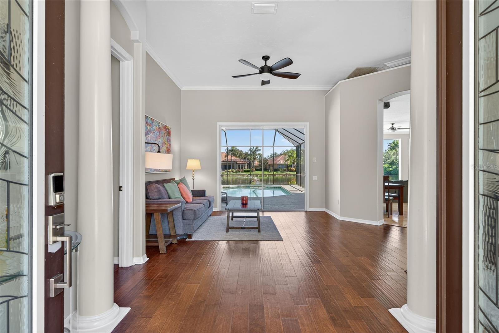 Desfrute de vistas tranquilas do lago e de mais de 3.500 pés quadrados de espaço elegante, projetado para conforto e entretenimento. Esta casa de 4 quartos, mais 2 escritórios/salas flexíveis e 3 banheiros oferece uma excelente planta para muitos usos. O nível principal inclui a suíte principal, quarto de hóspedes privativo e escritório, enquanto o segundo andar adiciona uma espaçosa sala de bônus/mídia, além de dois quartos adicionais e um escritório/sala flexível. A casa possui janelas contra o impacto do furacão, piso de madeira projetada com tábuas largas e muita luz natural. Uma cozinha espaçosa com ilha grande, balcões de granito e fogão a gás. A ampla área da piscina tem vista para o lago cintilante, oferecendo um cenário sereno em quase todos os quartos. Garagem para 3 carros e amplo terreno completam o pacote. Silver Oak é um enclave exclusivo e procurado de casas de luxo, conhecido por seu paisagismo exuberante e carvalhos maduros. Um condomínio fechado e localização ideal em Sarasota, a poucos minutos de praias de classe mundial, restaurantes, lojas e da Legacy Trail. Consulte o vídeo passo a passo (tour virtual 1) para uma visão abrangente da casa!
