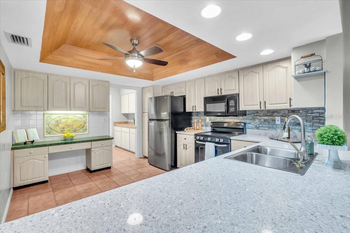 Especial de feriado: PREÇO MELHORADO em US$ 15 mil! Prepare-se para o estilo na comunidade com mais de 55 anos de Center Gate Villages 5! Bem-vindo a esta villa espaçosa, raramente disponível, bem conservada e única, com 3 quartos e 2 banheiros, situada no coração do cobiçado Center Gate Estates. Com uma homenagem ao charme ocidental e uma vibração calorosa e acolhedora e tetos altos, esta grande casa é perfeita para quem procura personalidade, conforto e conveniência. Entre em um hall de entrada espaçoso que dá o tom da versatilidade: seu primeiro quarto de hóspedes fica à esquerda, completo com prateleiras e armazenamento embutidos personalizados, ideal como escritório ou escritório doméstico. À direita, a casa se abre para uma sala familiar de inspiração ocidental, com portas de salão personalizadas, um bar alto e janelas ensolaradas. Basta adicionar uma mesa de sinuca e você terá seu próprio salão em casa! Pode ser facilmente utilizado em sala de jantar, sala de família, sala de jogos, à sua escolha! A cozinha e a sala de estar em conceito aberto são feitas para entretenimento, com novas bancadas de quartzo, pintura fresca, iluminação atualizada, sistema de filtragem de água e uma lareira a lenha com revestimento de pedra sob tetos altos de catedral e uma clarabóia. Os controles deslizantes levam à sala fechada da Flórida, agora atualizada com venezianas sanfonadas e controles deslizantes de vidro, criando um fluxo interno e externo contínuo. Todos os quartos são de tamanhos generosos, com amplo closet, e a suíte principal oferece um retiro tranquilo. Na verdade, todos os quartos são espaçosos, incluindo a lavanderia interna com lavadora nova e a garagem para 2 carros, ambas com muito espaço de armários. Aproveite seu café da manhã no longo pátio lateral ou no quarto Florida de frente para as reservas naturais nos fundos, ambos perfeitos para aproveitar o sol da Flórida. As atualizações recentes incluem: aquecedor de água (2018), HVAC (2018), geladeira (2018), fogão (2016), micro-ondas (2011), lavadora (2024), chuveiro do banheiro principal. Localizada a poucos passos da piscina comunitária e a poucos minutos de lojas, restaurantes, hospitais, I-75, praias, UTC Mall, campos de golfe e muito mais, esta casa oferece o estilo de vida descomplicado de uma comunidade livre de manutenção com todas as vantagens de viver em Sarasota. Preço de venda – não perca a chance de possuir esta joia única! Agende sua exibição hoje e experimente o encanto por si mesmo. Confira o site do imóvel!
