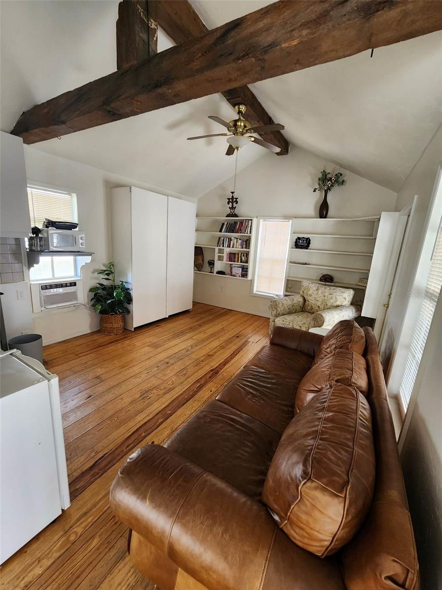 Propriedade rara e única em Laurel Park, em uma rua tranquila de tijolos. A casa principal foi construída em 1925 e é uma casa de 2 quartos e 1 banheiro com piso de madeira real e tetos altos. A casa tem uma cozinha de tamanho generoso, sala de estar e um quarto grande, além de um segundo quarto menor e mais estreito. A casa tem lindas varandas e seu próprio jardim frontal e quintal lateral separado. A casa principal está listada com 791 pés quadrados de área bruta e 609 pés quadrados de área útil. Existe um edifício secundário secundário que foi construído em 1997, pela cidade de Sarasota. É cercado separadamente e a estrutura tem sido usada como uma eficiência no andar de cima e uma eficiência separada no andar de baixo desde 1997. 768 pés quadrados de área bruta e 518 pés quadrados de área útil. O Trust está atualmente em processo de obtenção de uma carta de verificação da cidade para verificar se será permitido a um novo proprietário continuar a alugar as 3 unidades separadamente. Nenhuma das unidades traseiras possui aparelhos de cozinha/fogões no momento, apenas cozinhas compactas. Também é possível unir as duas eficiências traseiras em uma suíte de 2 andares, possivelmente com 1 ou 2 quartos e dois banheiros. Existe estacionamento para 2 viaturas lado a lado em frente aos estúdios, e uma agradável arrecadação atrás do edifício. Bônus - O proprietário fez um extenso levantamento e planos para transformar o lote em uma grande casa moderna, os planos estão anexados para os interessados. Tantas possibilidades, a poucos quarteirões do centro da cidade, da Main Street e da Baía de Sarasota! * Contagem de quartos/banheiros - A casa principal tem 2 quartos e 1 banheiro, e cada estúdio tem um cômodo grande que pode ser um quarto (cada um tem um armário) e cada um tem um banheiro.
