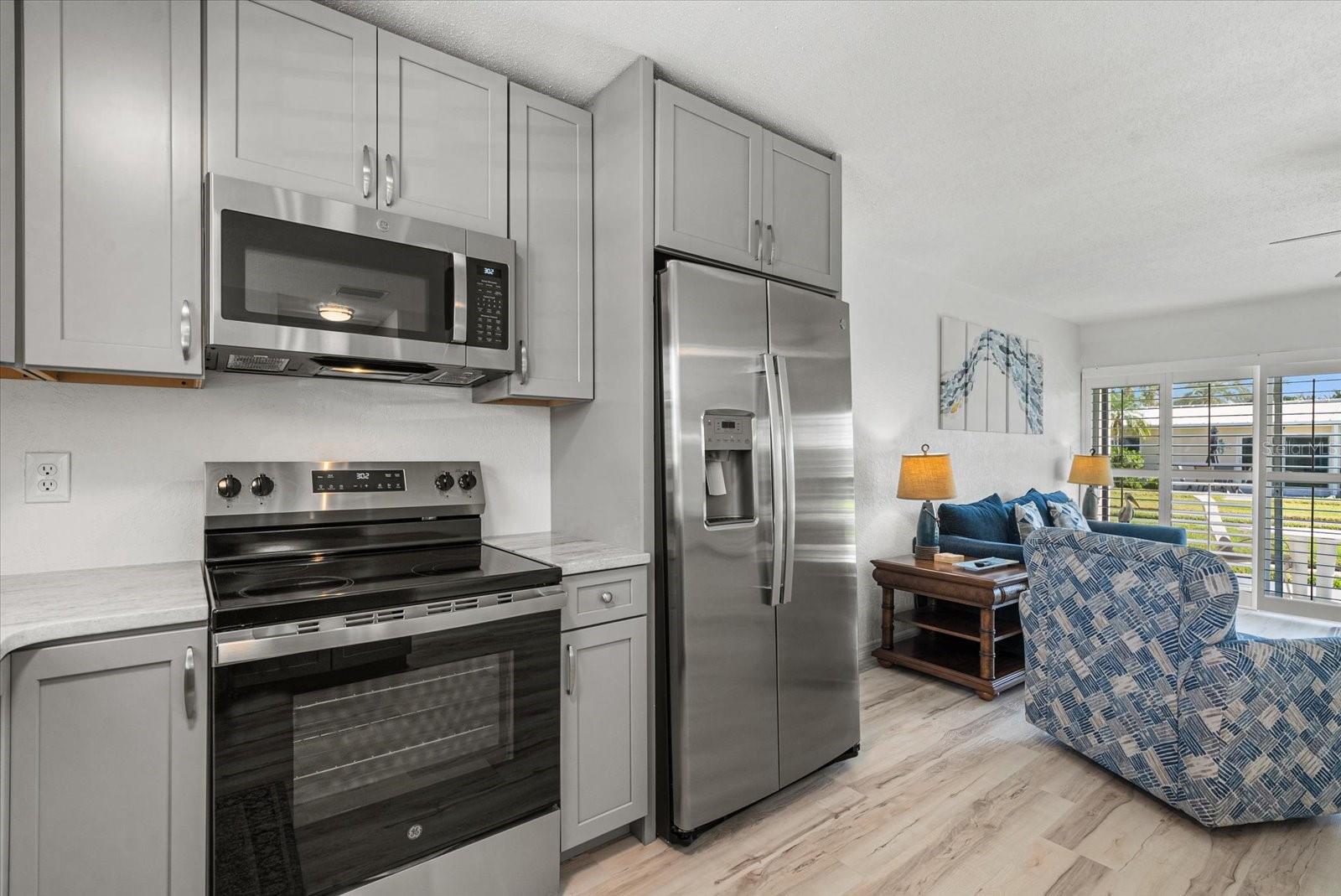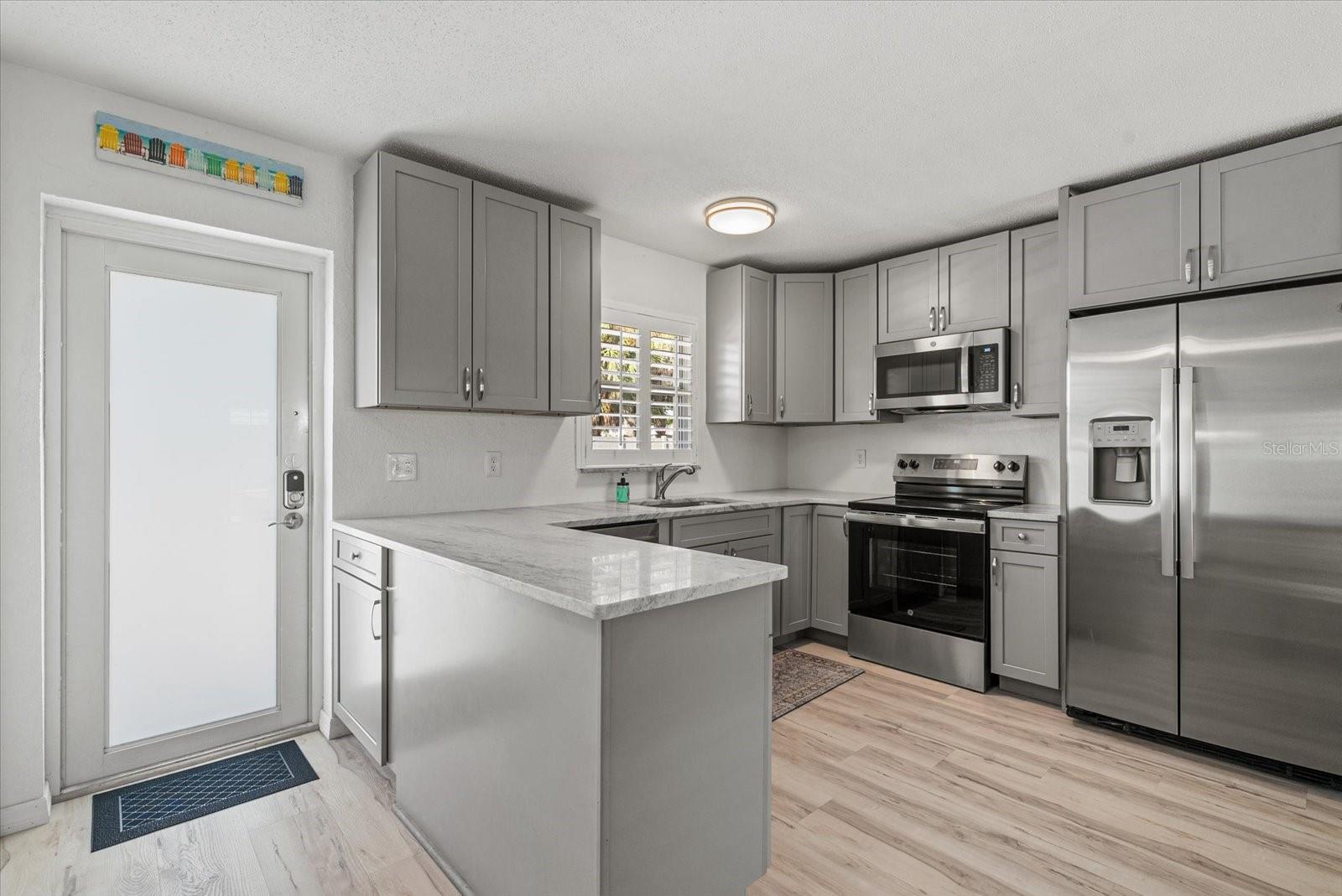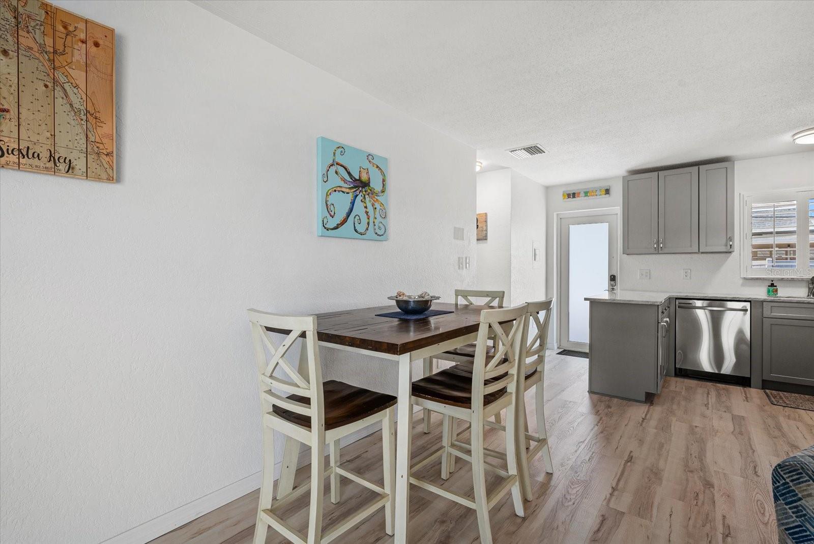 Descubra o charme da vida na ilha neste condomínio lindamente remodelado de 1 quarto e 1 banheiro no lado do Golfo de Siesta Key. Projetada com uma vibração costeira descontraída, esta casa combina perfeitamente estilo, conforto e funcionalidade. A planta baixa de conceito aberto apresenta luxuoso piso de pranchas de vinil por toda parte, criando um fluxo contínuo da espaçosa cozinha até a área de jantar e a convidativa sala de estar. Tons suaves da costa e portas de vidro deslizantes com venezianas preenchem o espaço com luz natural e adicionam um toque de caráter insular. O quarto principal de grandes dimensões continua a sensação descontraída, com venezianas combinando, tons suaves e muito espaço para relaxar. O banheiro atualizado traz um toque de spa com piso de pedra e acabamentos modernos, enquanto a lavanderia interna acrescenta comodidade. Saia para o seu pátio privativo nos fundos, cercado por uma paisagem tropical exuberante, onde você pode relaxar sob a suave brisa costeira - um local perfeito para o café da manhã ou coquetéis ao pôr do sol. Com a conveniência de aluguéis semanais, este condomínio é perfeito como investimento, uma escapadela de férias ou um retiro costeiro em tempo integral - dando a você a oportunidade de possuir seu próprio pedaço de paraíso em Siesta Key.