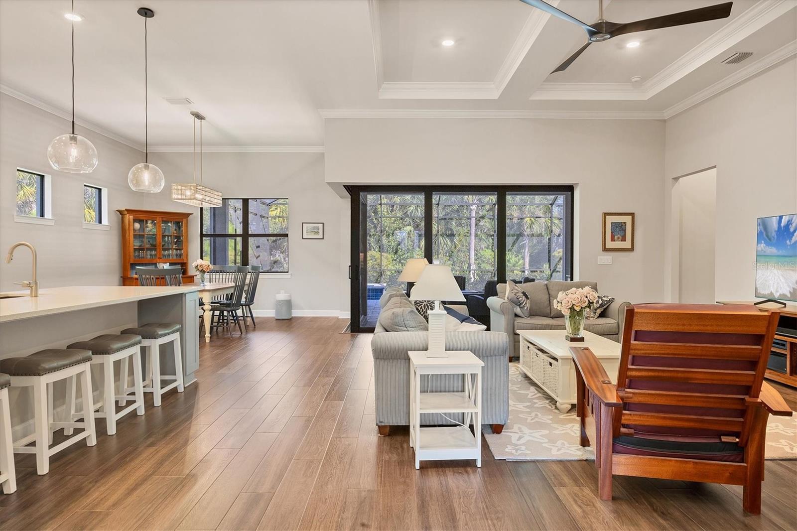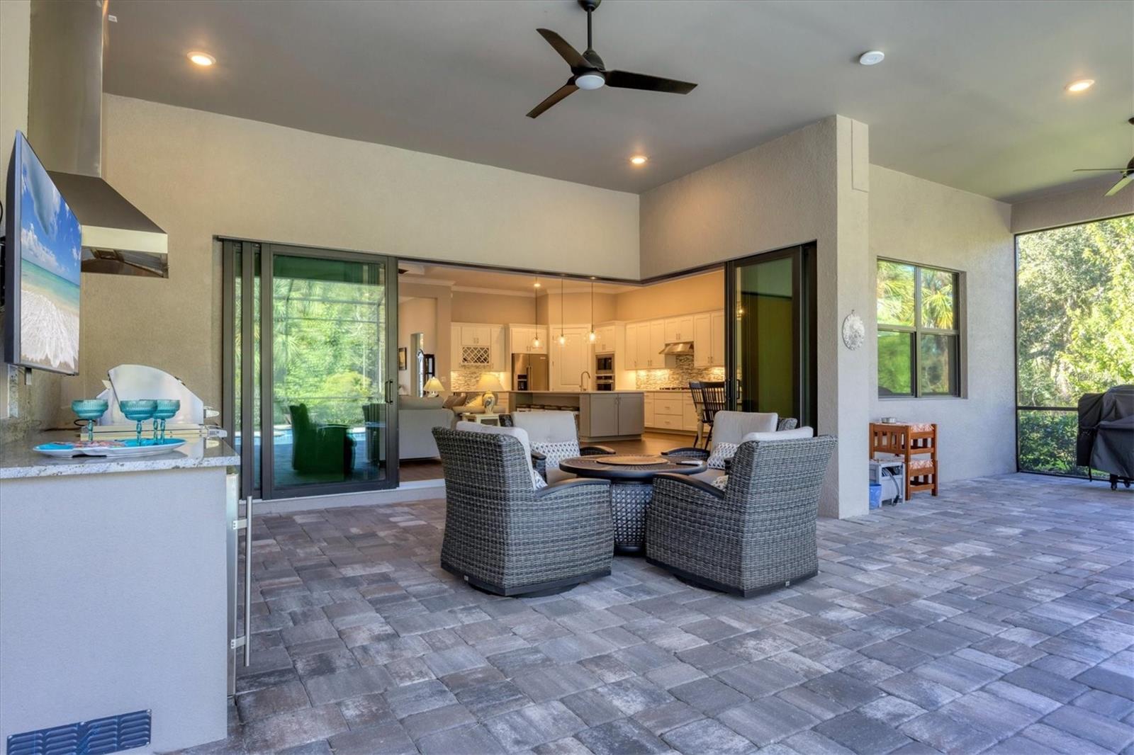 Ao passar pela porta de entrada totalmente em vidro deste magnífico modelo Pinnacle construído em 2024, somos instantaneamente envolvidos por uma cascata de luz natural e uma atmosfera de luxo refinado. Cada superfície sob os pés conta uma história de seleção meticulosa: toda a casa tem acabamento em piso maciço, garantindo uma aparência elegante e coesa e a maior facilidade de manutenção. Perfeitamente situada em Shoreview, uma das comunidades Pulte mais estimadas do Lakewood Ranch, esta residência foi projetada para o proprietário exigente que exige elegância e vida sem esforço. Imagine uma casa onde o conforto é garantido e a tranquilidade está incorporada: esta propriedade possui janelas contra impactos de furacões e a segurança máxima de um gerador para toda a casa. O coração desta casa é a sua conexão perfeita com o exterior, conseguida através das portas deslizantes de canto exclusivas que desaparecem completamente, fundindo o grande interior com a deslumbrante varanda estendida e a área da piscina. Este santuário privado oferece uma vista excepcionalmente serena, reforçada pela rara vantagem de não haver casas à esquerda, criando um cenário verdadeiramente exclusivo e tranquilo para o café da manhã ou entretenimento noturno. No interior, cada detalhe fala de qualidade, desde o fluxo contínuo de água quente fornecido pelo aquecedor de água sem tanque até a extensão de mais de um metro na espaçosa garagem, que é ainda atualizada com uma unidade AC mini-split dedicada - um espaço perfeito para um hobby, academia ou oficina. Além do limiar, a localização é o capítulo final e convincente: você está a poucos minutos dos restaurantes dinâmicos e das boutiques de Waterside Place, enquanto as praias imaculadas da Costa do Golfo, a vibração cultural do centro de Sarasota, a acessibilidade do aeroporto SRQ e a excelência de varejo do UTC Mall estão ao seu alcance sem esforço. Esta não é apenas uma residência; é um estilo de vida seguro, sofisticado e perfeitamente posicionado, pronto para começar.