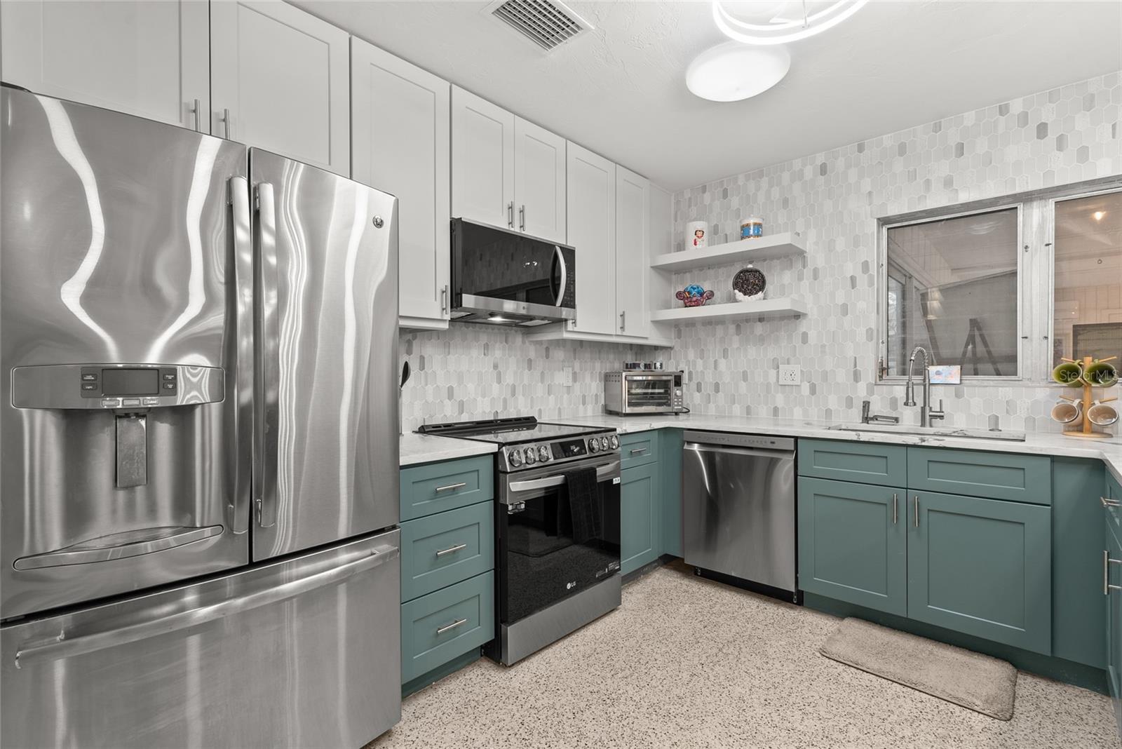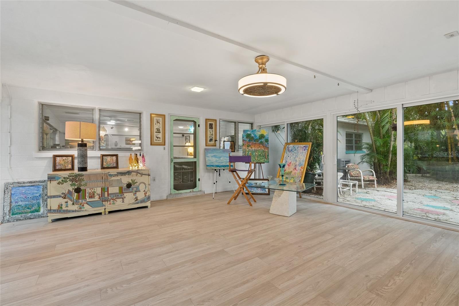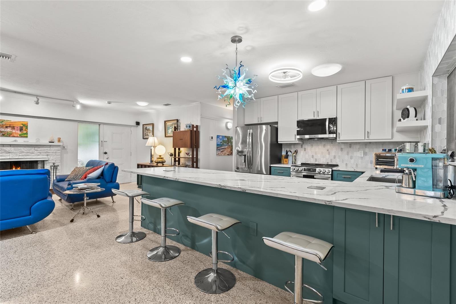 O luxo moderno de meados do século encontra-se com a exuberante vida costeira. Bem-vindo ao 2207 Hickory Avenue, um retiro moderno de meados do século primorosamente atualizado no bairro de Indian Beach – Sapphire Shores, em Sarasota, a oeste da trilha e a poucos minutos da Baía de Sarasota. Em um enorme terreno de esquina dupla com mais de 10.000 pés quadrados, esta residência pronta para uso oferece uma rara mistura de design atemporal, tranquilidade botânica e melhorias modernas bem pensadas. Entre nos pisos originais de mosaico que foram meticulosamente retificados e polidos com um acabamento brilhante, complementados por tetos altos de 2,7 metros e uma planta aberta reimaginada. A sala principal flui perfeitamente para o coração da casa com uma cozinha de chef totalmente renovada com novos eletrodomésticos de aço inoxidável, armários elegantes, bancadas de quartzo, backsplash de designer e um impressionante lustre inspirado em Chihuly. Uma marquise totalmente fechada e acabada, agora uma sala bônus, adiciona mais 400 pés quadrados de espaço climatizado, completo com controles deslizantes e janelas de impacto de furacão, luxuoso piso de pranchas de vinil e um mini split de ar condicionado recém-instalado. Este é um espaço para relaxar com vista para o jardim, receber convidados ou trabalhar em casa com tranquilidade. O ambiente ao ar livre é nada menos que uma felicidade botânica. Rodeada por uma paisagem tropical madura, bambus exóticos e árvores frutíferas raras recém-plantadas, a propriedade inclui um chuveiro ao ar livre, uma banheira de hidromassagem sob as palmeiras e um depósito privativo. Uma estação de carregamento Tesla, sistema de água sem tanque e novo painel elétrico refletem as sensibilidades modernas da propriedade, enquanto dutos atualizados e novo sistema HVAC garantem conforto durante todo o ano. A apenas uma curta caminhada de Indian Beach e a poucos minutos do centro de Sarasota, de St. Armands Circle e dos tesouros culturais do Ringling Museum, esta residência oferece o que há de mais moderno em vida costeira acessível em Sarasota. Oferecida totalmente mobiliada, incluindo todas as peças modernas de meados do século e obras de arte originais, esta residência única está pronta para morar e é ideal para compradores que buscam sofisticação, privacidade e proximidade com tudo o que torna Sarasota extraordinária.