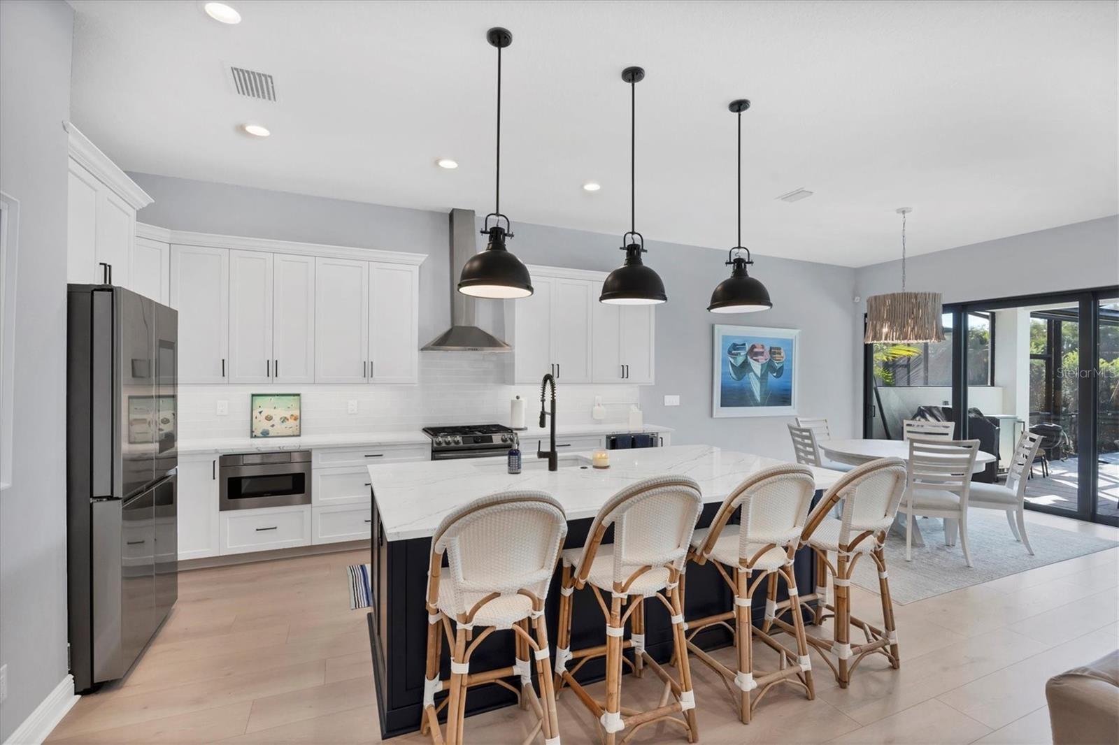Esta residência sob medida da Heritage Builders foi projetada para o comprador exigente, apresentando atualizações de alta qualidade, comodidades premium de gás natural e sofisticados controles de privacidade automatizados. Entre em uma planta aberta e cheia de luz, definida por uma estética costeira moderna e artesanato superior. Laminado de madeira de tábuas largas, iluminação personalizada, tetos dramáticos e paredes com detalhes de designer criam um ambiente luxuoso e pronto para mudança. A cozinha possui um fogão a gás natural, armários impressionantes em azul marinho e branco, elegantes bancadas de quartzo, um grande bar para refeições e eletrodomésticos de aço inoxidável de última geração com recursos de Wi-Fi integrados. A sala de estar é aprimorada por amplas portas de vidro deslizantes com resistência ao impacto que desaparecem, fazendo com que a varanda, a piscina e o spa pareçam uma extensão natural do seu espaço principal. A planta dos quartos divididos posiciona estrategicamente a Suíte Primária em seu próprio lado da casa, oferecendo um santuário privado completamente separado dos quartos de hóspedes. A Suíte Primária tem acesso direto à área da piscina/varanda, banheiro privativo tipo spa e closet personalizado. Aproveite a conveniência das persianas automáticas que proporcionam privacidade imediata na porta de entrada da frente, juntamente com telas automáticas semelhantes que envolvem as laterais da varanda. A varanda está pré-instalada e pronta para a cozinha externa dos seus sonhos, com conexões de gás e água. Acesso rápido à I-75, lojas de primeira linha, restaurantes e todas as comodidades culturais e recreativas de Sarasota. Esta é uma rara oportunidade de possuir uma casa personalizada única e impecavelmente mantida, com características superiores e um endereço ideal em Sarasota. Vendedor motivado!