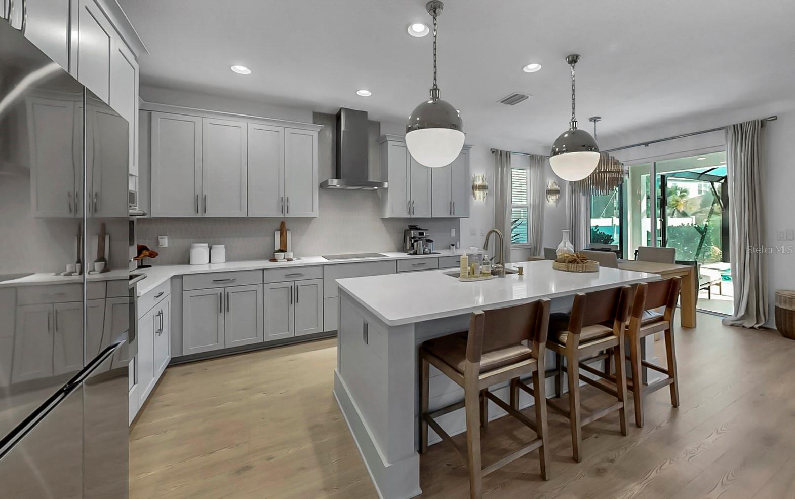 Bem-vindo a esta casa requintada e projetada com bom gosto na cobiçada comunidade de Hidden Creek. Esta residência deslumbrante possui 4 quartos, 4 banheiros, garagem para 2 carros e uma planta cuidadosamente projetada que combina conforto, estilo e funcionalidade. O vendedor não poupou despesas em atualizações, incluindo iluminação interna e externa de design, janelas e porta da frente com classificação de impacto no segundo andar, paredes personalizadas, piso LVP em todos os quartos e todo o segundo andar (SEM carpete), película de janela com controle solar em todas as janelas, uma escada aberta com novas escadas e degraus, filtragem de água em toda a casa, proteção contra surtos em toda a casa, paisagismo profissional com ralo francês, calhas em todos os lados da casa e uma varanda frontal com tela. Entre em uma área de estar convidativa e de conceito aberto repleta de luz natural. A entrada apresenta uma bela parede com detalhes em pedra que leva à espaçosa sala de estar, que flui perfeitamente para a área de jantar e cozinha - perfeita para a vida cotidiana e para entretenimento. A cozinha gourmet oferece armários de madeira maciça cinza, eletrodomésticos de aço inoxidável, incluindo forno / micro-ondas de parede, fogão elétrico e exaustor, amplo balcão de quartzo, despensa de tamanho generoso e uma grande ilha ideal para refeições casuais ou para receber convidados. A suíte principal do primeiro andar é um retiro tranquilo, oferecendo um quarto espaçoso, closets e banheiro privativo com pias duplas, box amplo e amplo armazenamento. A planta dividida oferece privacidade excepcional, com dois quartos adicionais e dois banheiros completos localizados na frente da casa. Um home office/sala flexível e uma lavanderia interna também estão convenientemente localizados no primeiro andar. No andar de cima, você encontrará um loft impressionante, o quarto quarto, um banheiro completo com banheira/chuveiro e espaço de armazenamento adicional - perfeito para hóspedes ou residências multigeracionais. Saia da área de estar principal para o seu oásis privado no quintal. Este retiro paisagístico apresenta uma varanda com tela e uma piscina de água salgada aquecida com azulejos atualizados e borda da piscina. A piscina é alimentada por um sistema Hayward premium, incluindo uma bomba de piscina, filtro SwimClear 200 e automação Hayward OmniPlus. Este espaço ao ar livre é ideal para relaxar, grelhar e se divertir durante todo o ano. Hidden Creek oferece um ambiente tranquilo semelhante a um parque, estando a poucos minutos de lojas, restaurantes, escolas de primeira linha, instalações médicas e das famosas praias da Costa do Golfo de Sarasota. Não perca a oportunidade de possuir esta propriedade notável - agende hoje mesmo sua exibição privada!
