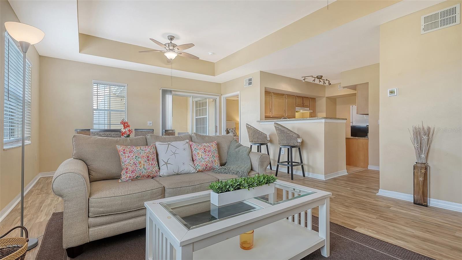 Entre imediatamente! Um condomínio preferido no segundo andar, totalmente mobiliado, no desejável condomínio fechado de Villagio. Idealmente localizado perto do centro da cidade e das praias, mas não pelo preço alto! A decoração costeira moderna e descontraída e a grande sala repleta de luz natural apresentam tons quentes e neutros, móveis de bom gosto e um pátio externo para capturar a brisa fresca da Flórida com seu café da manhã ou coquetel à noite. As áreas abertas de estar, jantar e cozinha são perfeitas para o conforto ou entretenimento do dia a dia. A cozinha bem projetada oferece armários de madeira, todos os eletrodomésticos necessários e uma despensa alta ao lado da geladeira. Ambos os quartos oferecem armários generosos, persianas e roupas de cama. A suíte principal inclui banheiro privativo e cama queen size. O quarto de hóspedes tem 2 camas de solteiro, mesa de cabeceira, abajur e roupa de cama. Localizado ao lado do banheiro de hóspedes para sua comodidade e privacidade. Um condomínio perfeito para residência a tempo inteiro, escapadela sazonal ou oportunidade de investimento. Vago e fácil de mostrar!