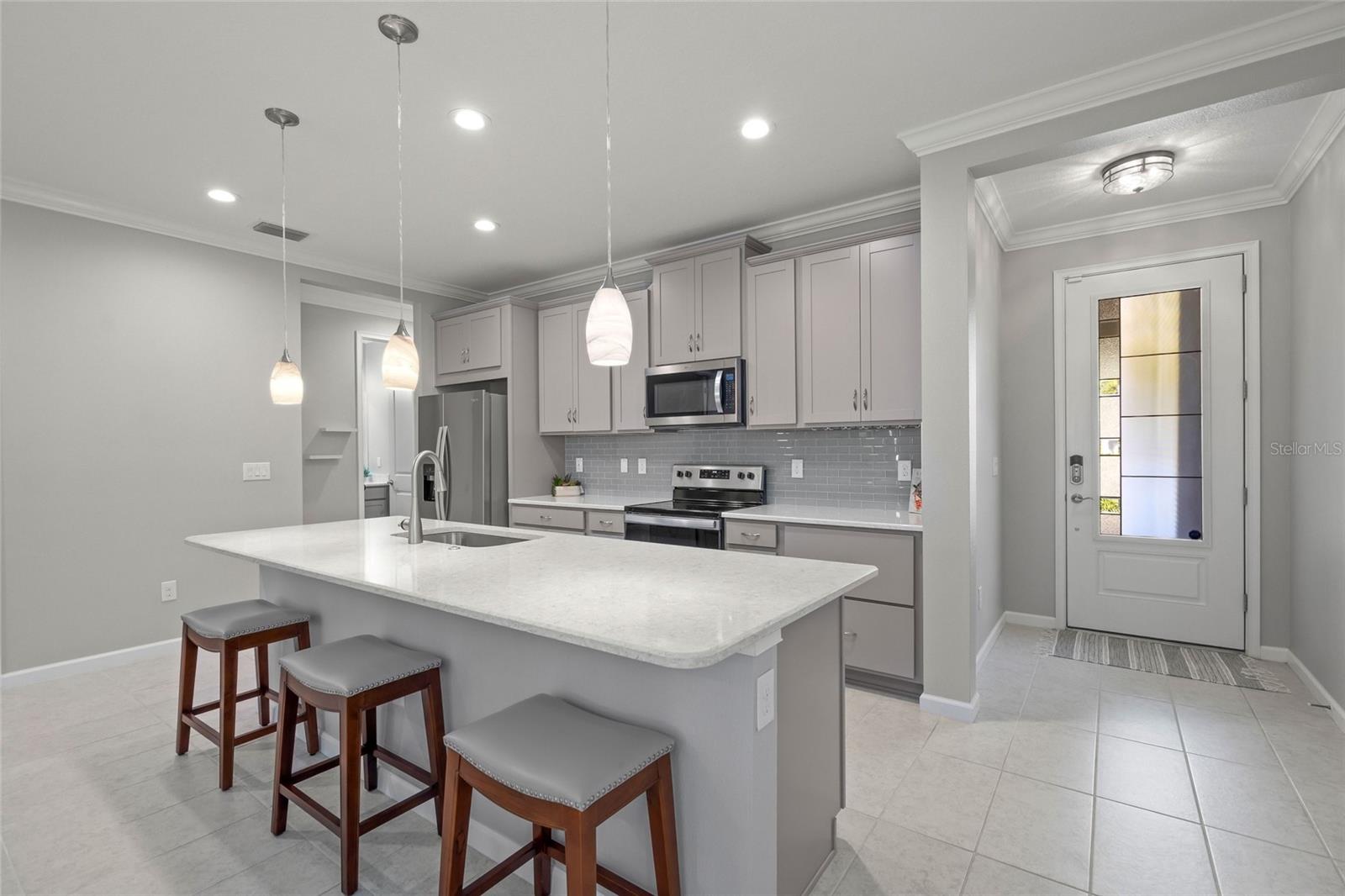 Primeira vez no mercado! Esta casa resiliente e recém-construída foi construída em 2019 de acordo com os códigos de furacões mais recentes e não é necessário seguro contra inundações. Apresentando uma planta baixa 2BR + Office / 2BA muito procurada com garagem para 2 carros, esta residência é um dos apenas 10 modelos marítimos construídos pela Mattamy Homes, tornando-se uma oportunidade rara. Uma varanda frontal acolhedora com porta de tela retrátil fornece um fluxo de ar maravilhoso e leva a uma linda porta frontal de vidro de impacto. No interior, o layout de conceito aberto é ideal tanto para a vida cotidiana quanto para entretenimento. A cozinha lindamente decorada apresenta armários de madeira, backsplash de azulejos de vidro, bancadas de quartzo, eletrodomésticos de aço inoxidável e iluminação pendente regulável. A área de jantar adjacente acomoda confortavelmente uma variedade de tamanhos de mesa e flui perfeitamente para a espaçosa sala - perfeita para reuniões. A suíte principal oferece um teto falso e um luxuoso banheiro privativo com um box de vidro grande e sem moldura com bancos, pias duplas e um amplo closet. A suíte de hóspedes é privativa e possui um banheiro adjacente, proporcionando excelente separação e privacidade. O escritório inclui mesa embutida e portas francesas, tornando-o ideal para home office ou escritório. Os destaques adicionais incluem piso de cerâmica em todas as principais áreas de estar e escritório, 2 quartos acarpetados, lavanderia com armazenamento extra e garagem acabada com piso de epóxi, pia e geladeira adicional. Molduras de coroa e janelas / controles deslizantes emoldurados adicionam um acabamento elegante e refinado. Aproveite a vida na Flórida na varanda frontal coberta ou relaxe na varanda coberta e com tela traseira, com pavimentação e tela de privacidade com vista para águas tranquilas e vistas do parque. Situada no final de uma rua sem saída, esta casa se beneficia de um tráfego mínimo. Para maior tranquilidade, existem persianas sanfonadas para todas as janelas e controles deslizantes, tornando a preparação para o furacão uma tarefa simples que leva apenas alguns minutos. A taxa HOA mensal cobre reparo e substituição de telhado, pintura externa, seguro externo, manutenção de terrenos, irrigação e acesso a todas as comodidades e eventos da comunidade. Sunrise Preserve no Palmer Ranch é um condomínio fechado que oferece comodidades em estilo resort, incluindo piscina, quadras de tênis, pickleball e bocha, áreas para grelhar, fogueira, clube e academia totalmente equipada. Um calendário robusto de eventos sociais facilita conhecer vizinhos e permanecer ativo. Idealmente localizado na área de Palmer Ranch - próximo a lojas, restaurantes, I-75 e praias de classe mundial.