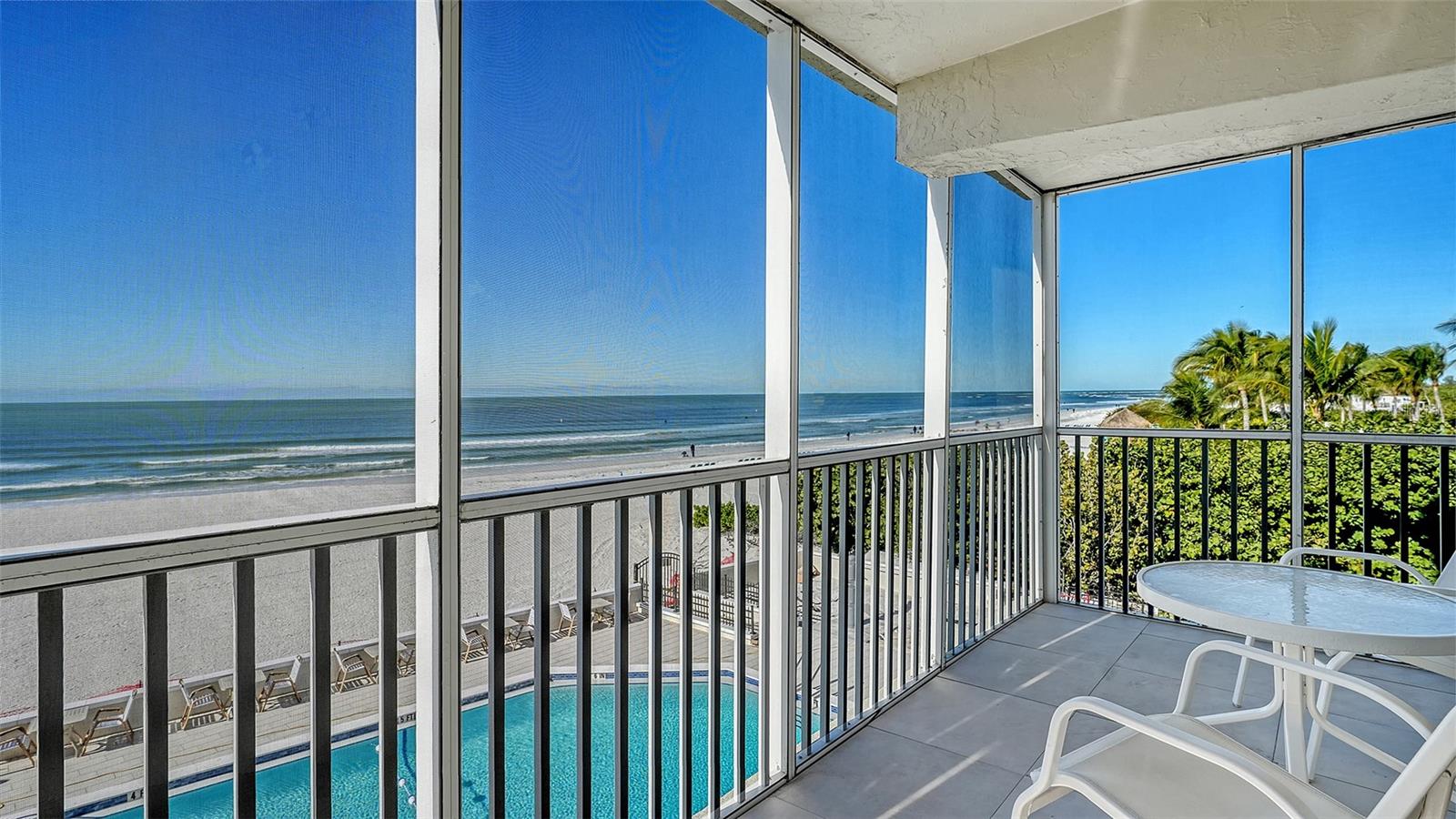 Experimente a vida à beira-mar nesta residência raramente disponível no canto noroeste do Lido Ambassador. Esta unidade final no 3º andar oferece vistas panorâmicas incomparáveis do Golfo e da praia, criando um cenário extraordinário em todos os espaços principais. A residência possui dois quartos e dois banheiros, abrangendo 1.350 pés quadrados de área interna, complementada por uma varanda envolvente que combina perfeitamente a vida interna e externa. A luz natural preenche a casa, apresentando um layout de conceito aberto que transita da área de entrada para a espaçosa sala com vista para a varanda à beira-mar. Este design cuidadoso é perfeito tanto para receber convidados quanto para desfrutar de noites tranquilas em casa, com vistas infinitas da praia. A cozinha dispõe de bancada em Corian, armários de cores claras, arrumação generosa, tudo ancorado em tecto de trevo. A suíte principal oferece closet e banheiro privativo atualizado, enquanto o quarto de hóspedes e o banheiro proporcionam um retiro privado para os visitantes. O Lido Ambassador é uma comunidade bem administrada, conhecida por seus terrenos bem cuidados e manutenção cuidadosa. Os residentes têm acesso a uma piscina e terraço em frente ao Golfo, que está atualmente passando por uma reforma completa, para criar uma atmosfera renovada em estilo resort. E para maior tranquilidade, o telhado do edifício é totalmente novo. As comodidades adicionais incluem academia, cozinha de catering, churrasqueiras ao ar livre, armazenamento privativo e uma vaga de estacionamento coberta atribuída. A localização é simplesmente fenomenal. Situada no exclusivo extremo sul de Lido Key, a residência fica a poucos passos do Lido Beach Resort Tiki Bar e a uma curta distância de St. Armands Circle, Longboat Key, e com fácil acesso ao cenário artístico e cultural do centro de Sarasota, incluindo o mercado semanal de agricultores. Esteja você procurando um refúgio costeiro, uma oportunidade de investimento ou uma residência em tempo integral, esta unidade oferece localização excepcional e vistas deslumbrantes.