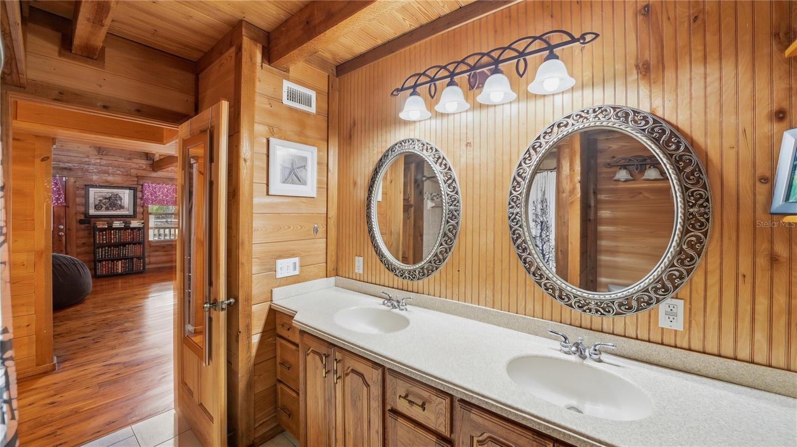 Casa de toras Heritage de três quartos e três banheiros com troncos de pinheiro oriental de crescimento lento de 8" em pouco menos de 5 acres. Apresentando uma piscina de água salgada em estilo resort com cascata, iluminação subaquática, assentos na piscina e fogueira de propano, todos com vista para uma espaçosa varanda coberta de 20' x 40'. Tetos altos, escritório privativo e ampla varanda envolvente melhoram o charme e a funcionalidade da casa. Situada em 4,5 acres totalmente cercados com portão ornamental automático, a propriedade inclui uma garagem individual para 4 carros, celeiro de 1952, garagem, lago abastecido e um gerador de 25 kW para toda a casa com um tanque de propano de propriedade enterrado de 500 galões. Zoneado para cavalos e gado, com cerca de madeira com 3 trilhos e cerca de arame ideal para animais de estimação. Desfrute da vida tranquila no campo em Sarasota com acesso conveniente - aproximadamente 15 minutos para I-75, 40 km para Siesta Key Beach, 36 km para Lido Beach, 35 km para St. Armands Circle, 21 km para Waterside Lakewood Ranch e 28 km para UTC Mall.