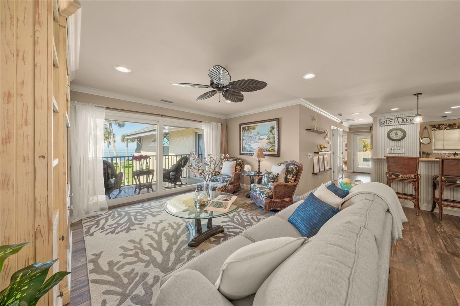 VISTAS DESLUMBRANTES DO GOLFO!..... ATUALIZAÇÕES IMPRESSIONANTES EM TODO O PÔR DO SOL! ---- Você ficará impressionado com esta residência MOBILIADA em Siesta Key... a poucos minutos das areias brancas de quartzo "pó de bebê" da TOP AVALIADA Siesta Key Beach. Este condomínio de dois quartos/2 banheiros, espaçoso e BEM EQUIPADO, tem muitas ATUALIZAÇÕES e RECURSOS desejados: Janelas/controles deslizantes de impacto; Móveis Costeiros Elevados; Suíte Primária Indulgente com Banheiro Sumptuoso "Spa-Like"; Armários personalizados e embutidos em TODA; Continuidade de Materiais e Acabamentos; Lavadora/secadora na unidade; e uma Cozinha Ampla com armários em madeira maciça; eletrodomésticos de aço inoxidável, backsplash de azulejos de vidro e quantidades generosas de espaço no balcão e armazenamento! Você vai desfrutar do seu café da manhã, observação de golfinhos e seus coquetéis noturnos mergulhando nas incríveis cores do pôr do sol sobre o Golfo.....Sea Village, convenientemente localizado para restaurantes/compras/vida noturna da vila principal, possui (2) piscinas à beira do golfo; cais de pesca; Armazenamento de bicicletas e armários de armazenamento adicionais. Perfeito como Investimento; Residência de férias ou o ano todo.